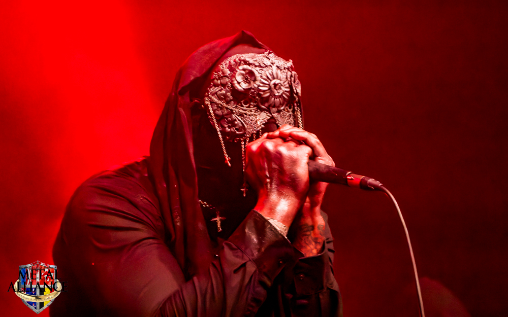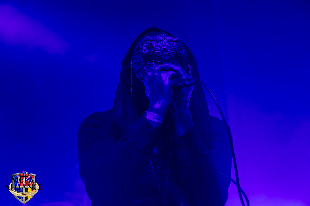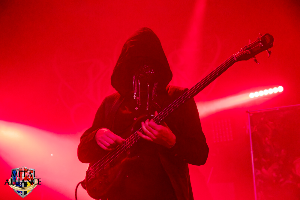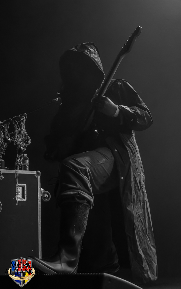 Plus speed que RüYYn, les hommes masqués et encapuchonnés de Pénitence Onirique jouent vite. C’est dû au style, j’avoue que c’est très, voire trop répétitif pour moi. L’éclairage qui tout à l’heure collait si bien à la musique et à l’ambiance dessert un peu le décorum prévu par le groupe et aveugle régulièrement le public. Dommage. Le son est trop fort malgré le public de plus en plus nombreux, il est temps de prendre l’air.