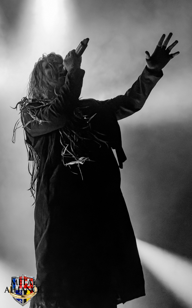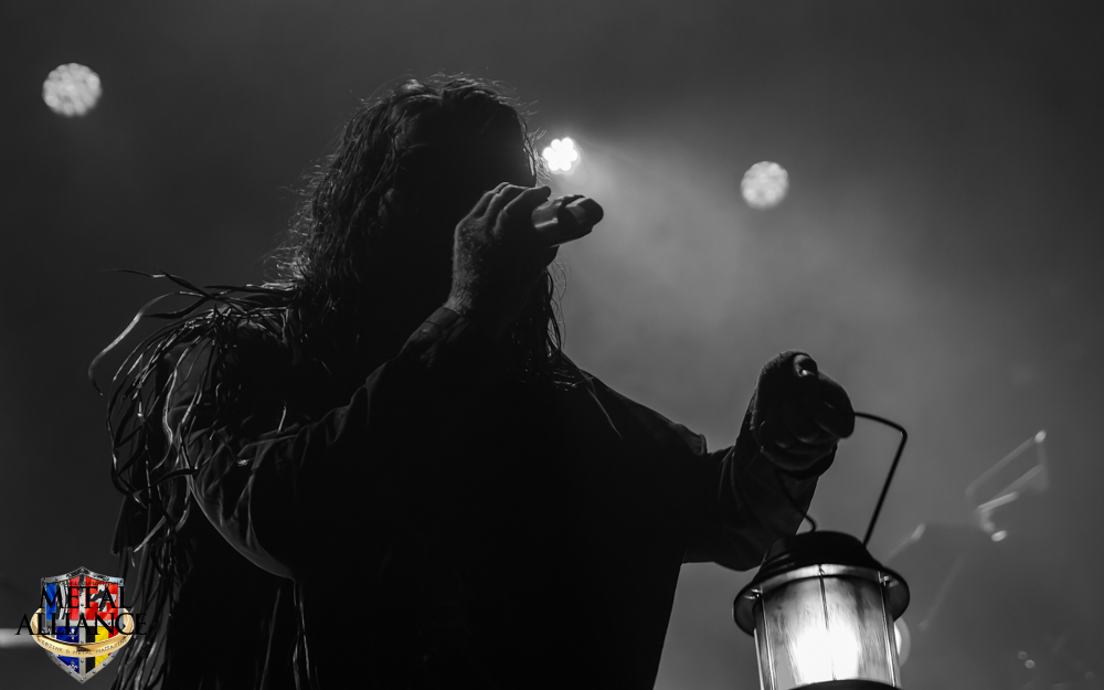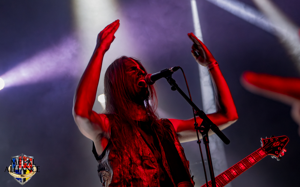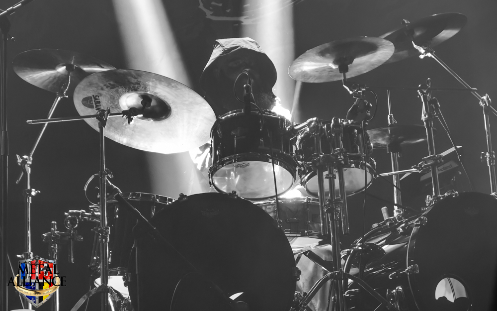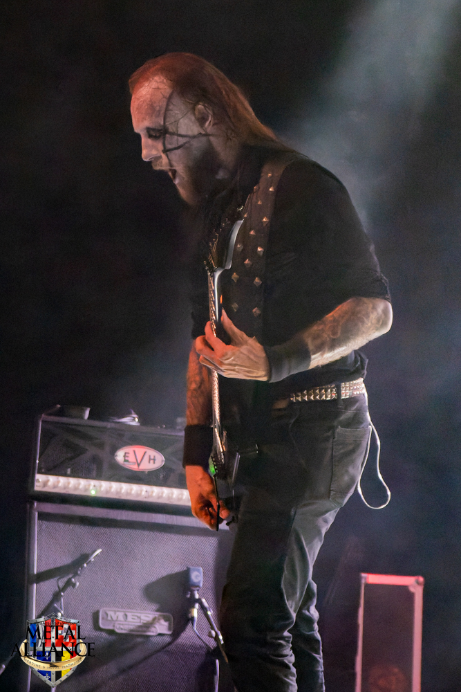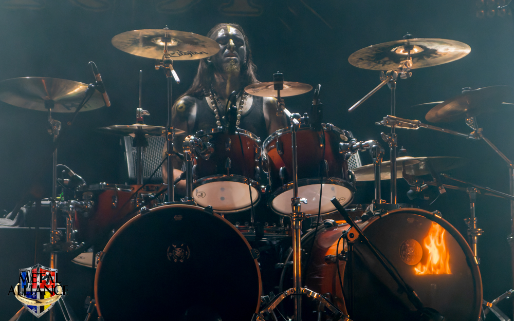 Dark Funeral, la tête d’affiche, cette voix, celle de Heljarmadr depuis dix ans, ce son tellement reconnaissable ! Depuis quand ? Combien de concerts ? Leurs maquillages identiques depuis des années, les costumes travaillés et impeccables mais surtout cette puissance qui nous ramène à l’essence du style. Tout est impeccable, les variations de rythme, de voix, l’enchaînement des morceaux, nous avons des pro en face de nous, une valeur sûre que l’on aime. La batterie a été entièrement changée, l’éclairage est plus fixe, c’est plus confortable pour le spectateur. Je kiffe, ne serait-ce que pour la double pédale. Eh oui, encore elle. Je crois qu’aujourd’hui, les batteurs étaient bons, et que l’ingénieur du son et leur surélévation sur scène leur a donné les moyens d’être entendus, ou je développe une certaine obsession o_O.