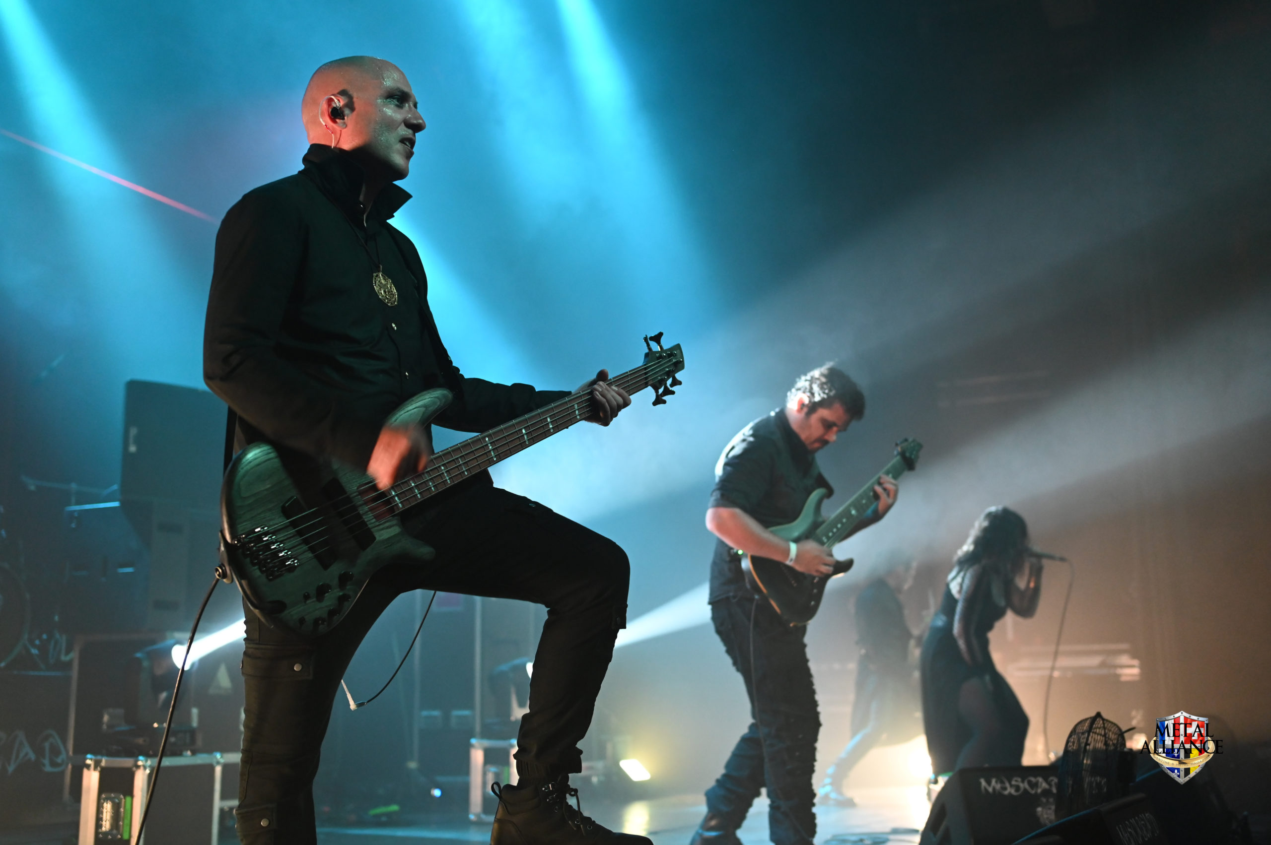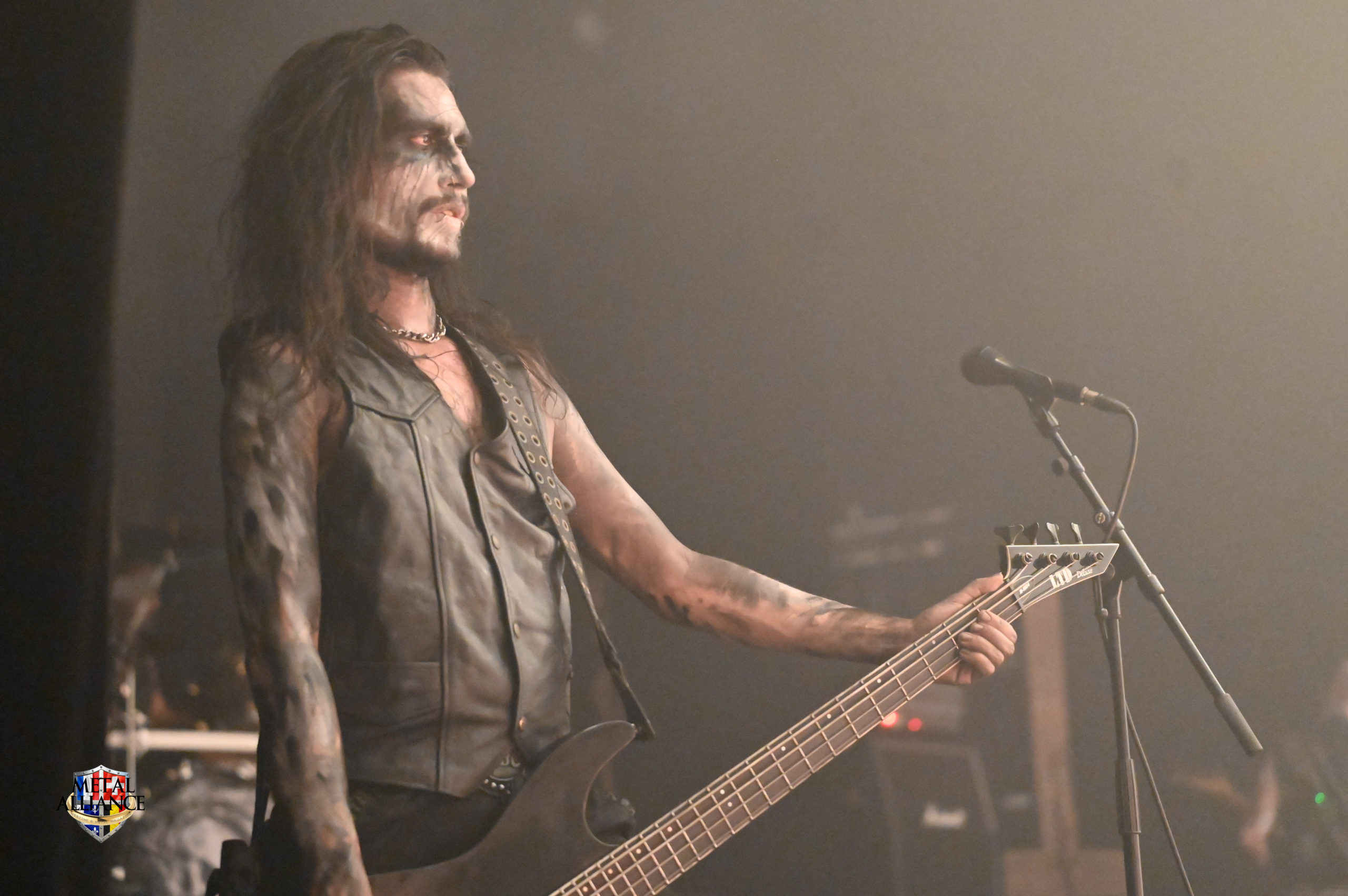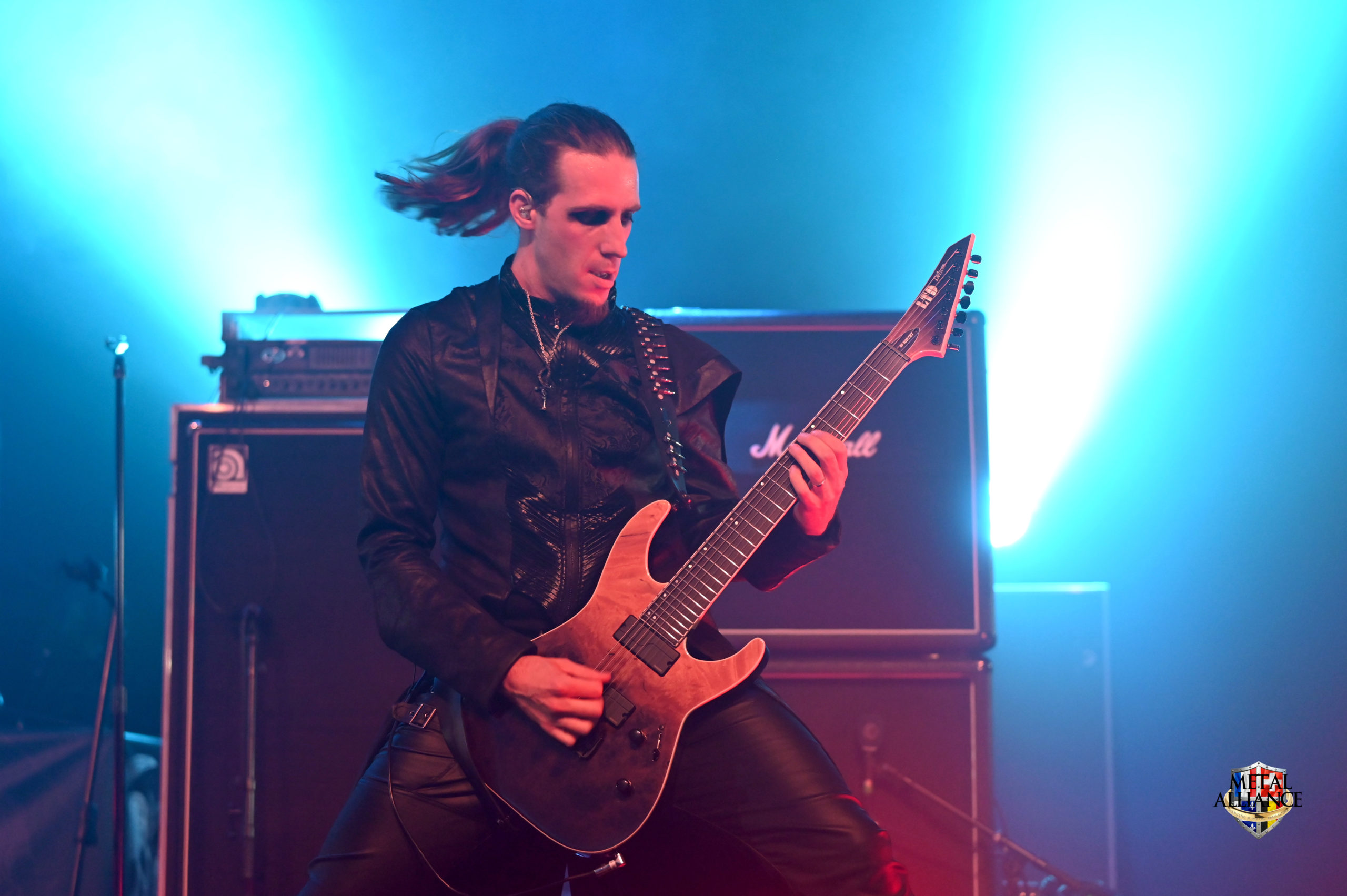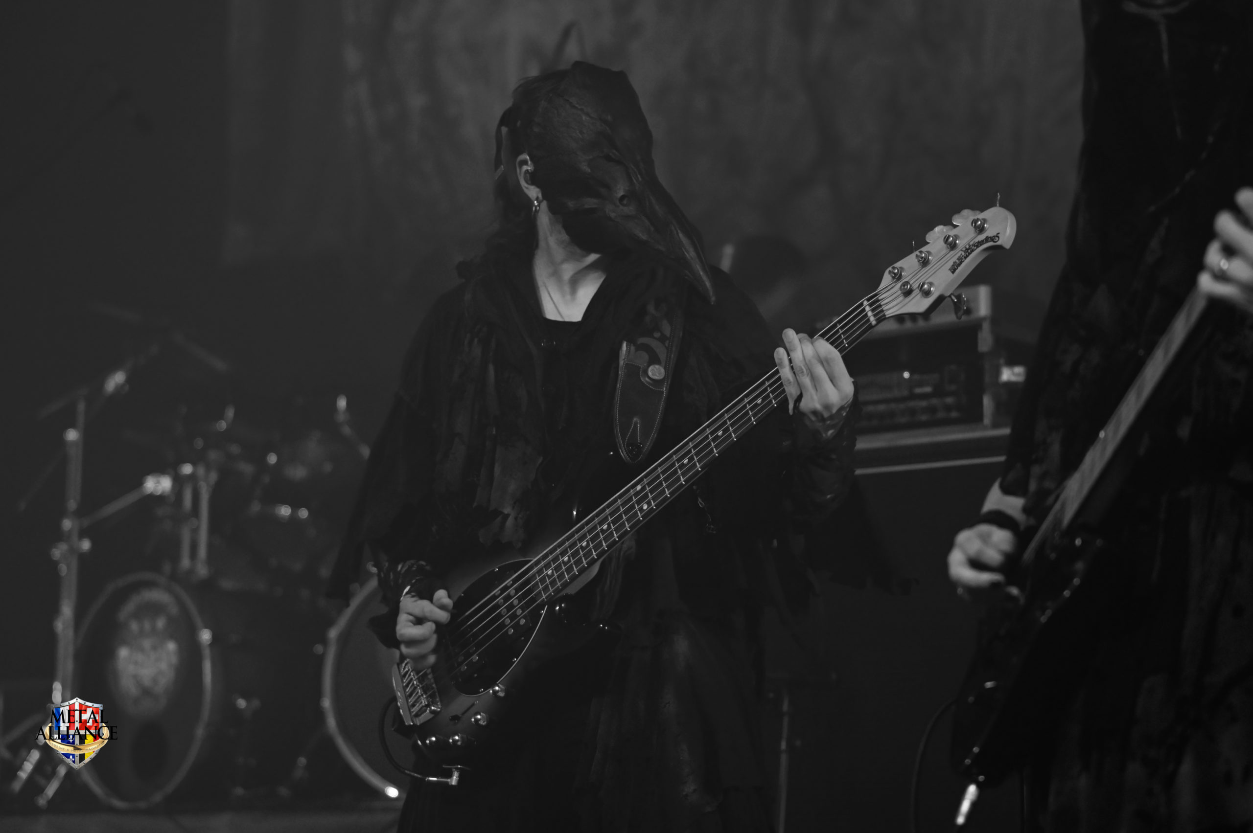 À l’image du premier groupe, Usquam a aussi des paroles en français mais pas seulement. En effet, Jessy Christ, qui a intégré le groupe en mai 2024, est polyglotte, et certains morceaux comme Ego sum (qui sum) mélangent l’anglais, le français et le latin. Elle maîtrise sa voix d’une manière impressionnante en scream, growl ou voix de tête. Le show commence avec une arrivée des protagonistes qui annonce la couleur. Usquam semble tout avoir : un univers, une identité graphique et de bons musiciens. Si le but est de régner sur le monde, l’ascension a commencé. La batterie est enregistrée mais les musiciens présents délivrent une énergie impressionnante. Les solos d’Eithenn nous transportent dans les profondeurs des limbes avec un son plus trash qui contraste avec celui de la guitare rythmique. Le titre Arcana nox propose un solo de guitare introductif qui nous happe par son rythme plutôt lent puis le rythme change quand le chant rentre en scène pour reboucler sur le rythme précédent. C’est d’une poésie rare. Je vous invite à aller les voir sur scène mais aussi à visionner le dernier clip sorti, Arcana nox [https://www.youtube.com/watch?v=Kkm9Rdgy1I4]