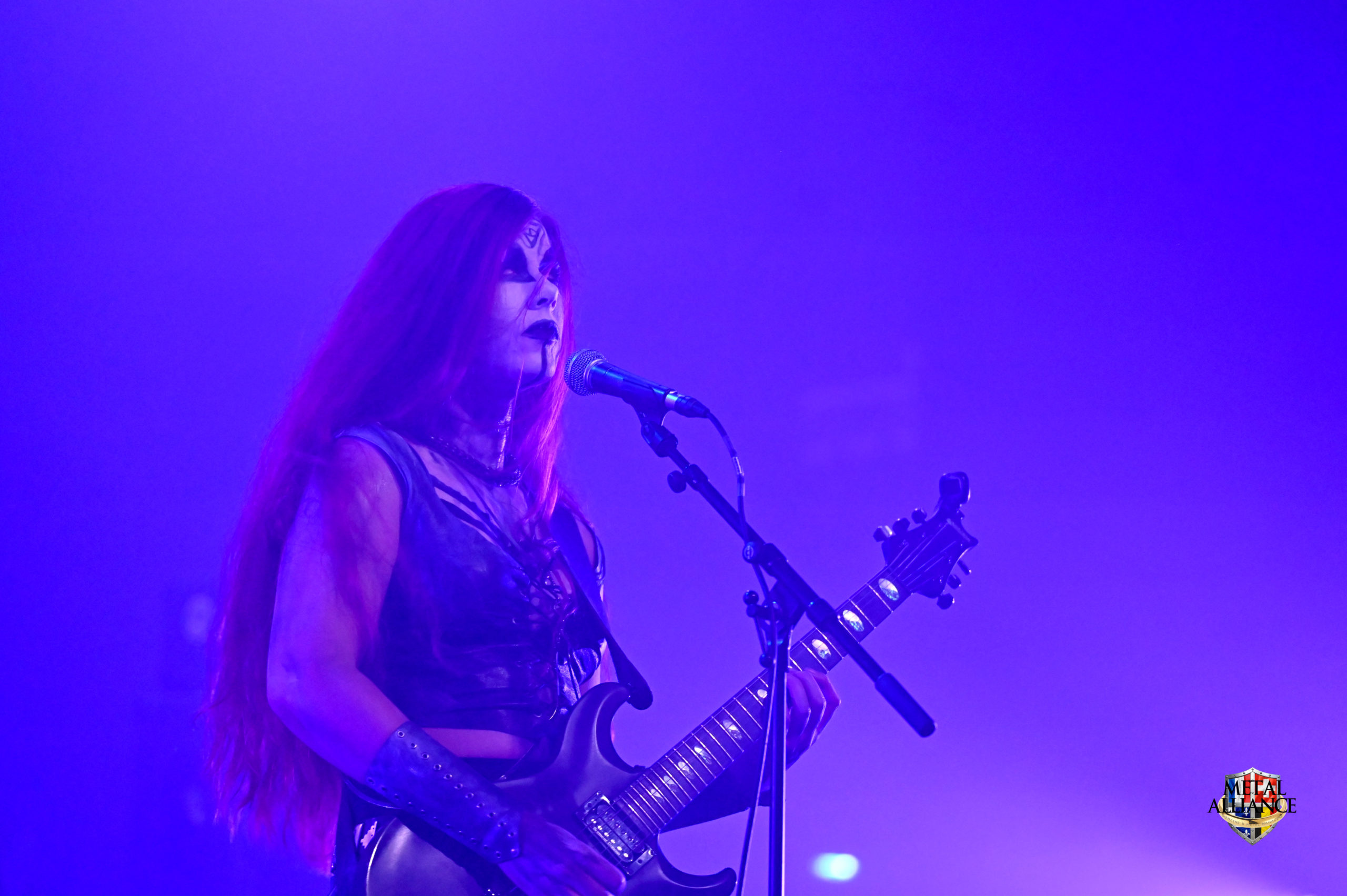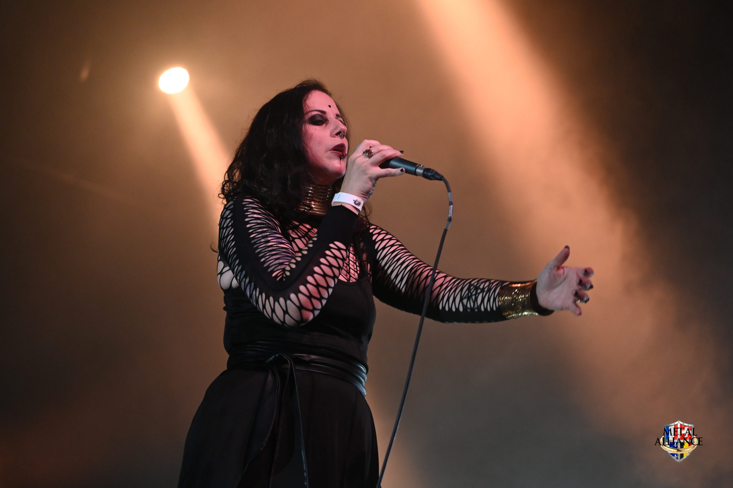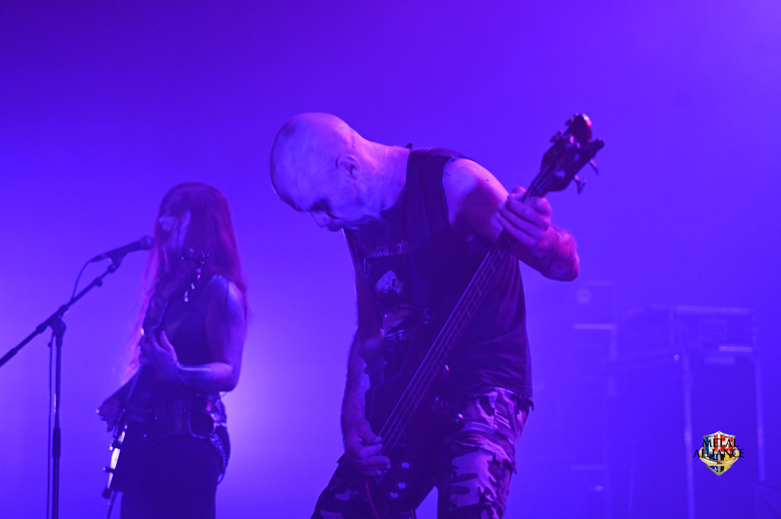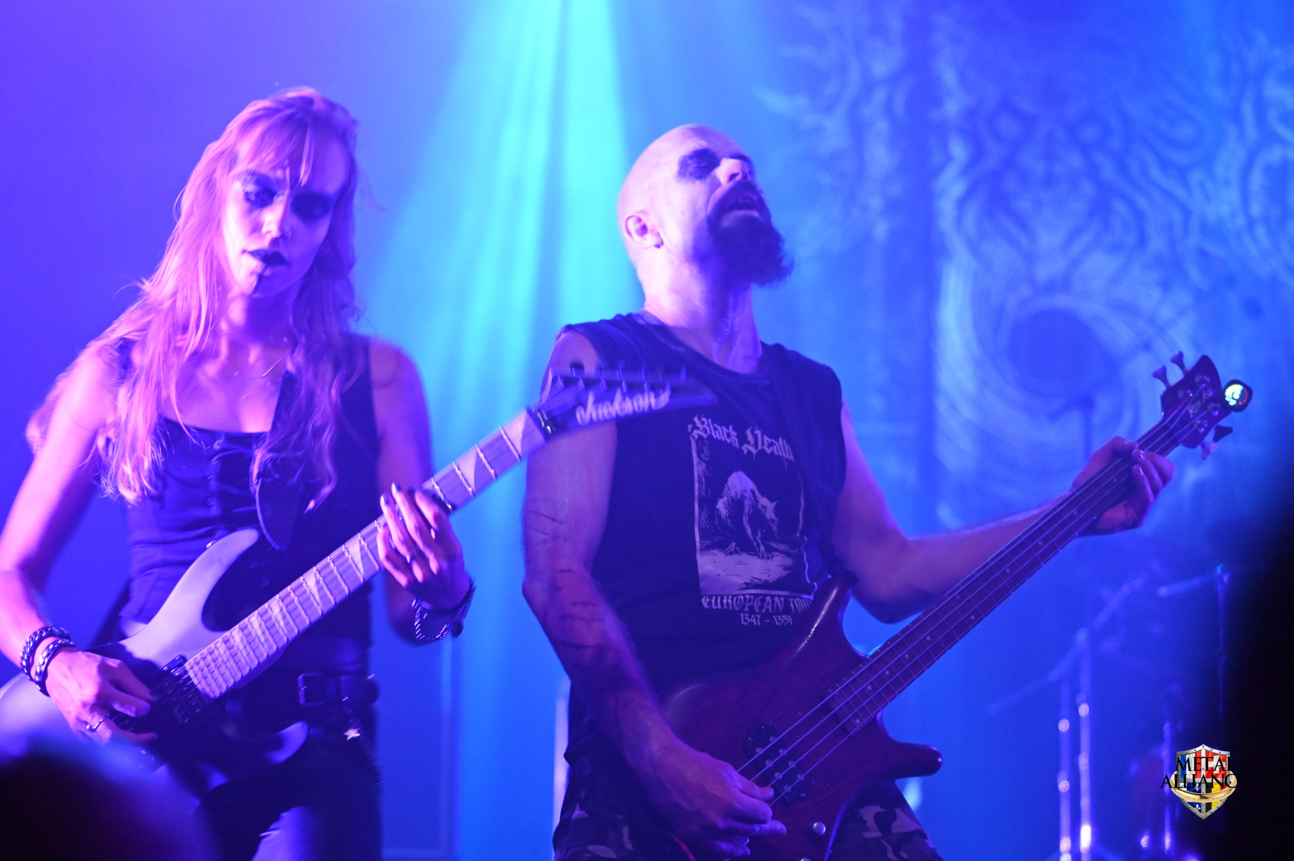À l’image du premier groupe, Usquam a aussi des paroles en français mais pas seulement. En effet, Jessy Christ, qui a intégré le groupe en mai 2024, est polyglotte, et certains morceaux comme Ego sum (qui sum) mélangent l’anglais, le français et le latin. Elle maîtrise sa voix d’une manière impressionnante en scream, growl ou voix de tête. Le show commence avec une arrivée des protagonistes qui annonce la couleur. Usquam semble tout avoir : un univers, une identité graphique et de bons musiciens. Si le but est de régner sur le monde, l’ascension a commencé. La batterie est enregistrée mais les musiciens présents délivrent une énergie impressionnante. Les solos d’Eithenn nous transportent dans les profondeurs des limbes avec un son plus trash qui contraste avec celui de la guitare rythmique. Le titre Arcana nox propose un solo de guitare introductif qui nous happe par son rythme plutôt lent puis le rythme change quand le chant rentre en scène pour reboucler sur le rythme précédent. C’est d’une poésie rare. Je vous invite à aller les voir sur scène mais aussi à visionner le dernier clip sorti, Arcana nox [https://www.youtube.com/watch?v=Kkm9Rdgy1I4]