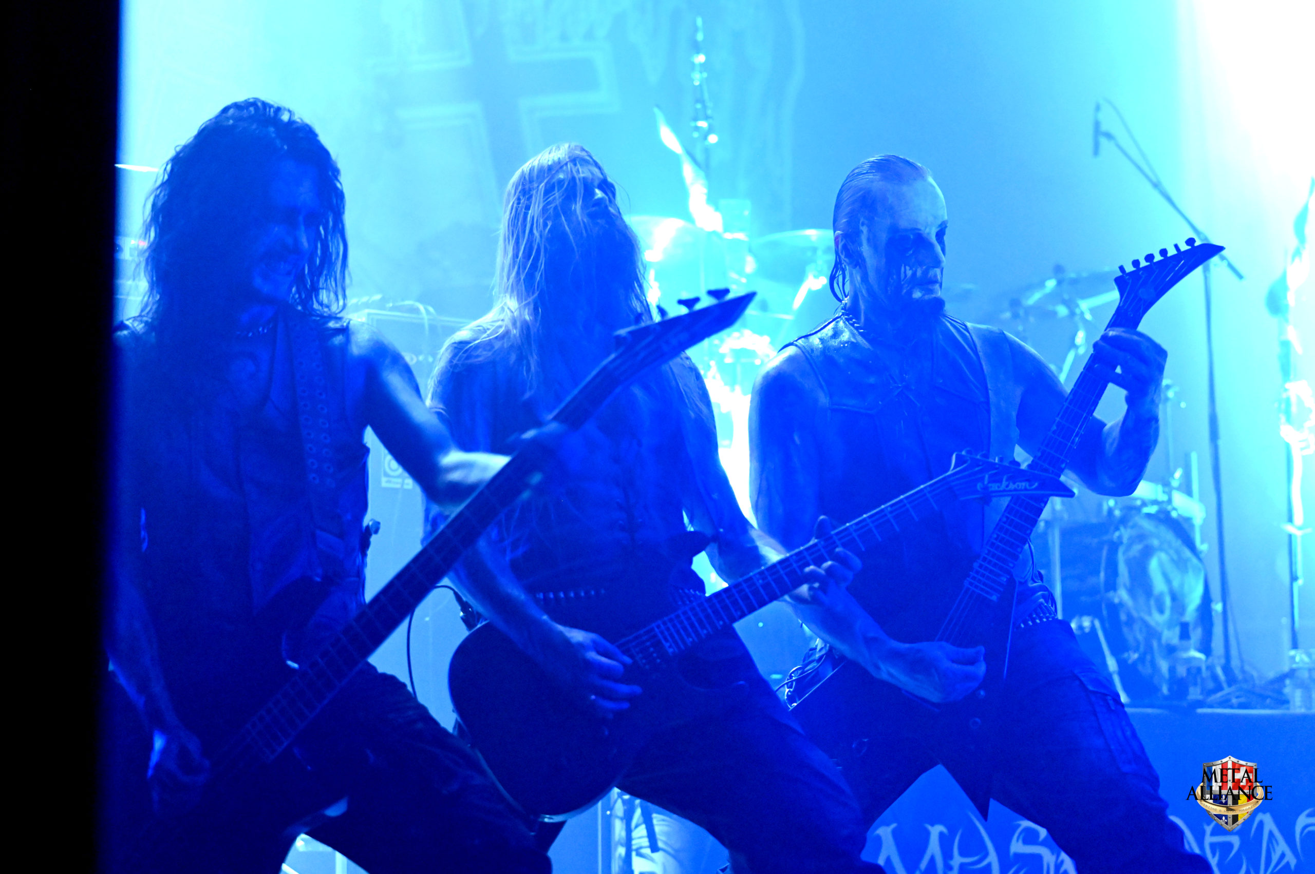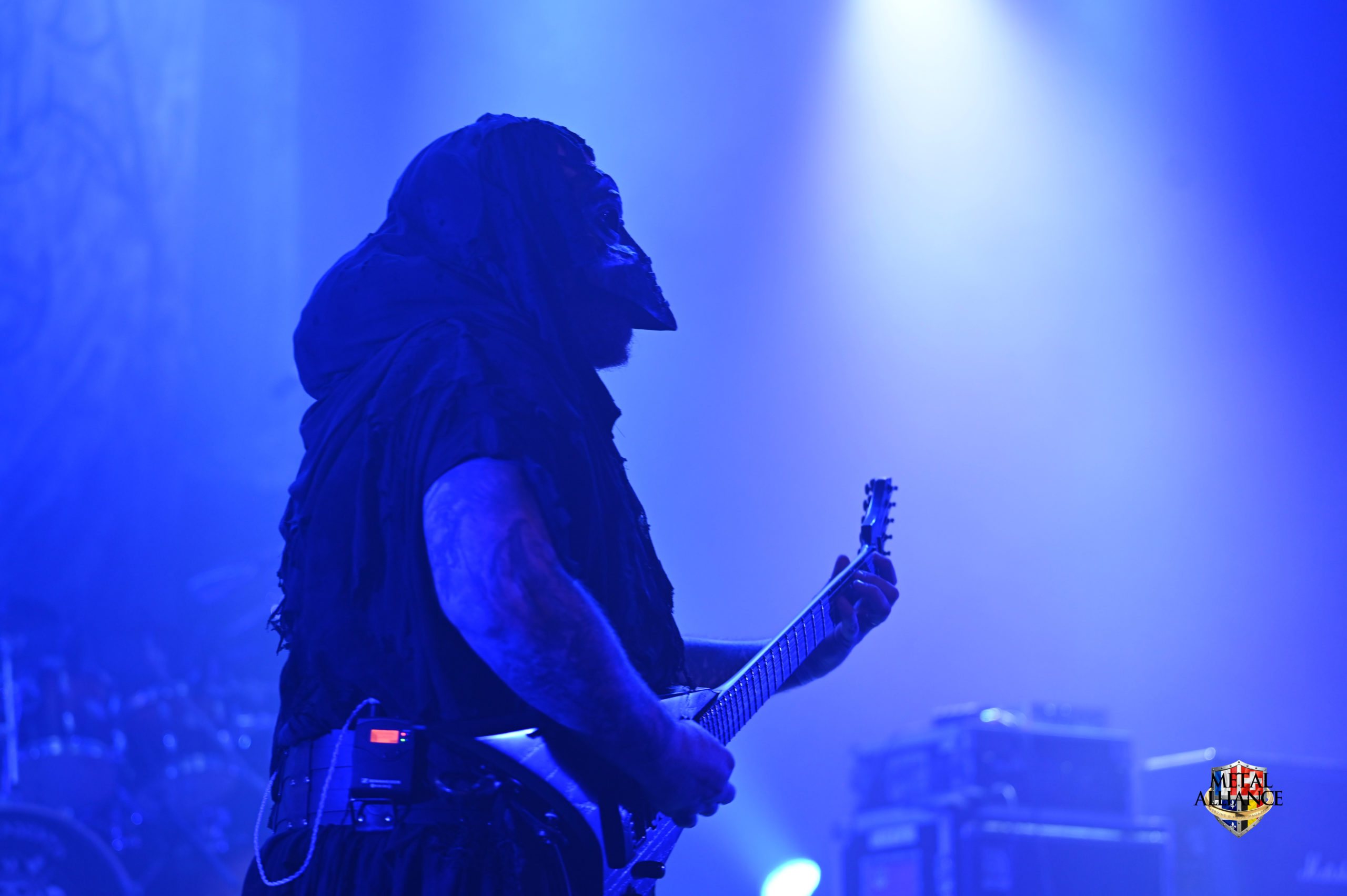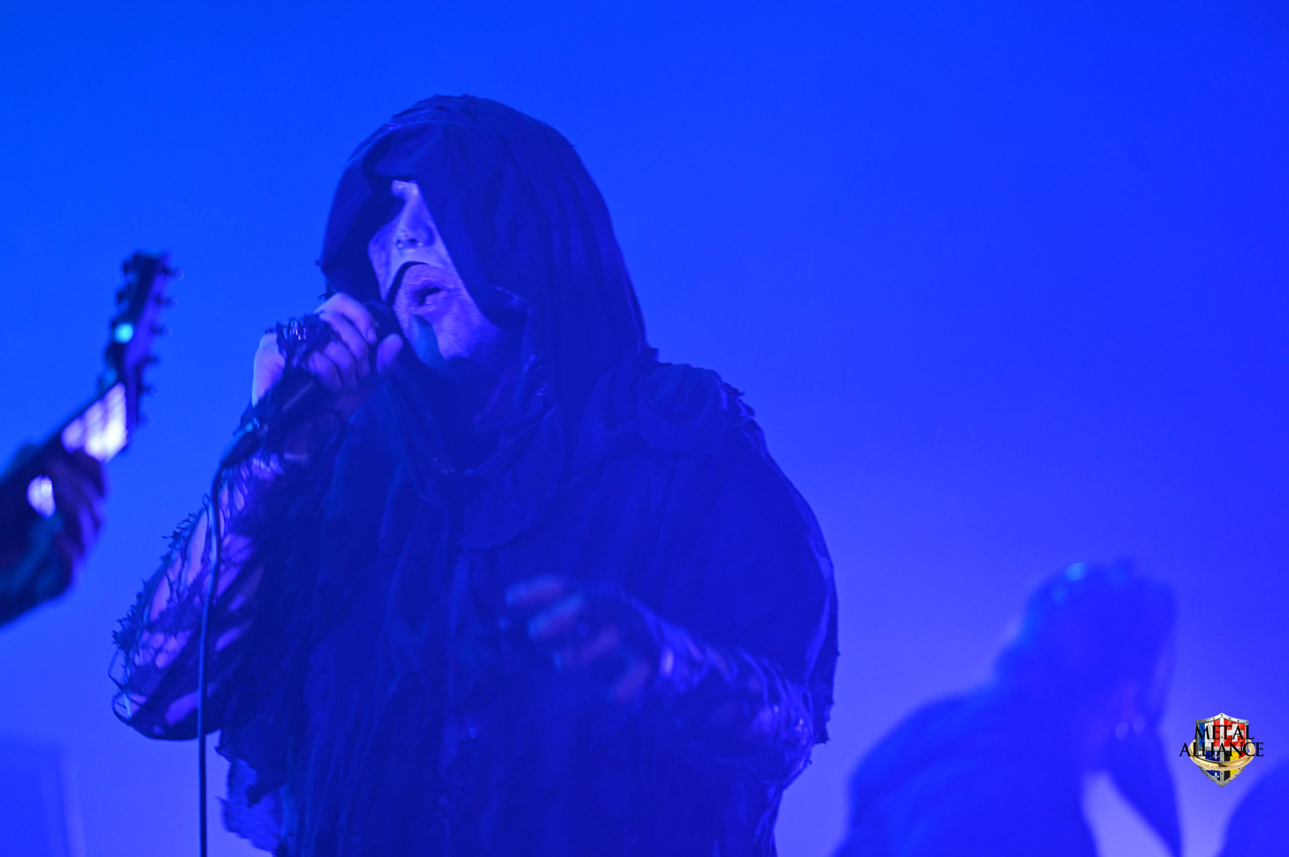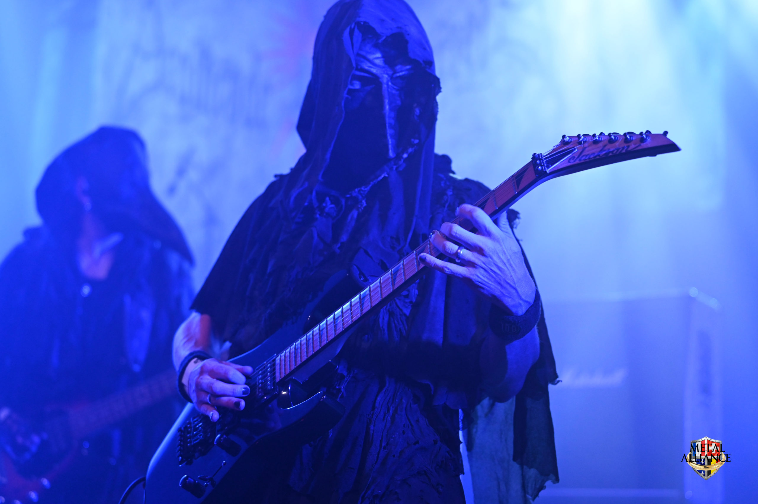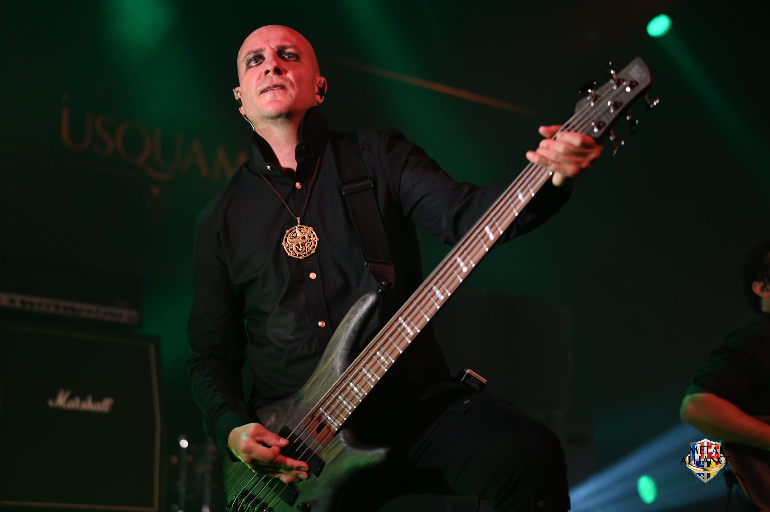 À l’image du premier groupe, Usquam a aussi des paroles en français mais pas seulement. En effet, Jessy Christ, qui a intégré le groupe en mai 2024, est polyglotte, et certains morceaux comme Ego sum (qui sum) mélangent l’anglais, le français et le latin. Elle maîtrise sa voix d’une manière impressionnante en scream, growl ou voix de tête. Le show commence avec une arrivée des protagonistes qui annonce la couleur. Usquam semble tout avoir : un univers, une identité graphique et de bons musiciens. Si le but est de régner sur le monde, l’ascension a commencé. La batterie est enregistrée mais les musiciens présents délivrent une énergie impressionnante. Les solos d’Eithenn nous transportent dans les profondeurs des limbes avec un son plus trash qui contraste avec celui de la guitare rythmique. Le titre Arcana nox propose un solo de guitare introductif qui nous happe par son rythme plutôt lent puis le rythme change quand le chant rentre en scène pour reboucler sur le rythme précédent. C’est d’une poésie rare. Je vous invite à aller les voir sur scène mais aussi à visionner le dernier clip sorti, Arcana nox [https://www.youtube.com/watch?v=Kkm9Rdgy1I4]
