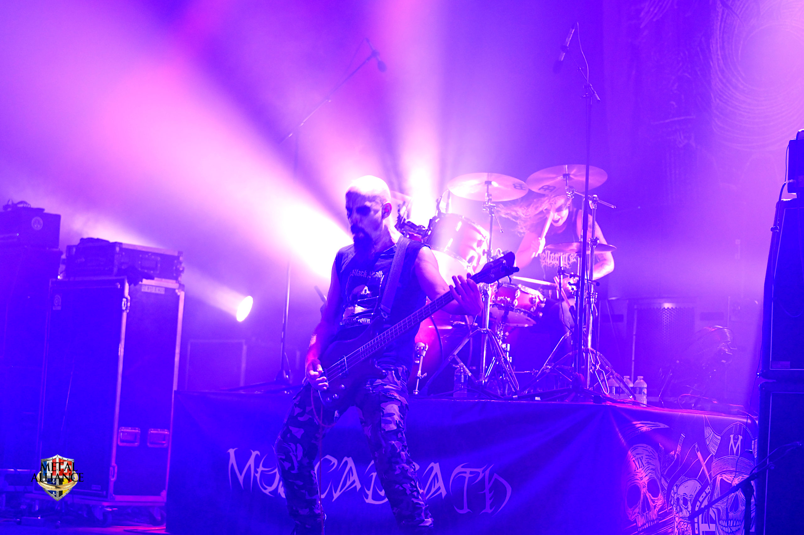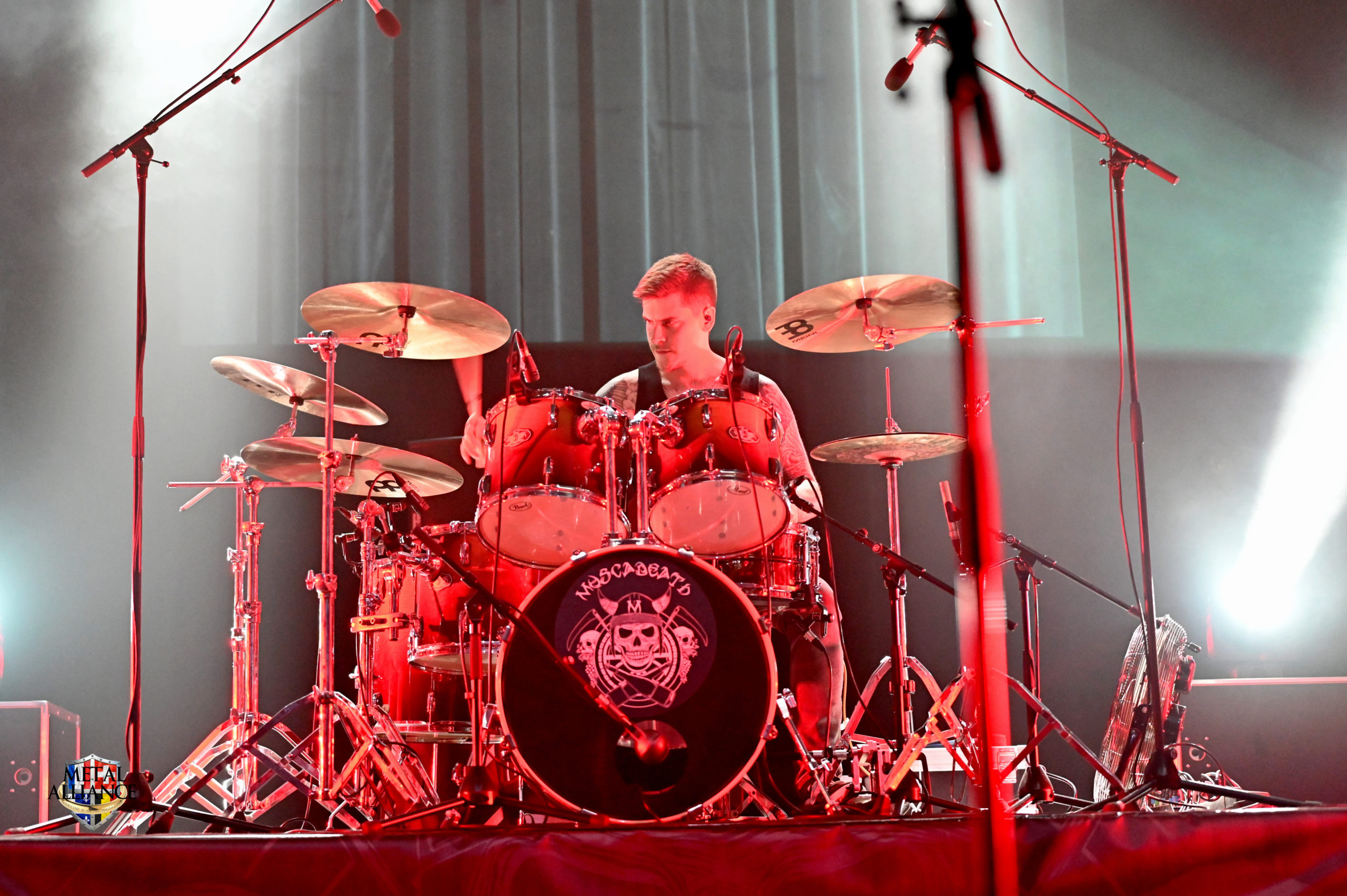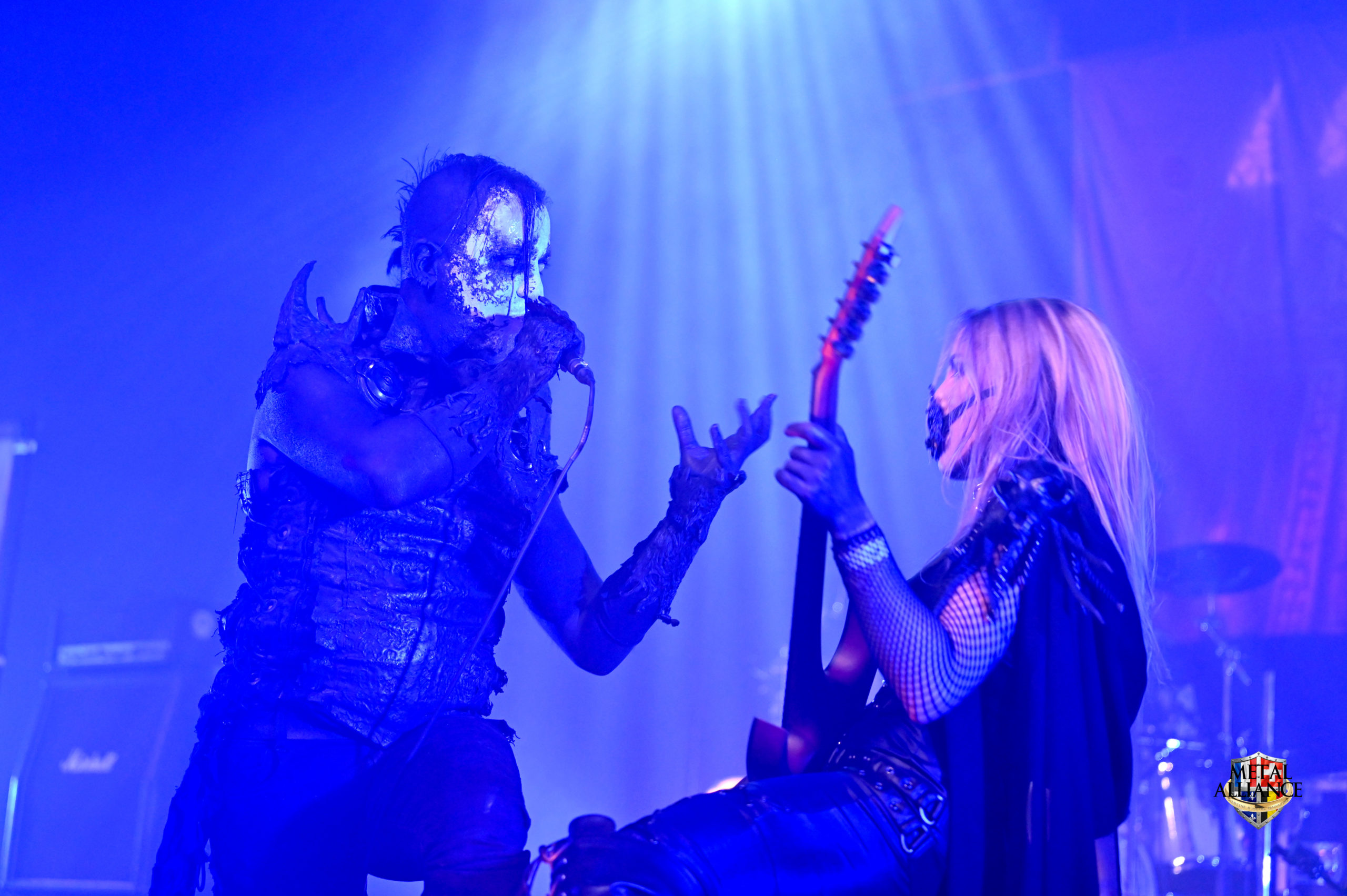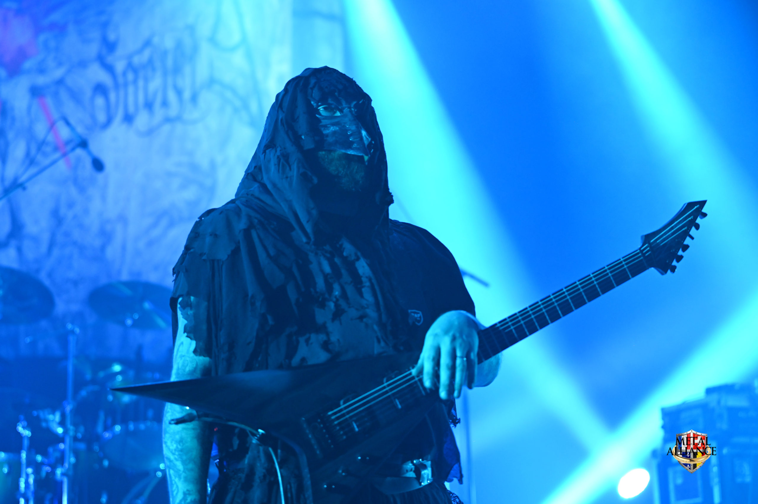 À l’image du premier groupe, Usquam a aussi des paroles en français mais pas seulement. En effet, Jessy Christ, qui a intégré le groupe en mai 2024, est polyglotte, et certains morceaux comme Ego sum (qui sum) mélangent l’anglais, le français et le latin. Elle maîtrise sa voix d’une manière impressionnante en scream, growl ou voix de tête. Le show commence avec une arrivée des protagonistes qui annonce la couleur. Usquam semble tout avoir : un univers, une identité graphique et de bons musiciens. Si le but est de régner sur le monde, l’ascension a commencé. La batterie est enregistrée mais les musiciens présents délivrent une énergie impressionnante. Les solos d’Eithenn nous transportent dans les profondeurs des limbes avec un son plus trash qui contraste avec celui de la guitare rythmique. Le titre Arcana nox propose un solo de guitare introductif qui nous happe par son rythme plutôt lent puis le rythme change quand le chant rentre en scène pour reboucler sur le rythme précédent. C’est d’une poésie rare. Je vous invite à aller les voir sur scène mais aussi à visionner le dernier clip sorti, Arcana nox [https://www.youtube.com/watch?v=Kkm9Rdgy1I4]