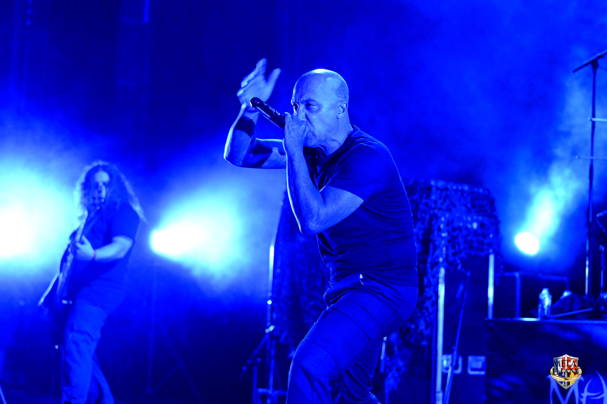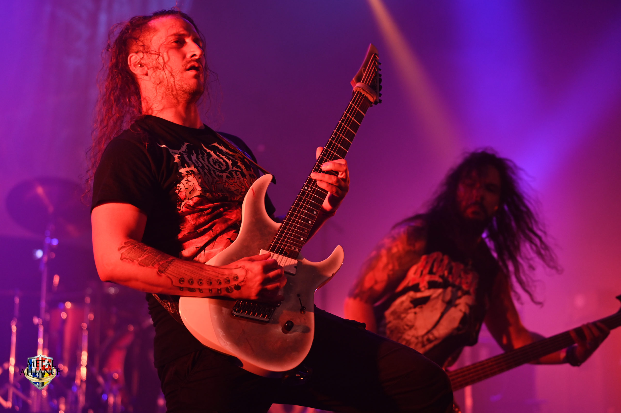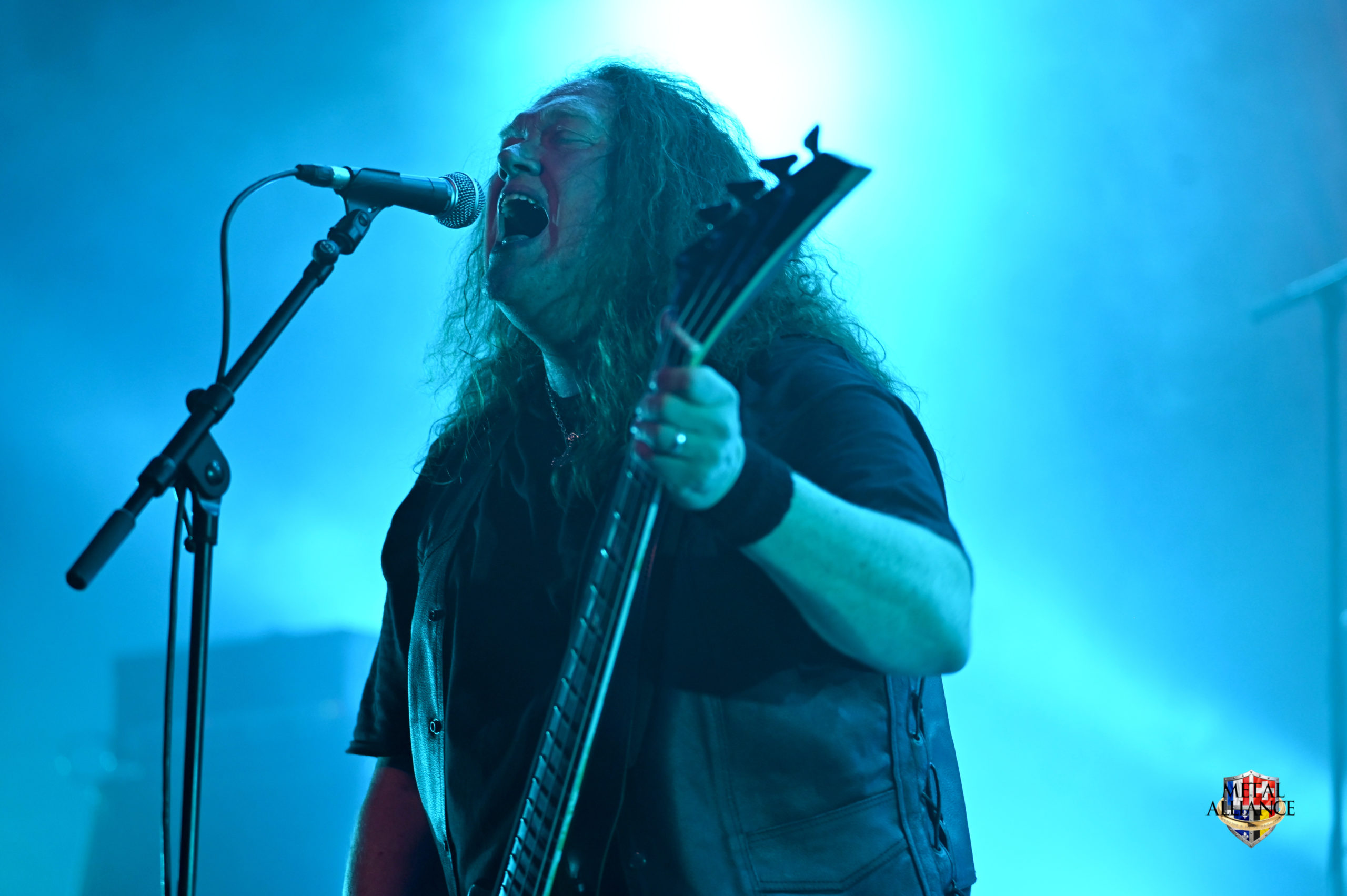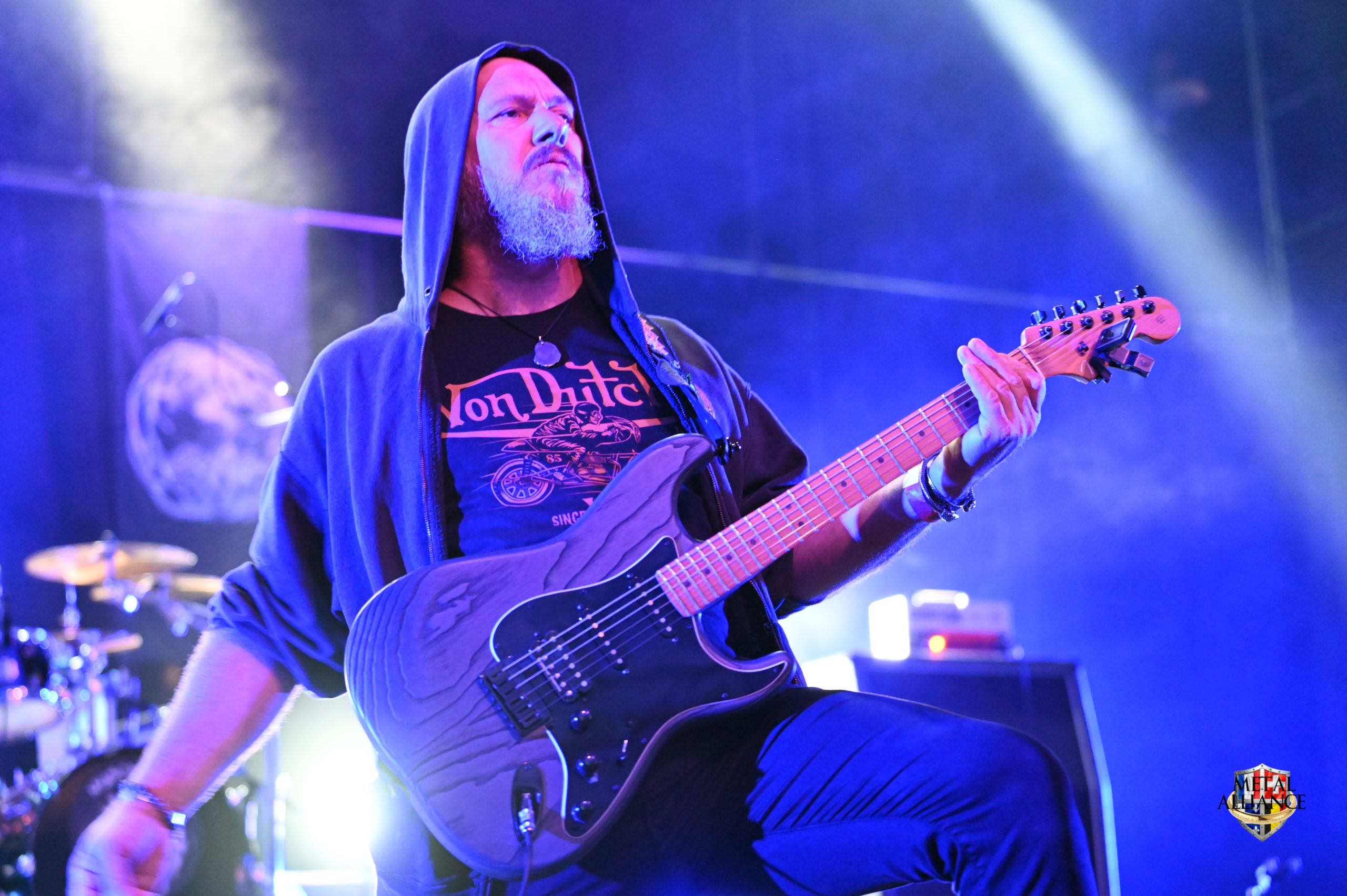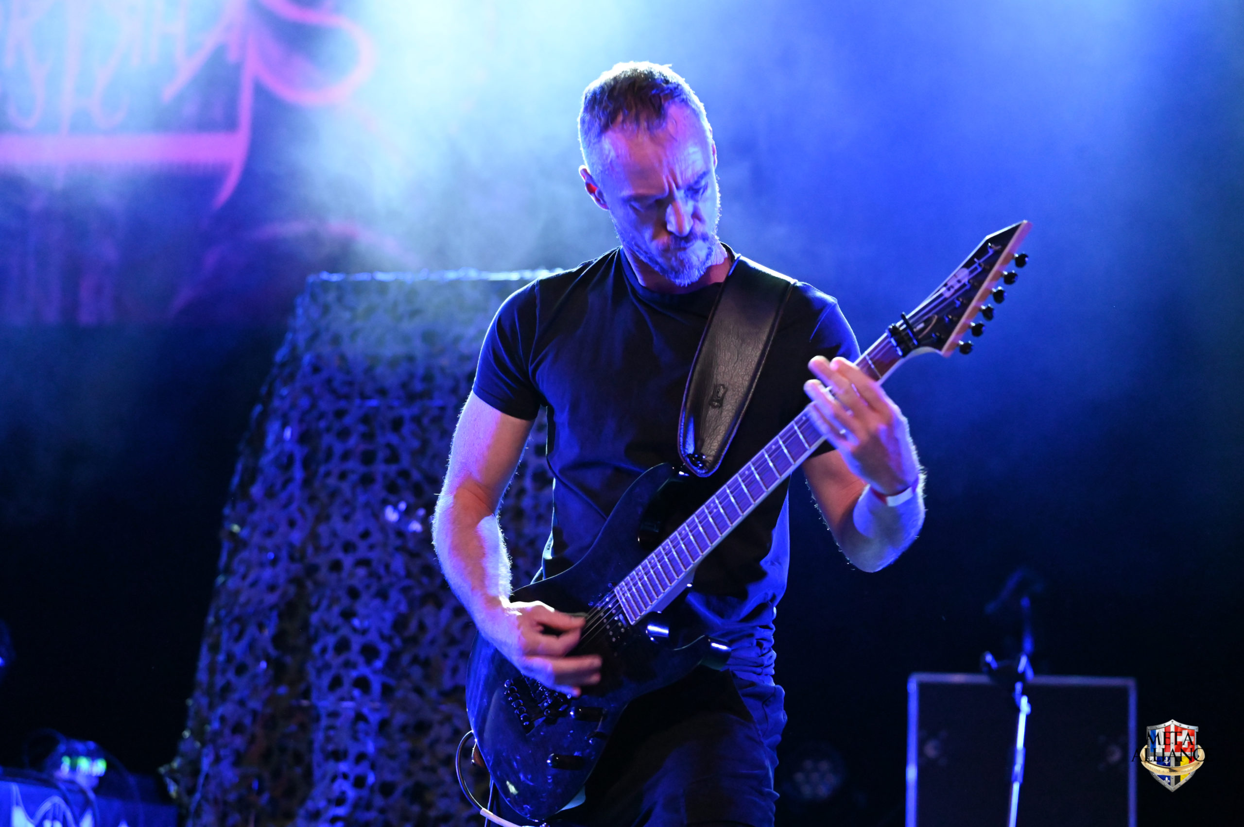 Enfin Massacra Legacy ! Je suis tellement heureuse après cette superbe interview, j’attendais les membres du groupe avec encore plus d’impatience. À l’image de Kronos il y a 2 ans, la nostalgie m’envahit mais toujours avec le sourire. Quelle bonne idée, Chris ! Merci à toi et ton nouveau line up plein de talent. Un problème technique côté guitare pour Don Brutal, sur le premier titre Enjoy the Violence, car les aléas de la scène n’épargnent personne, mais comme les musiciens sont déjà bien aguerris, tout le monde continue. Moreno Grosso ne s’arrête pas de chanter et heureusement car une redistribution des rôles a eu lieu. En effet, il prend à son compte les deux voix originales, ce qui démontre une maîtrise certaine de son organe. Spéciale dédicace à Nabil Rafiq, un bassiste qui joue aussi vite que les guitaristes pour doubler leurs lignes, ça se savoure. Que vous dire de plus ? Ils enchaînent, ce sont des pros et entre le revival préparé, l’attente des vieux métalleux/ses nostalgiques et la découverte par les plus jeunes, l’ambiance est magnifiquement détonante. Chris, batteur et membre fondateur de Massacra, nous explique qu’ils sont là pour faire revivre le triptyque constitué des premiers albums de Massacra (les plus violents) à l’image des morceaux comme : Final Holocaust, titre éponyme de l’album sorti en 1990. The Day of Massacra a pour intro la voix de Fred, décédé en 1997, et un hommage est aussi rendu à Mathias Slimmer. Eh bien, les gars, c’est un revival réussi ! Vivement les compositions à venir !
