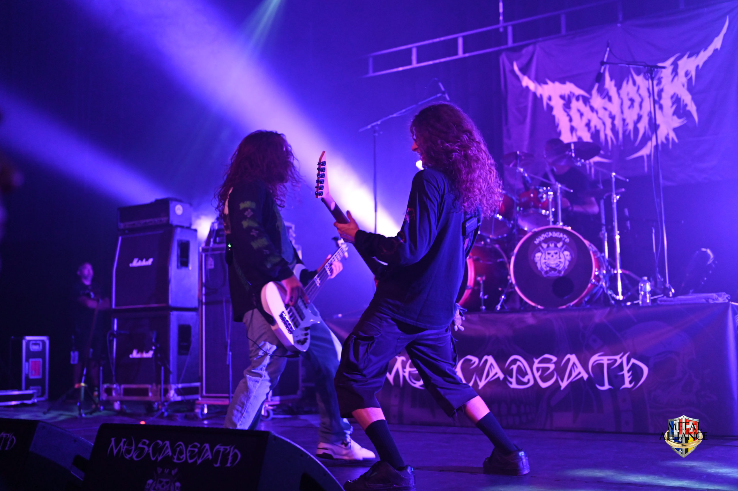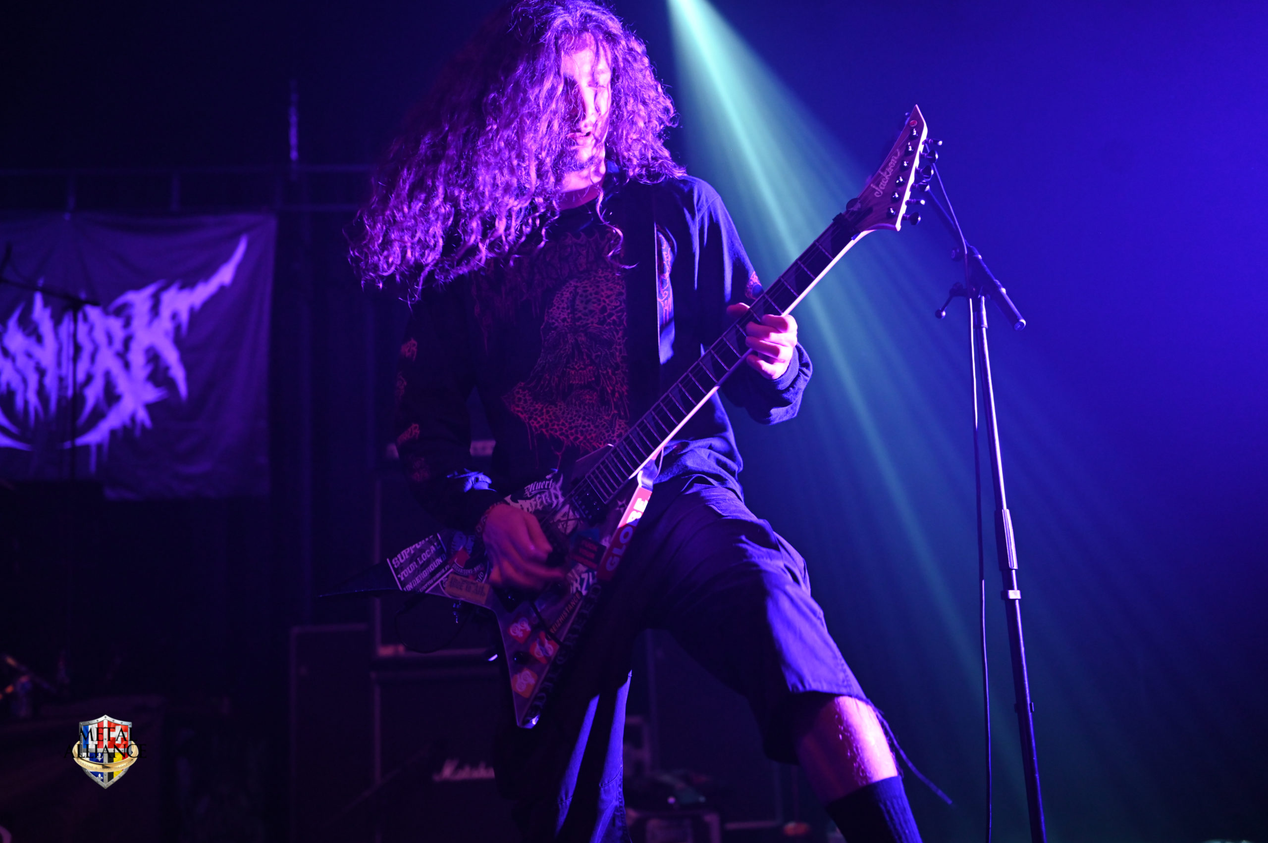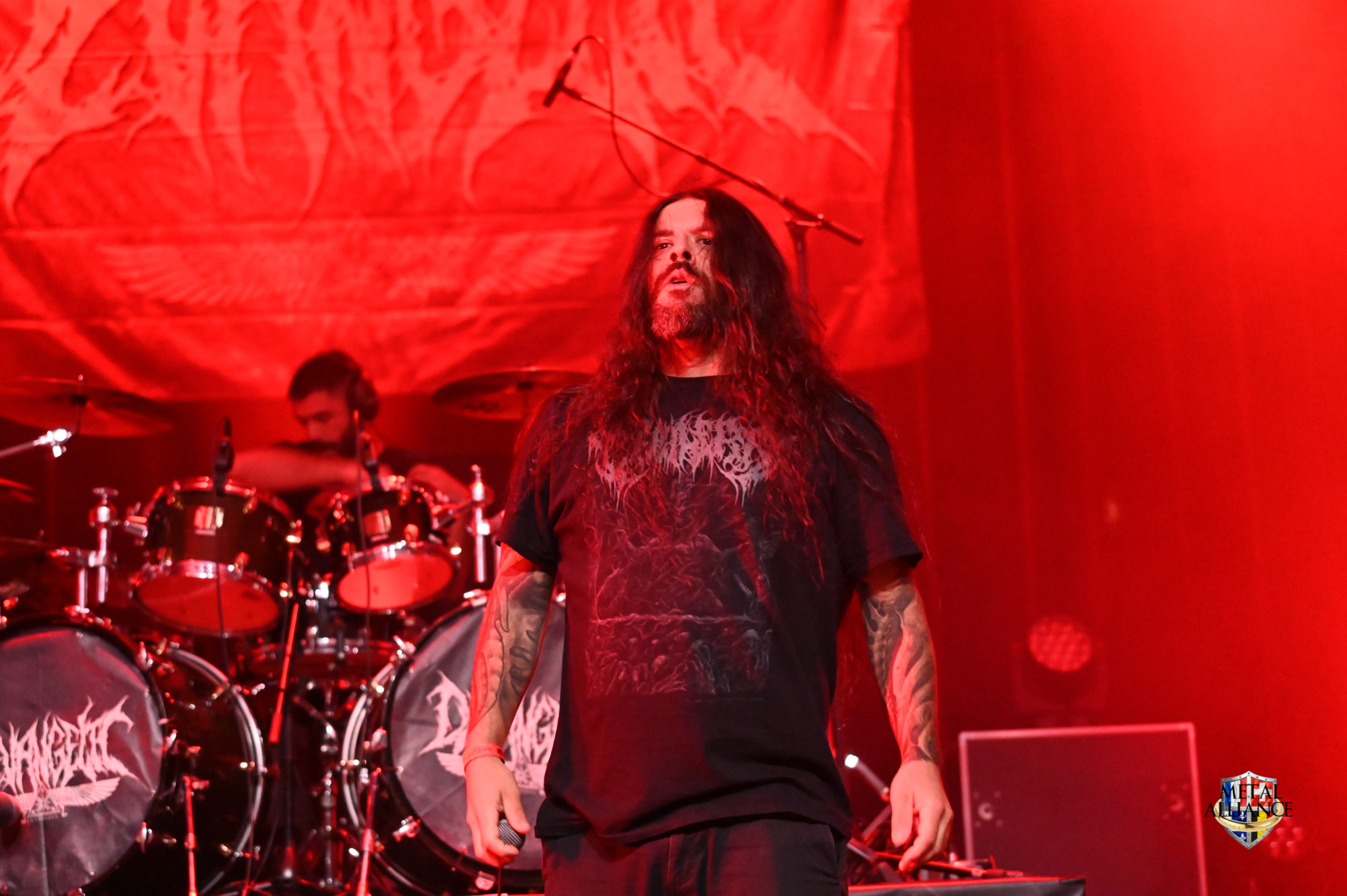 Avulsed est sur scène mais il lui manque un guitariste. En effet, petit couac, excuses du lead et c’est reparti. Le premier morceau est tout droit sorti du dernier album Phoenix Cryptobiosis, chroniqué par Christophe Perroud de Metal Alliance Mag en début d’année [https://metalalliancemag.ch/chroniques/avulsed-phoenix-cryptobiosis/] et que je vous conseille. À l’instar de Massacra Legacy, personne n’arrête le show et Dave Rotten, le chanteur, interprète aussi deux voix différentes. J’adore la manière de jouer d’Arjan van der Wijst à la batterie, on savoure les enchaînements jusqu’au dernier morceau Sick Sick Sex, issu de l’album Deathgeneration.