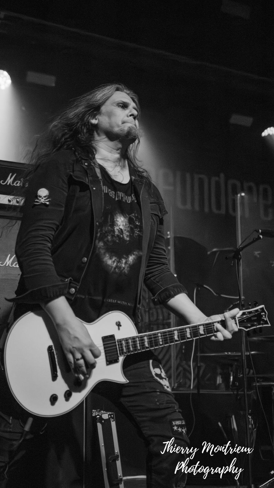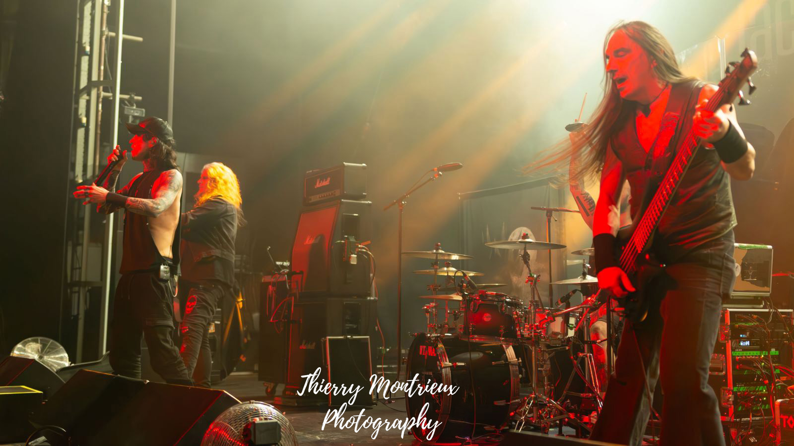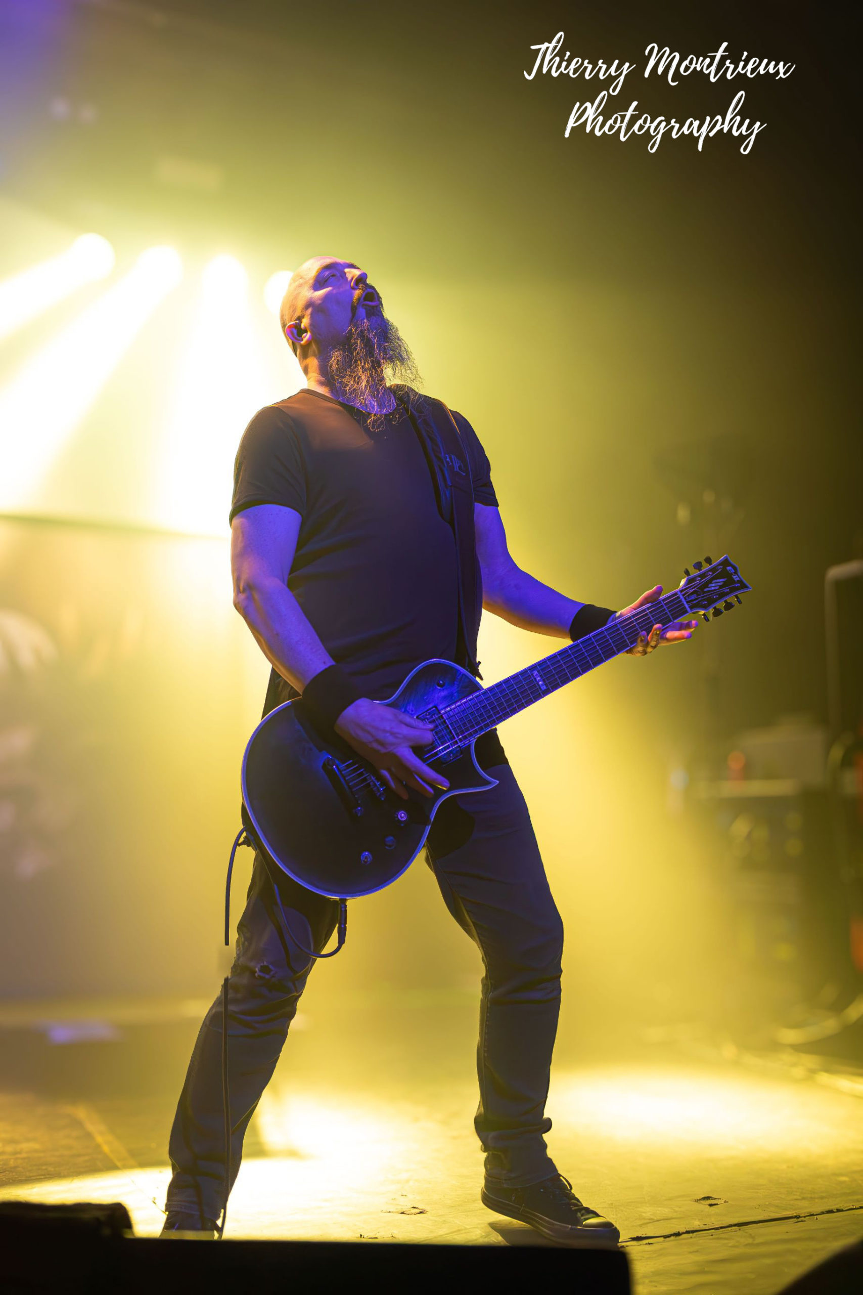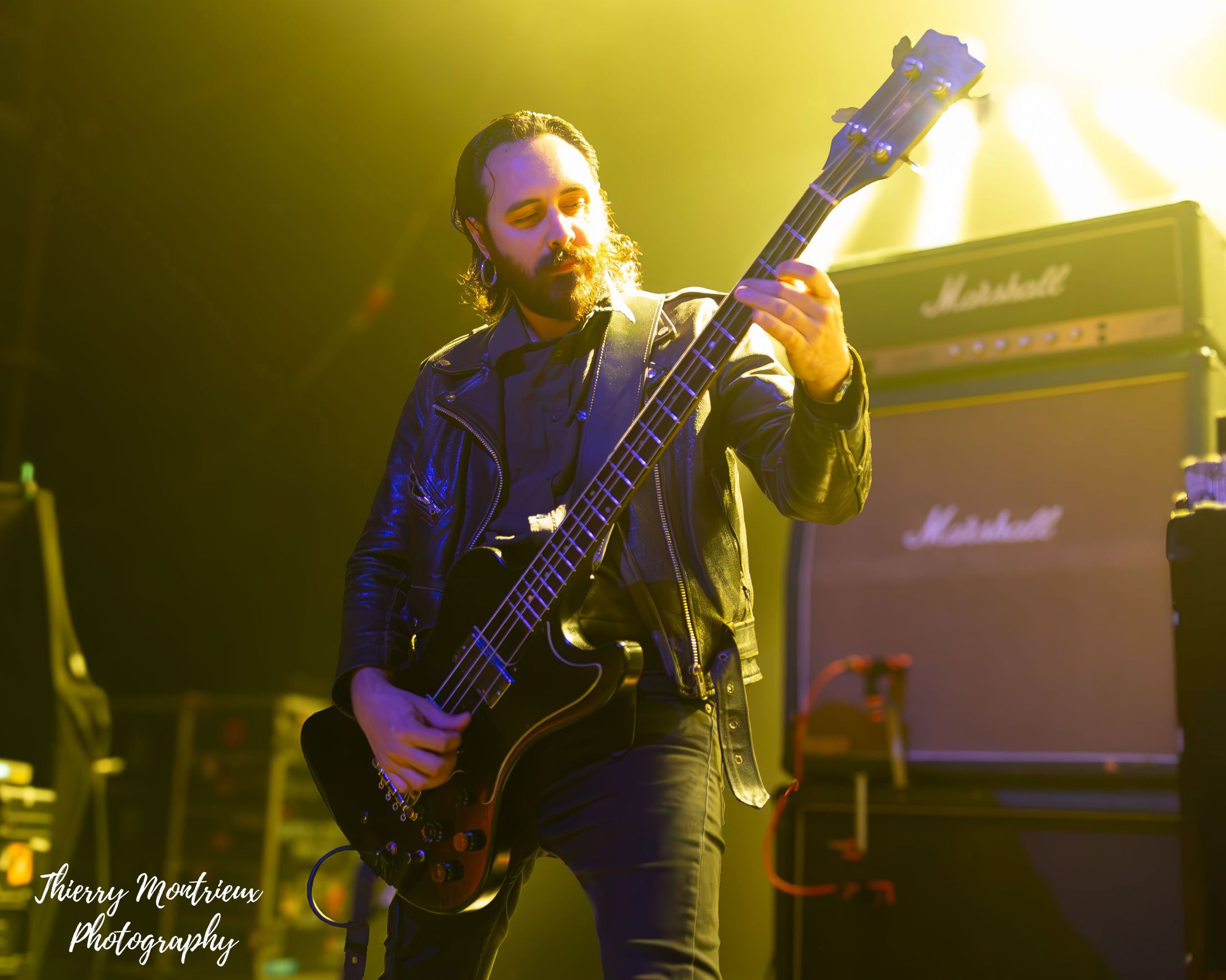 En tête d’affiche, Paradise Lost déroule un show dense et élégant, calibré pour célébrer sa période emblématique tout en ancrant la nouvelle ère Ascension. Du dernier album, ils joueront trois titres : Serpent on the Cross, Silence Like the Grave et Tyrants Serenade. Charisme sobre au chant de Nick Holmes, guitares enlacées avec précision, rythmique chirurgicale – l’ensemble respire une maturité scénique impressionnante, qu’on soit à Londres, Paris, Vienne ou Padoue. Les titres récents s’imbriquent naturellement aux classiques (treize titres qui passent toute leur carrière en revue), l’écriture mélodique et les contrastes goth/doom s’additionnant pour construire un vrai récit de concert : tension, relâchement, climax final. Au fil des morceaux, on sent la montée en régime : la salle est sold-out et le public embarqué. Grande soirée, grand groupe, net et sans bavure.