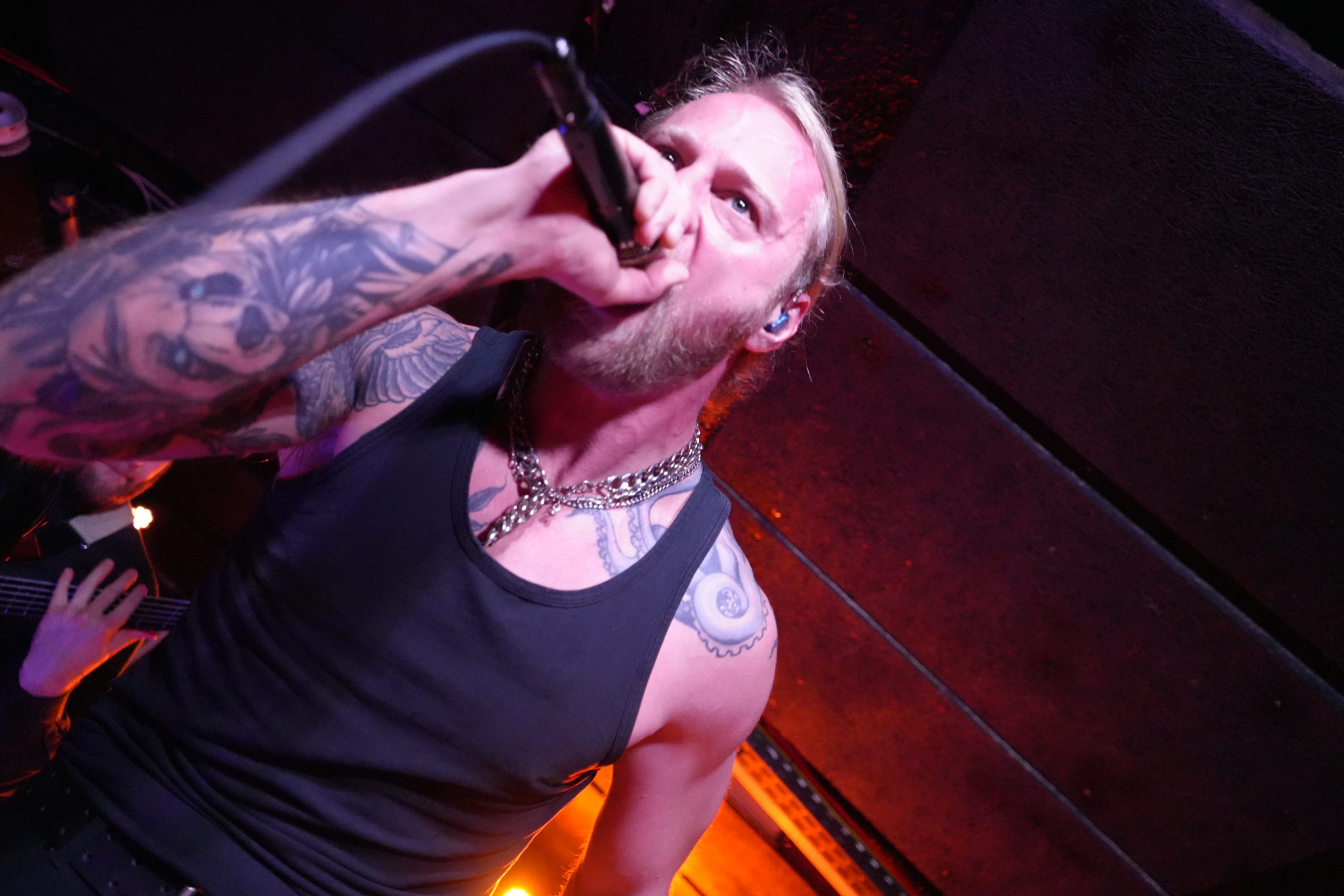 Lampr3a a ouvert la soirée et je dois dire que c’est une bonne découverte ! C’est prog, c’est instrumental mais pas planplan pour autant. Le bassiste du groupe impose une stature sur scène de par son instrument. L’énergie déployée par les ibériques a mis le feu à un Rock N Eat quasi plein. La setlist jouée par le groupe propose un habile mélange de synthé, d’instru, de technicité et de metal puissant grâce à une batterie qui, sans être dominante, évite l’écueil du prog instrumental qui s’écoute. Bref, n’hésitez pas à aller jeter une oreille ! Vous risqueriez d’avoir une bonne surprise.