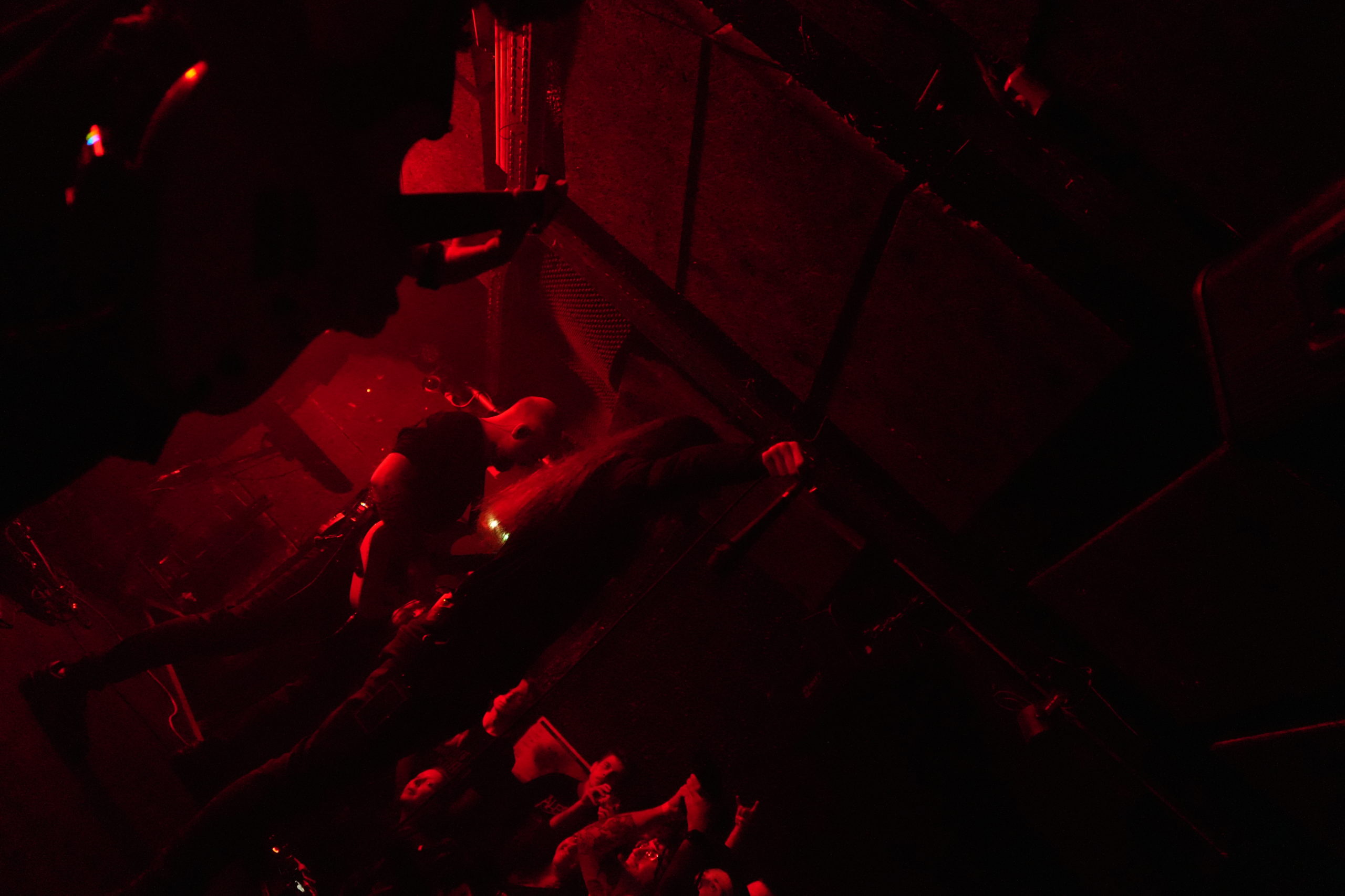 Le Rock N Eat est une des salles de concerts les plus cools dans lesquelles j’ai pu allégrement transpirer : c’est intimiste, c’est dark, la programmation y est bonne et… les lieux ont la mémoire d’antan. Jadis, le Rock N Eat fut ce que l’on pourrait vulgairement nommer « une boîte à cul » ! On peut d’ailleurs encore se promener le long de petites cellules, d’où les crochets n’ont jamais été retirés… Bref, le Rock N Eat, c’est trop cool ! Et les couloirs étroits où se mêlent les groupes qui doivent préparer leurs instruments et le public qui fait la queue pour les toilettes, sur fond de cellules sensuellement décorées, c’est une expérience à vivre ! Le seul hic, c’est pour faire des photos donc soyez donc indulgents, merci !