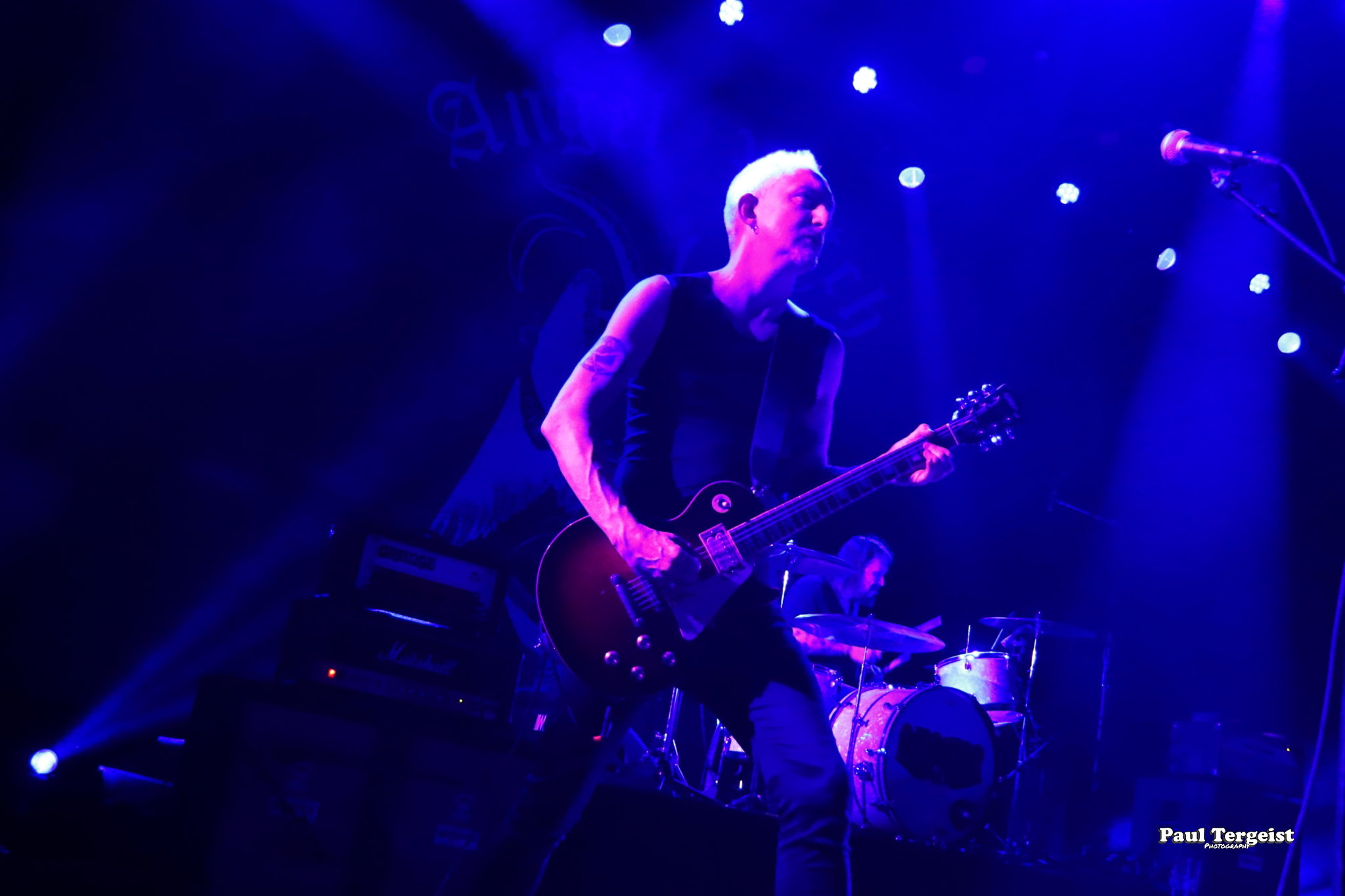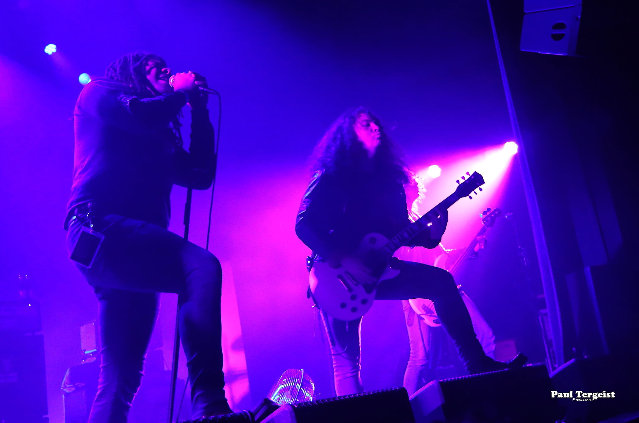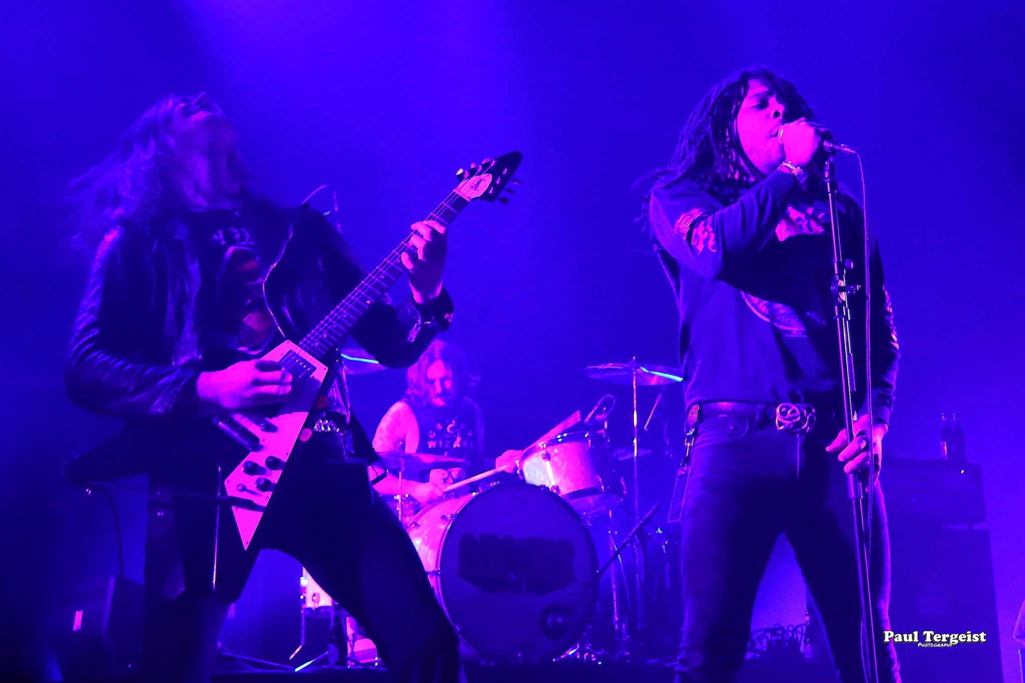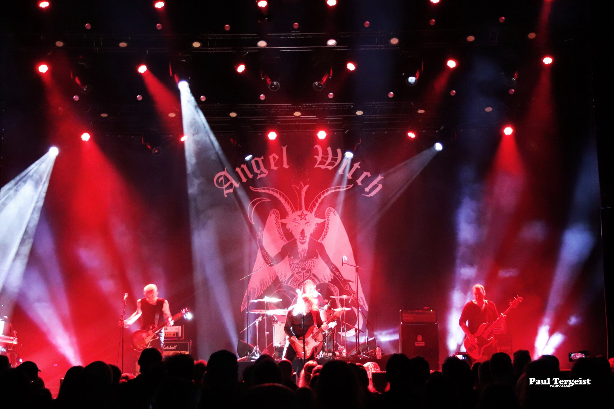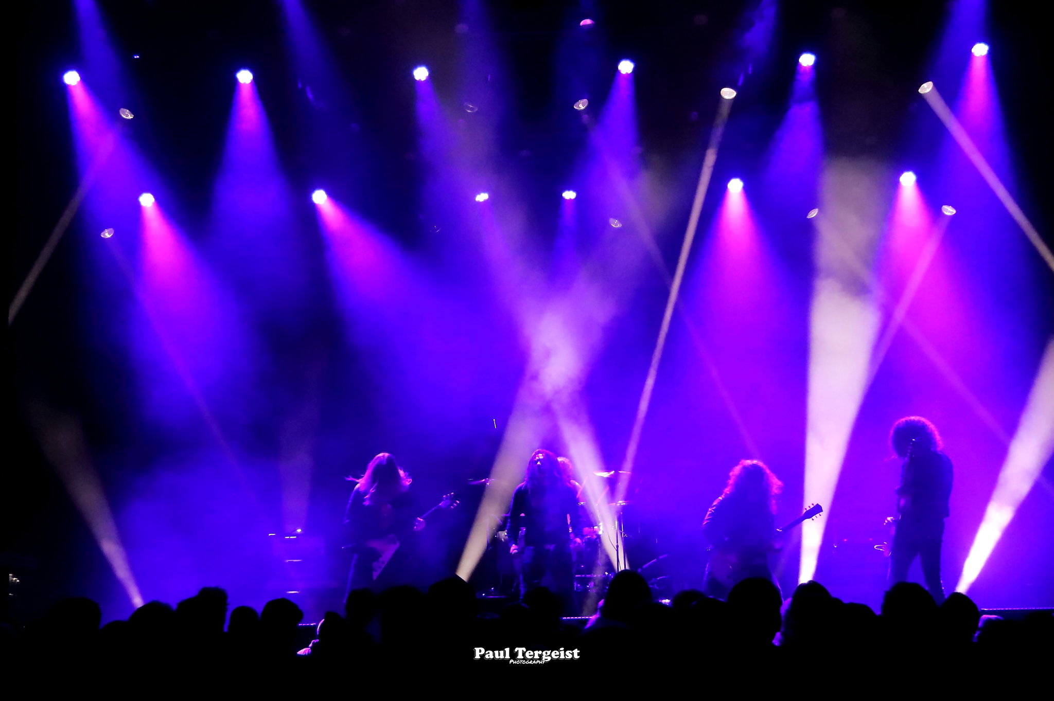 Que dire d’un concert d’Angel Witch alors que le groupe a sorti son premier album éponyme en 1980 et connaît, depuis déjà de nombreuses années, une seconde jeunesse ? Certes, la surprise n’est pas au rendez-vous… ceci dit, personne n’est censé être là pour ça, plutôt pour déguster une série de classiques par définition indémodables et teintés de NWOBHM mais aussi de doom. Quant à ceux qui l’ignorent encore, ils apprendront qu’Angel Witch fit partie des pionniers de ce qui est devenu un genre à part entière dans les 80’s, même si les vénérables Black Sabbath et autres chantres du rock occulte en avaient posé les solides bases une décennie plus tôt. Nous resterons cependant sur notre faim durant la première moitié du set, toutefois la faute n’est pas à imputer au groupe en lui-même, qui se retrouve victime d’une mise en son faiblarde et plate donnant l’impression qu’il ne se donne que peu. Puis, miraculeusement, d’une seconde à l’autre, le son devient clair, puissant et dynamique. Cela change tout ! Nous ne chercherons pas à comprendre le pourquoi du comment de ce revirement soudain. Qui plus est, contrairement à ce que prétend l’adage, la dernière impression reste la meilleure, et nous terminerons donc plutôt satisfaits d’avoir assisté à ce bon concert, tout comme une étonnamment jeune partie du public, qui reprend en chœur l’hymne éponyme Angel Witch. Ce titre fait partie de la tracklist du jeu vidéo Brütal Legend, parmi une pléiade d’autres groupes metal, ceci expliquant sans doute cela.