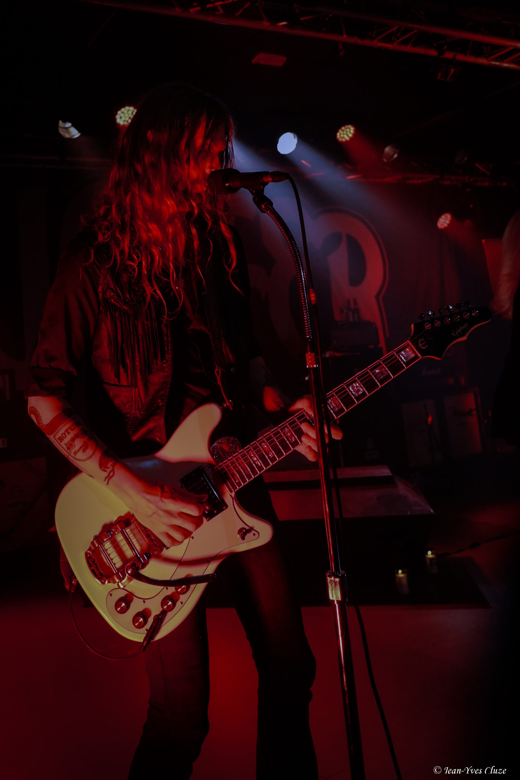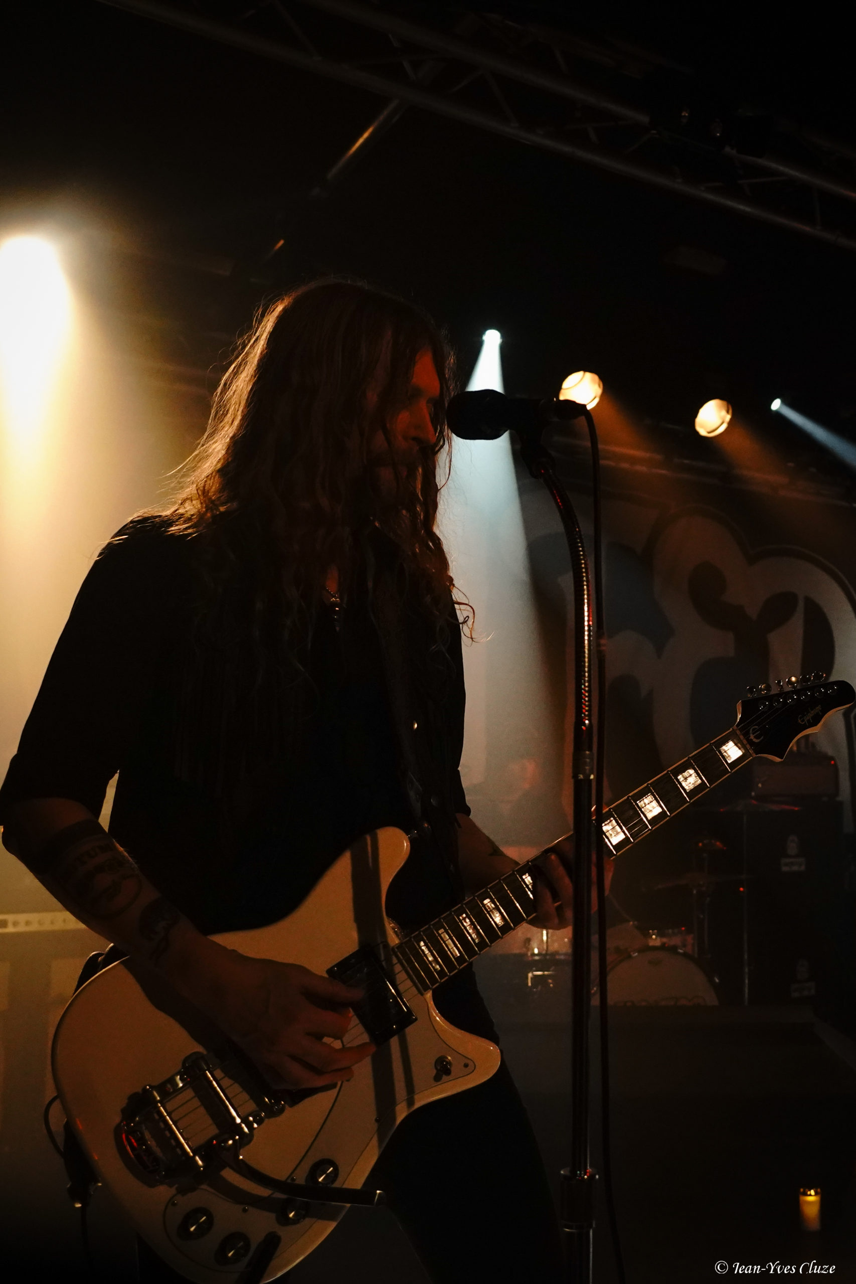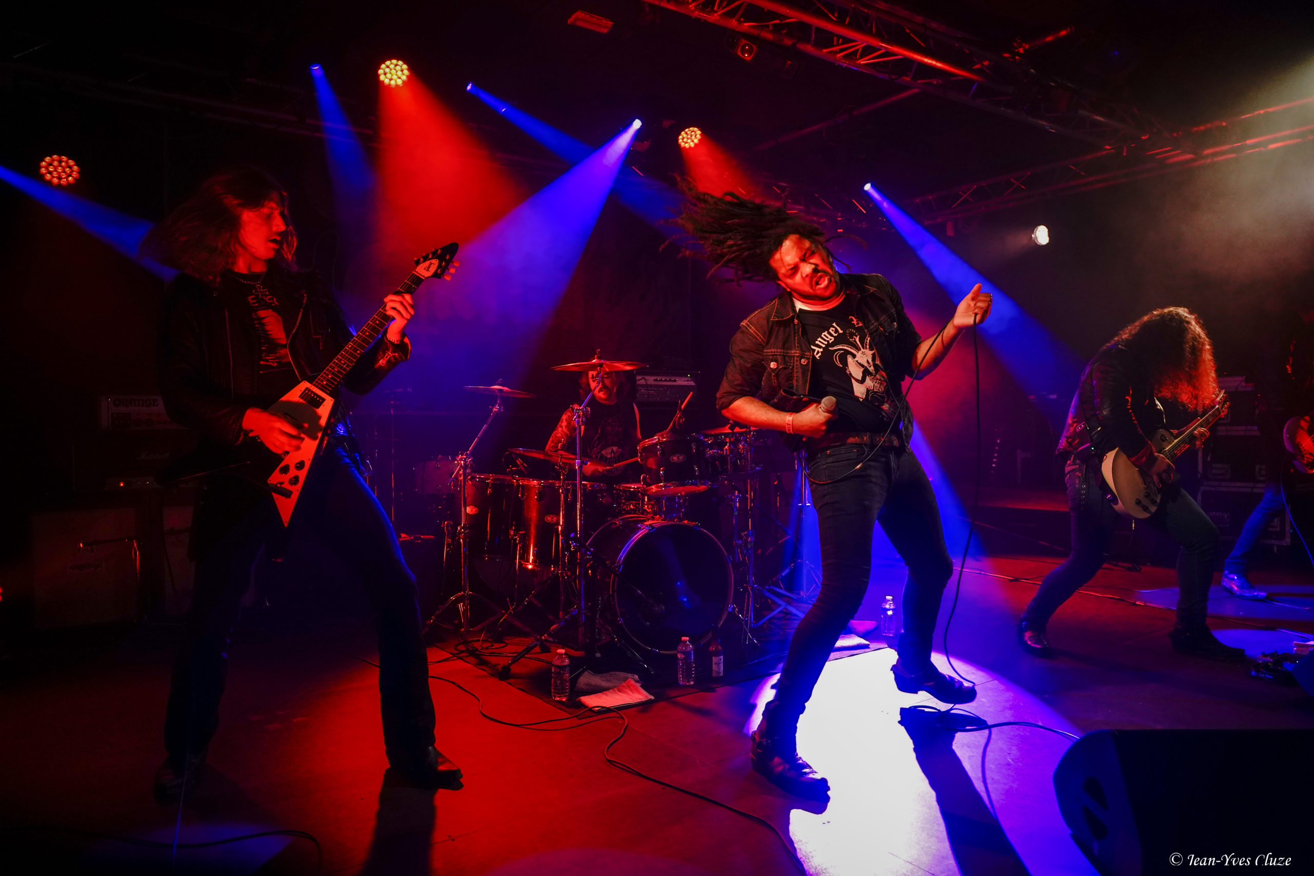 Séduit par le second album de The Night Eternal, Fatale, sorti milieu 2023, nous sommes impatients de voir ce groupe sur scène. Nous découvrons des musiciens pleins de fougue et manifestement contents d’être là, cependant, hélas, leur énergie mal canalisée et autres gesticulations malhabiles et quelque peu en décalage avec la musique donnent à voir un groupe qui, s’il se montre déjà plein de talent au niveau de ses capacités d’écriture et de l’instauration d’ambiances bien senties dans ses compositions, doit encore mûrir pour donner un spectacle live de bon niveau. À revoir dans un an ou deux. Ceci dit, certaines faiblesses peuvent se muer, si ce n’est pas en atouts, du moins en éléments suscitant la sympathie, et une certaine gaucherie peut s’avérer amusante dans le bon sens du terme, ce que démontre parfaitement le récit de la date dijonnaise à laquelle a assisté Ségolène.