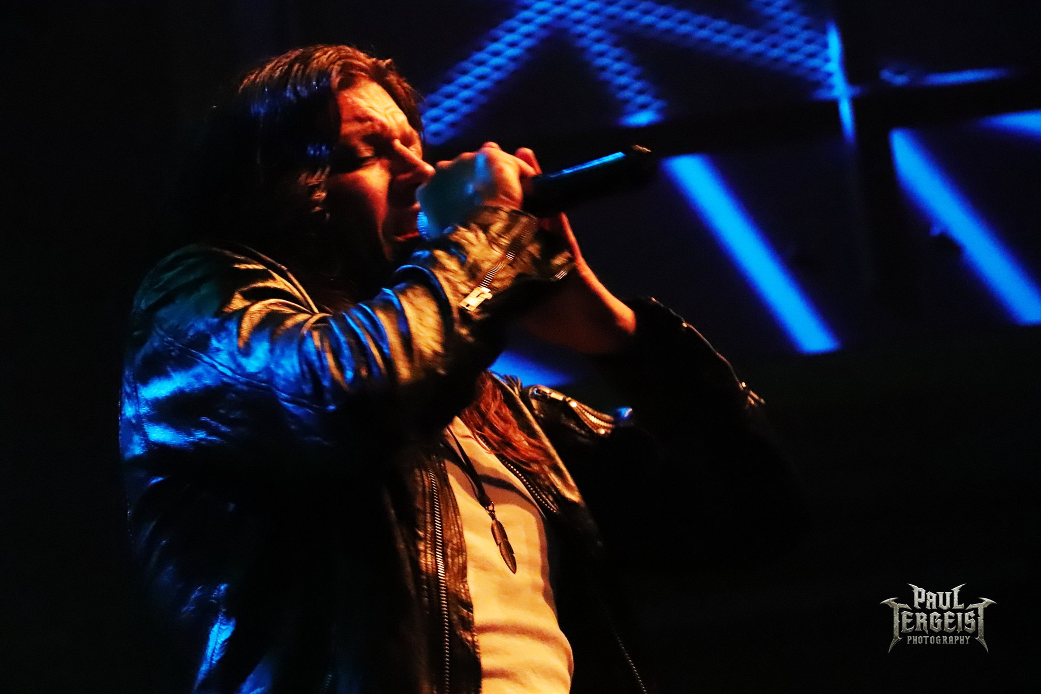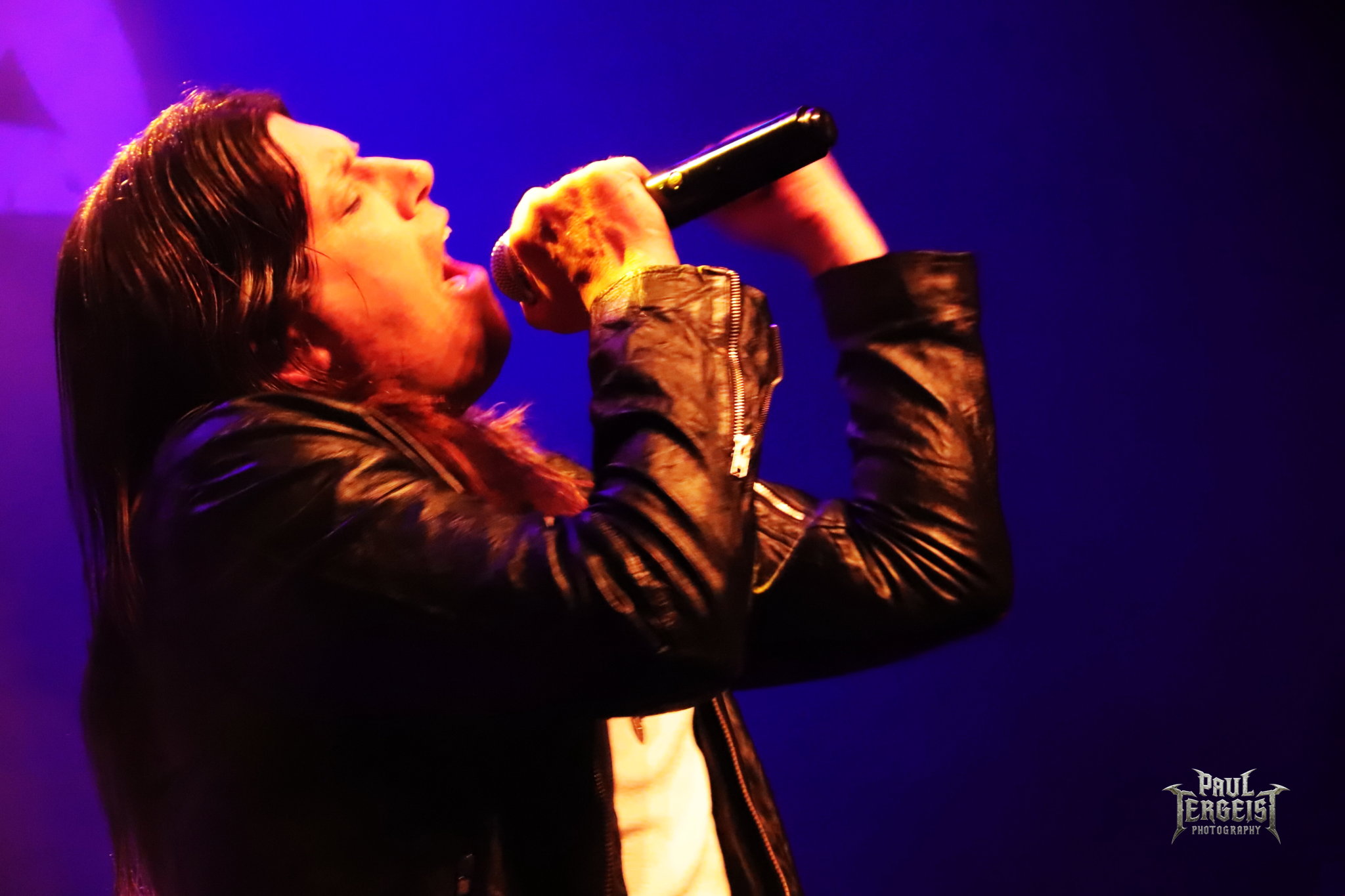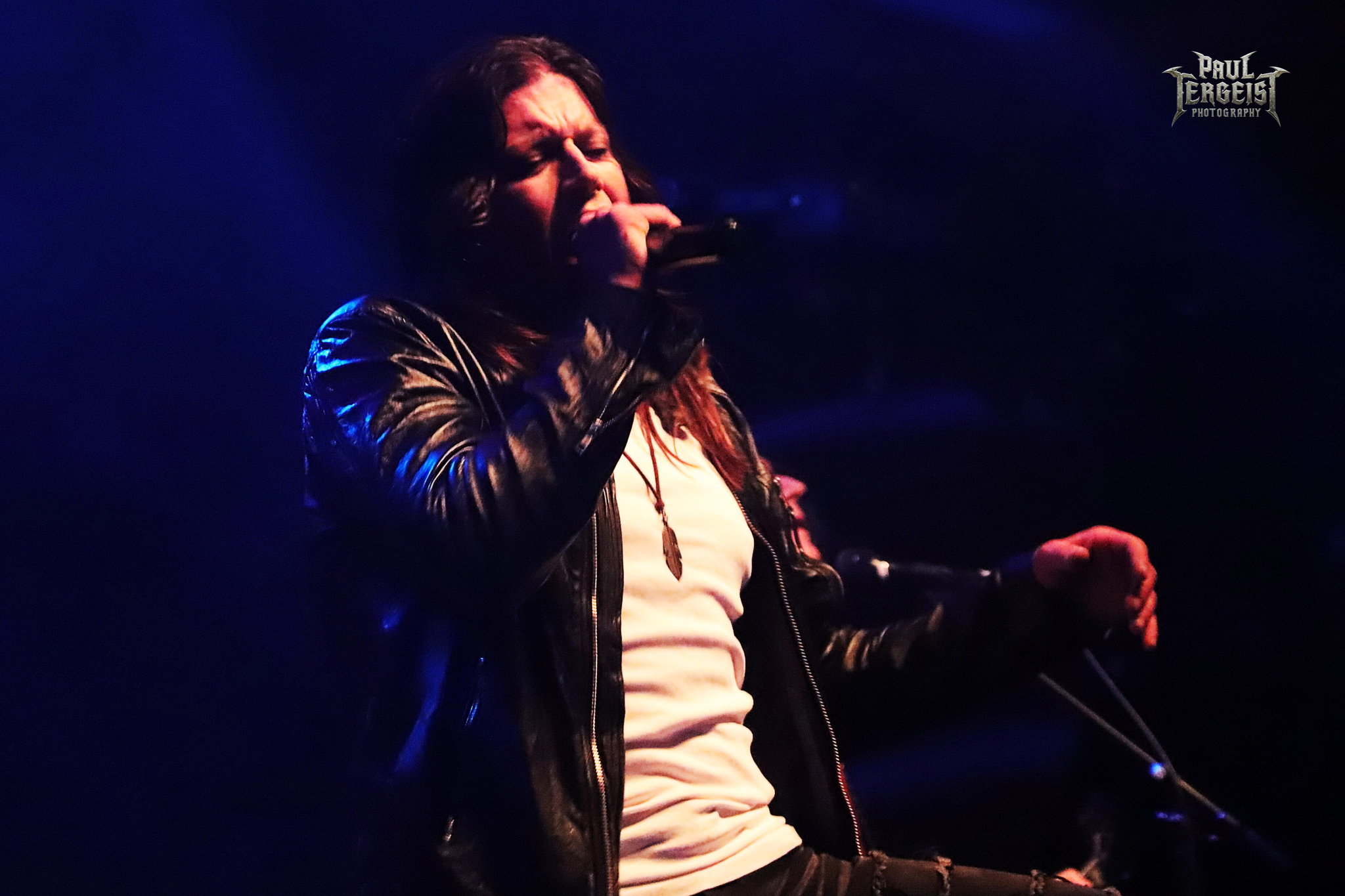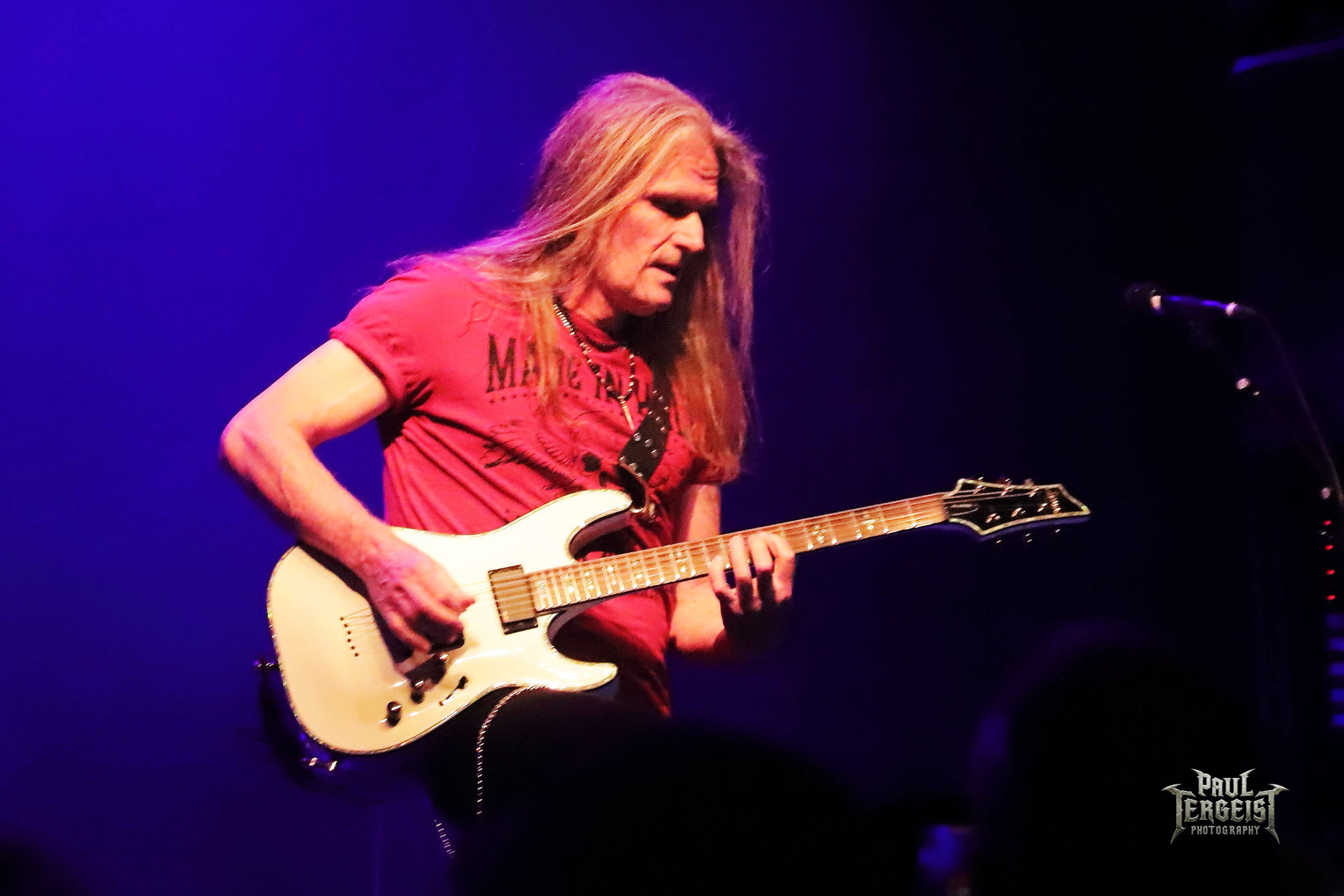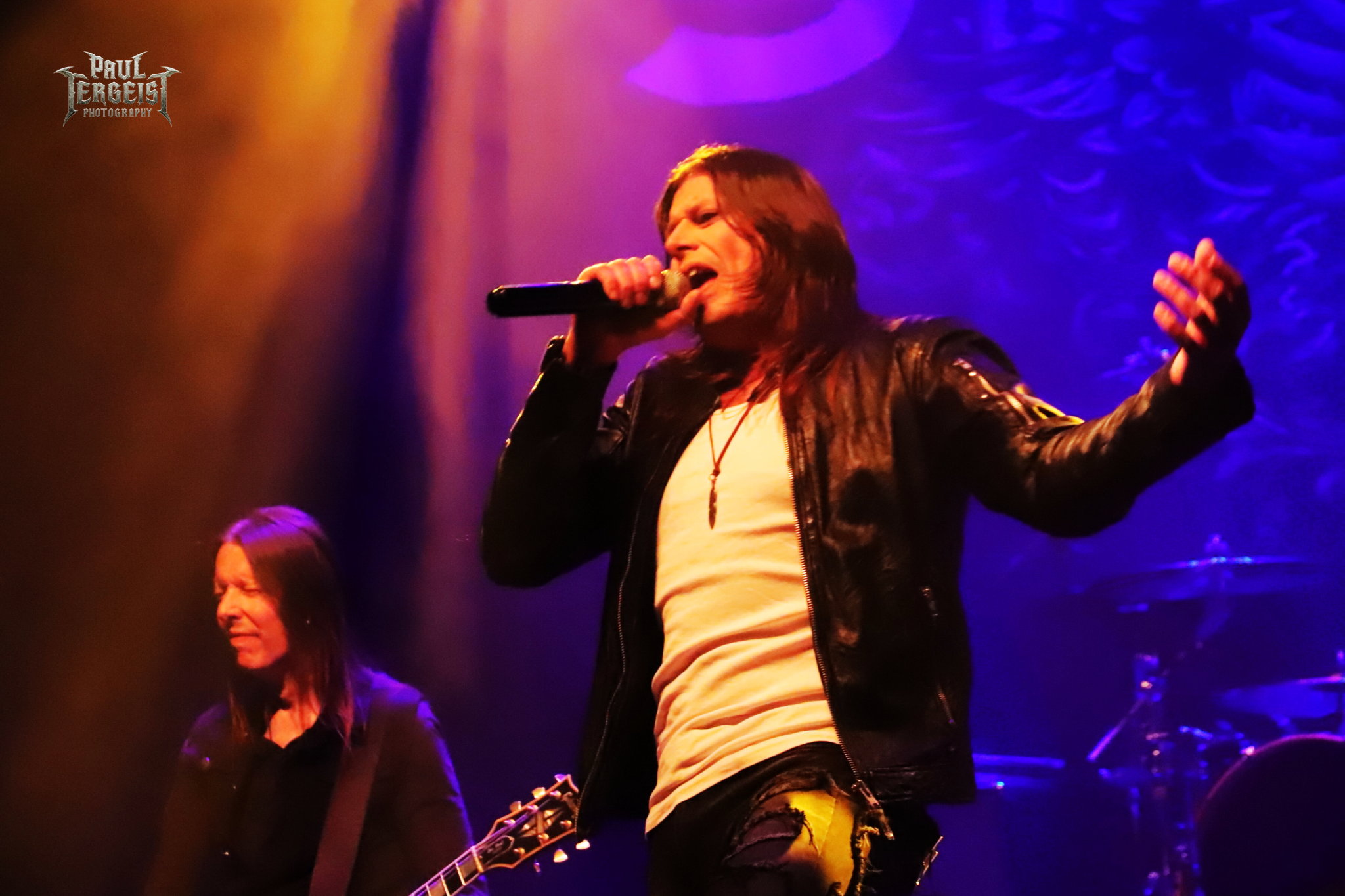 Mark Fox s’adresse au public après le troisième titre, mais chacune de ses interventions se fera en allemand. Certes, nous ne sommes pas loin de la frontière germano-néerlandaise et les spectateurs sont peut-être majoritairement allemands, alors tant pis pour les autres. Mais nous comprendrons quand même — bien que nous le sachions déjà, et le backdrop l’indique aussi —, que le groupe célèbre ses trente ans. Mark annonce le prochain titre et la machine repart de plus belle.