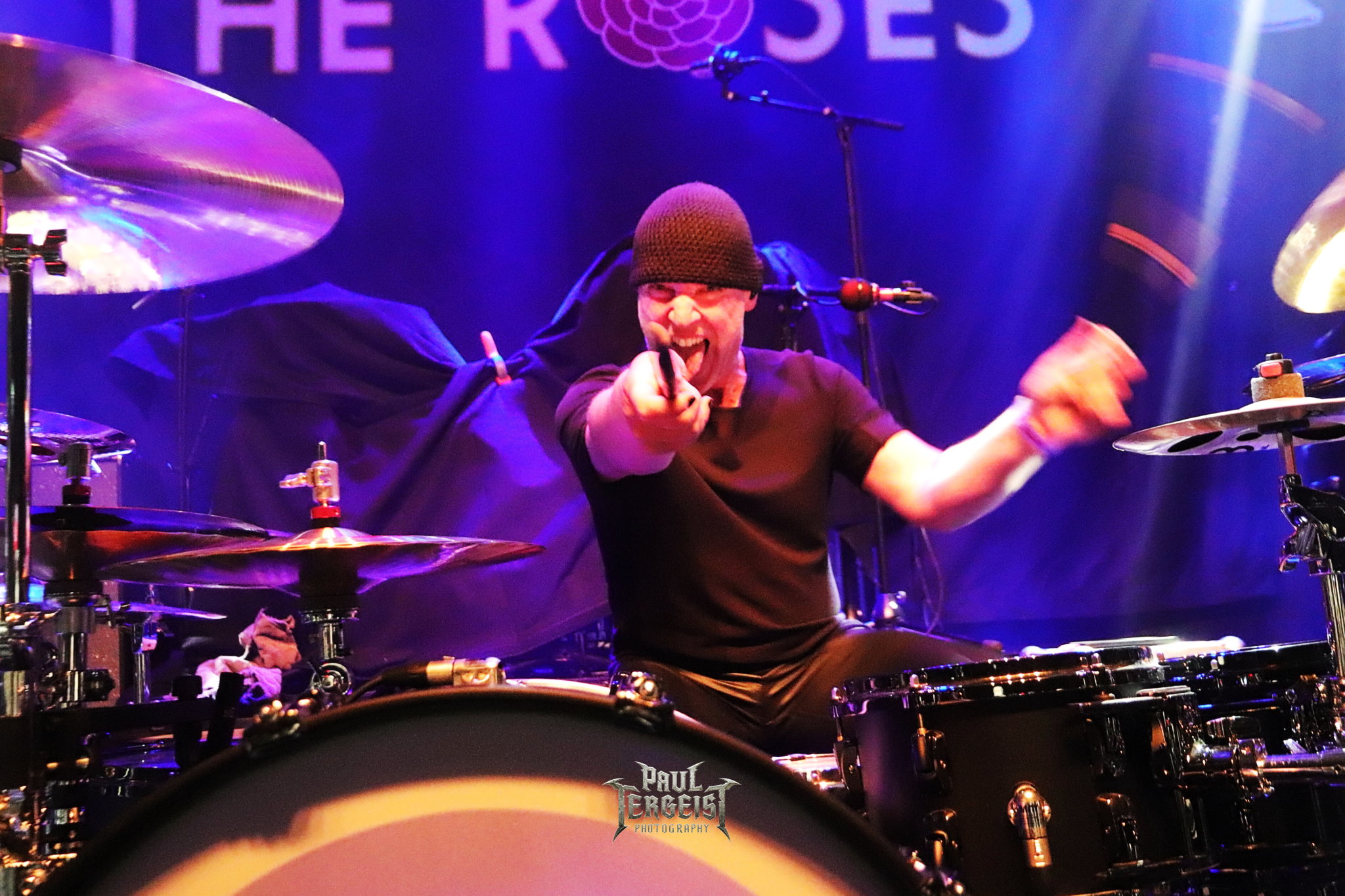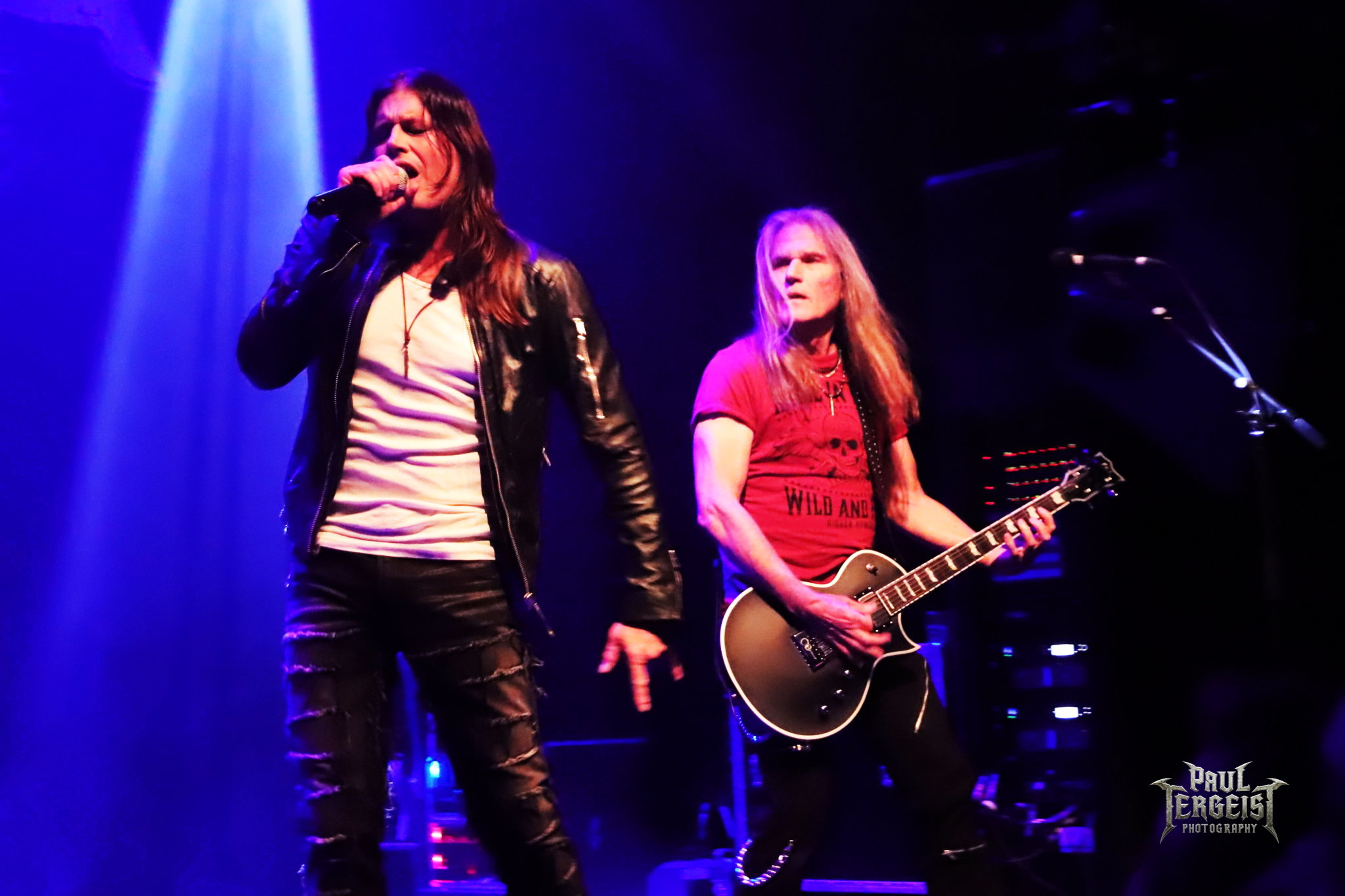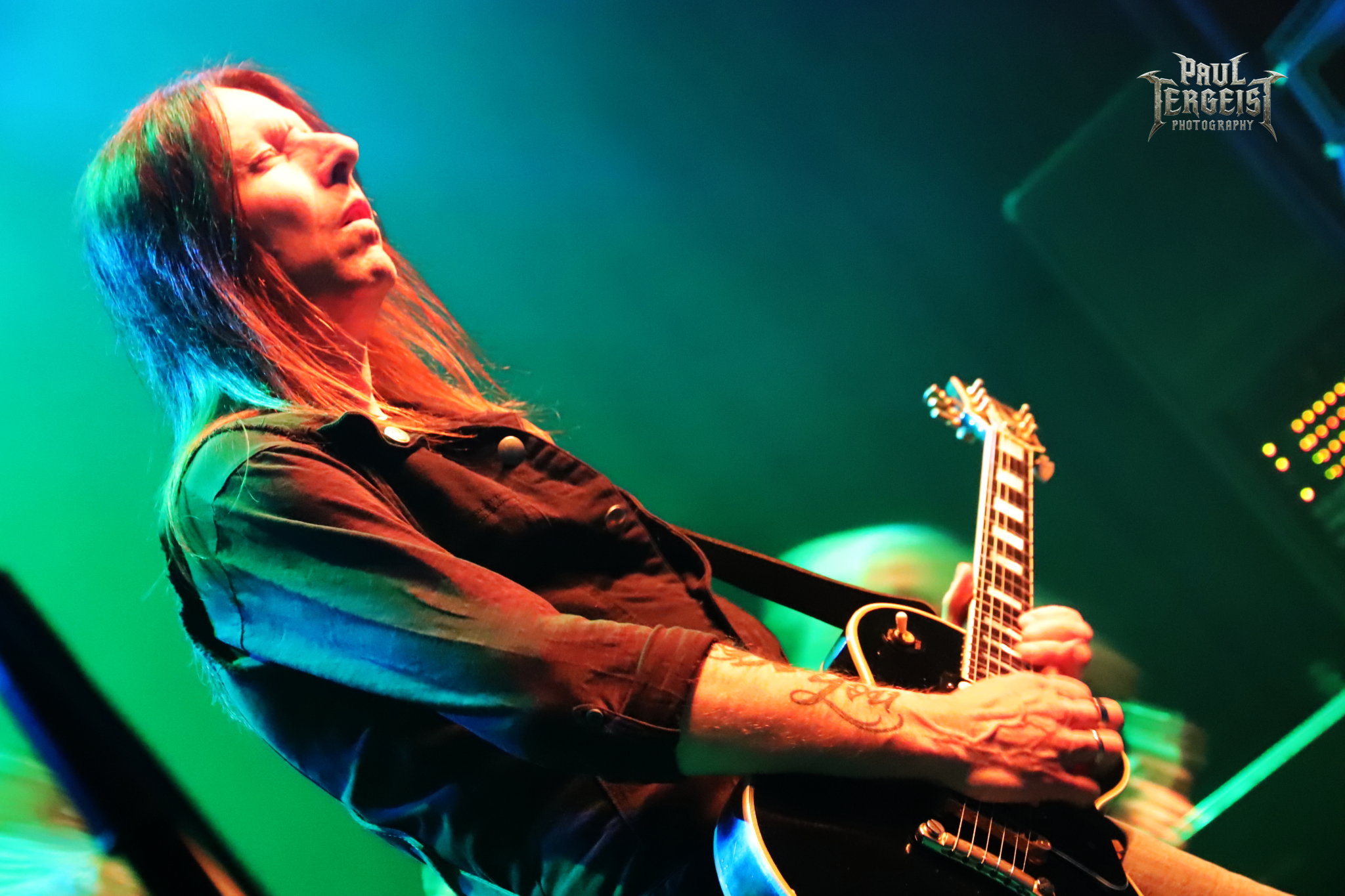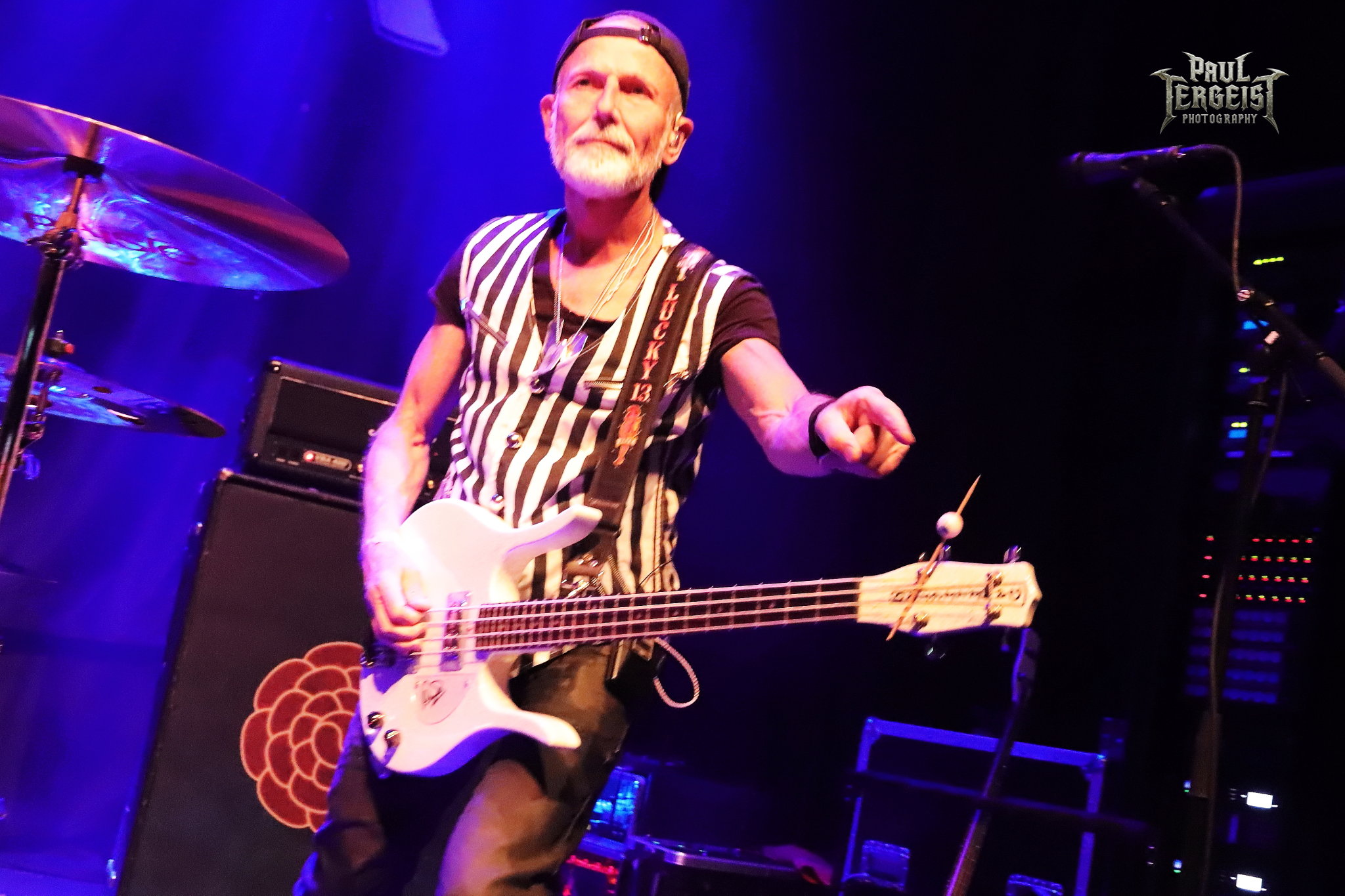 Mark Fox s’adresse au public après le troisième titre, mais chacune de ses interventions se fera en allemand. Certes, nous ne sommes pas loin de la frontière germano-néerlandaise et les spectateurs sont peut-être majoritairement allemands, alors tant pis pour les autres. Mais nous comprendrons quand même — bien que nous le sachions déjà, et le backdrop l’indique aussi —, que le groupe célèbre ses trente ans. Mark annonce le prochain titre et la machine repart de plus belle.