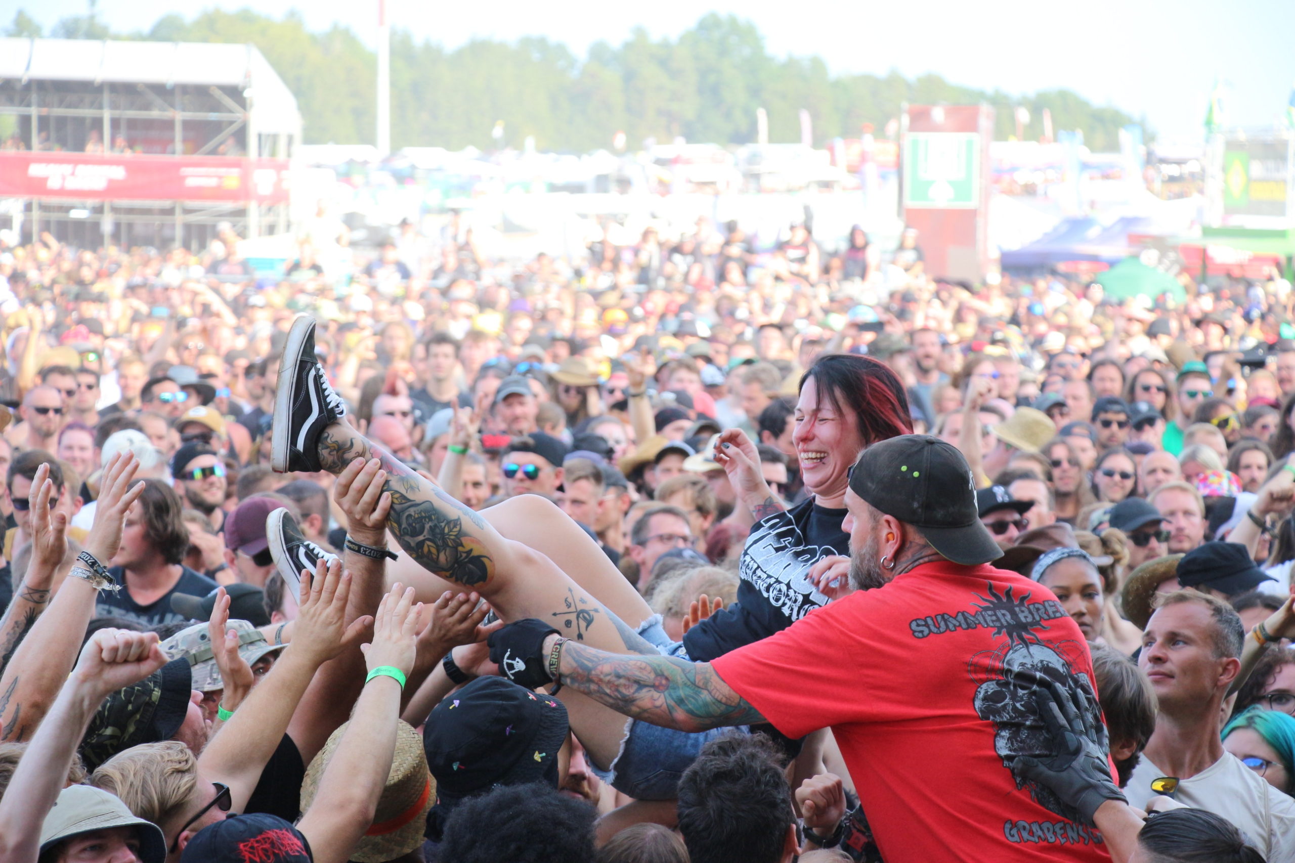 Nous voici au dernier jour du festival qui s’est relativement bien déroulé avec une météo assez clémente, et quoi de mieux que de finir en beauté avec In Flames et Hammerfall.