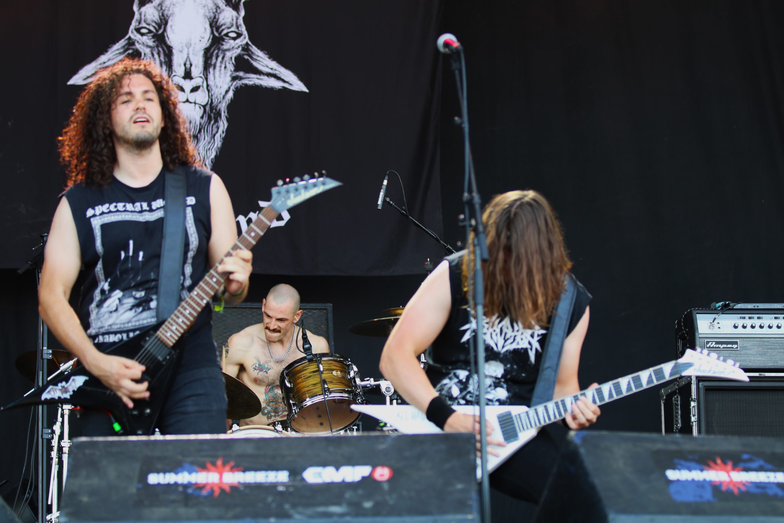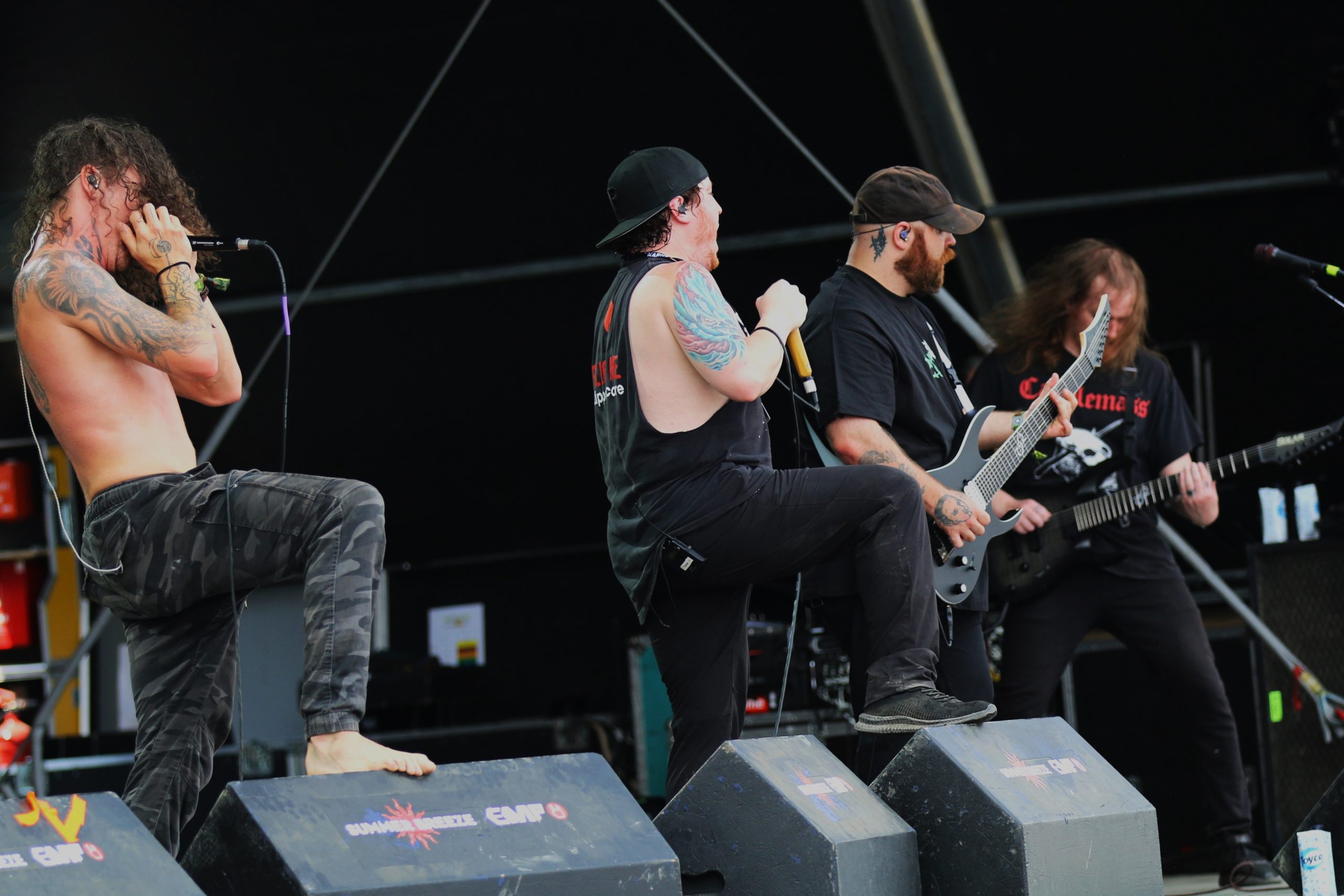 Après avoir pris de quoi manger, je me mis en place à la scène du camping pour le concert de Ancst. Excellent projet solo de blackened metalcore originaire de Berlin et orchestré par le multi-instrumentiste Tom Schmidt, ce set était un de mes plus attendus de tout le festival après la sortie de leur EP Dominion en avril, et qui restera certainement une de mes sorties préférées de l’année. Et bien qu’il manquait malheureusement un batteur sur scène (celui-ci étant réduit à des backing tracks préenregistrées), le groupe n’a pas lésiné, c’était énervé et ultra énergique. Le set fut ouvert avec Kill Your Inner Cop, ce qui donna le ton pour le reste du show. Pour vous représenter ce à quoi ressemble la musique de Ancst, imaginez des riffs de melodeath suédois, une voix de black metal ainsi que des breakdowns de hardcore, le tout mélangé dans une marmite de crust/grind. Bien que le moshpit soit un peu endormi ce jour-là, le public a quand même pu se défouler sur Dominion et Moloch, qui sont certains de mes morceaux préférés du groupe. Le groupe porte également un message politique très fort et Tom Schmidt pris plusieurs fois la parole entre les chansons pour faire un petit discours, ce qui enjoua encore plus le public du Summer Breeze.