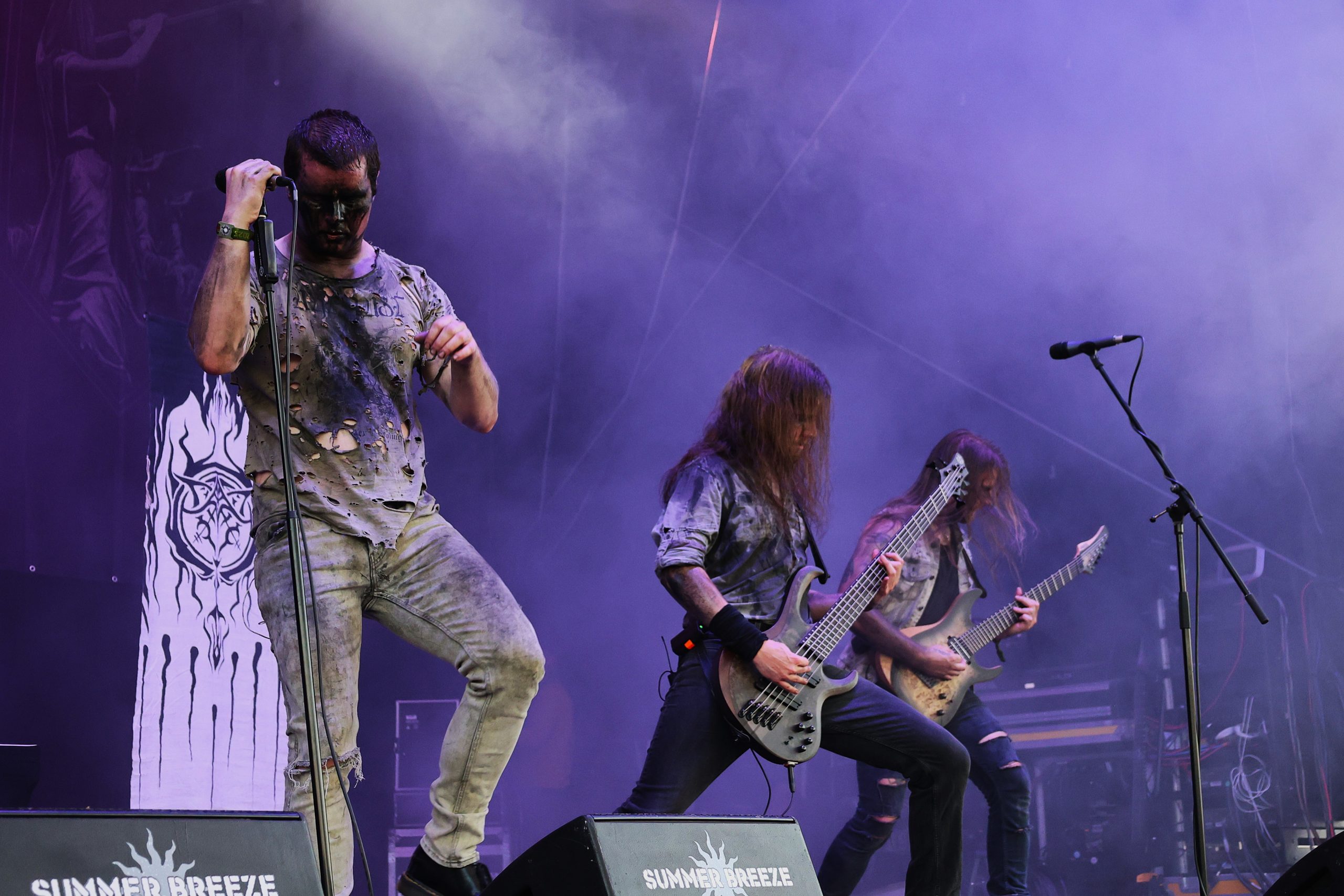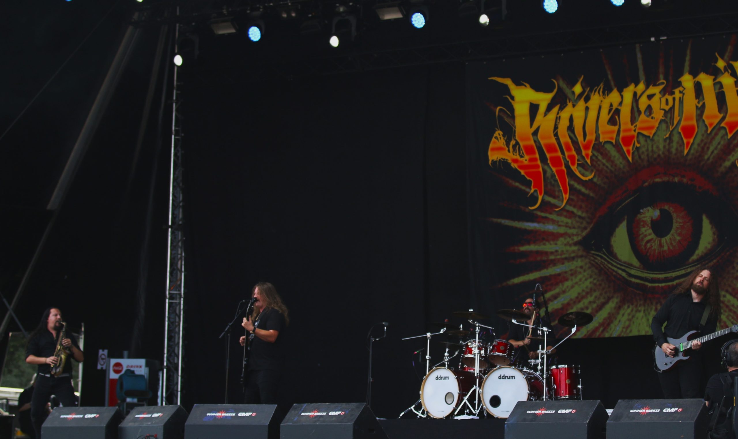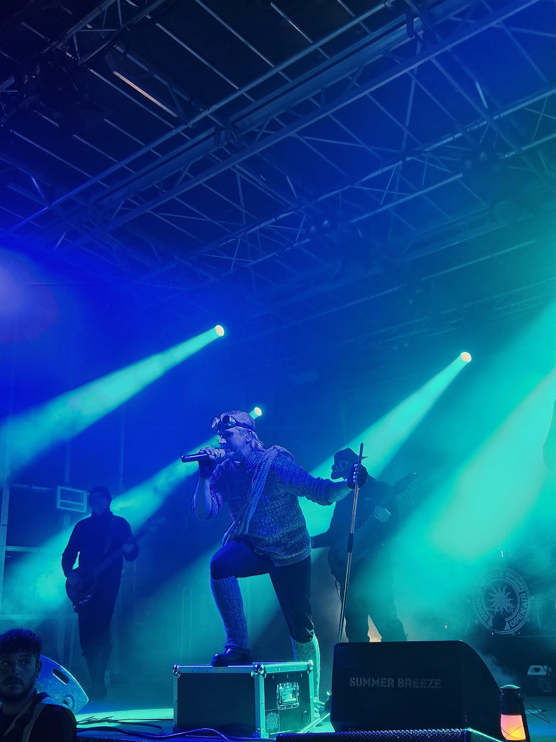 Sur la T-Stage, les américains de Rivers of Nihil nous proposèrent un set vraiment envoûtant, profitant de l’occasion pour jouer de nombreux morceaux de leur dernier album, tels qu’American Death, Dustman, Water & Time ou encore House of Light et son incroyable refrain. Durant celui-ci, les voix claires du guitariste Andy Thomas et du batteur Jared Klein se joignent en chœur dans une harmonie rare. L’autre particularité, c’est que sur certains titres, le groupe est accompagné par le saxophoniste Patrick Corona. Ce savant mélange de refrains catchy, de saxophone et d’instrus progressives donna une dimension ultra planante à ce show. Je les avais déjà vus en 2023 et n’avait pas été totalement conquis, mais leur passage au Summer Breeze 2025 m’a assurément fait changer d’avis.