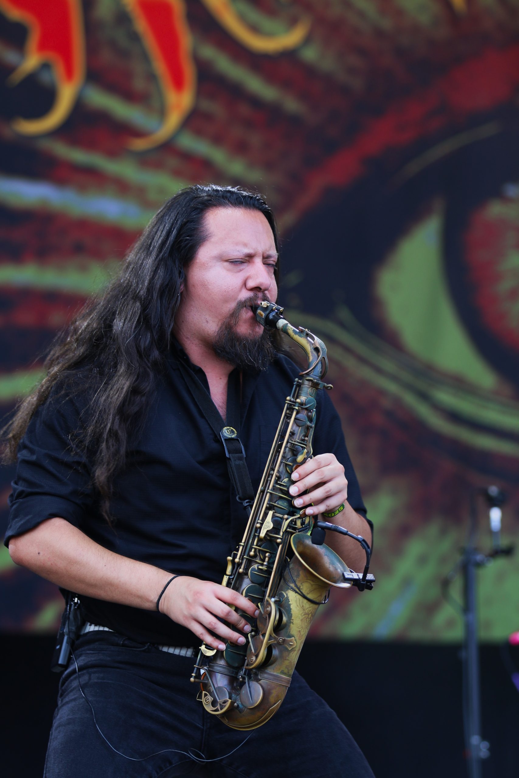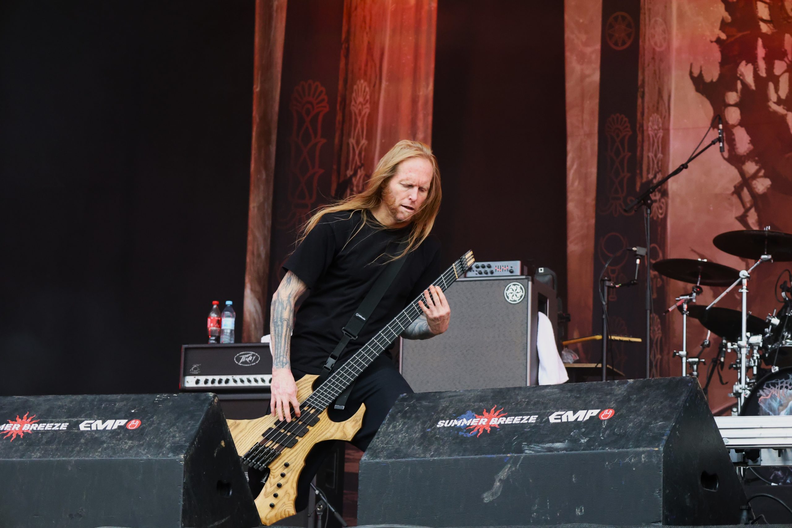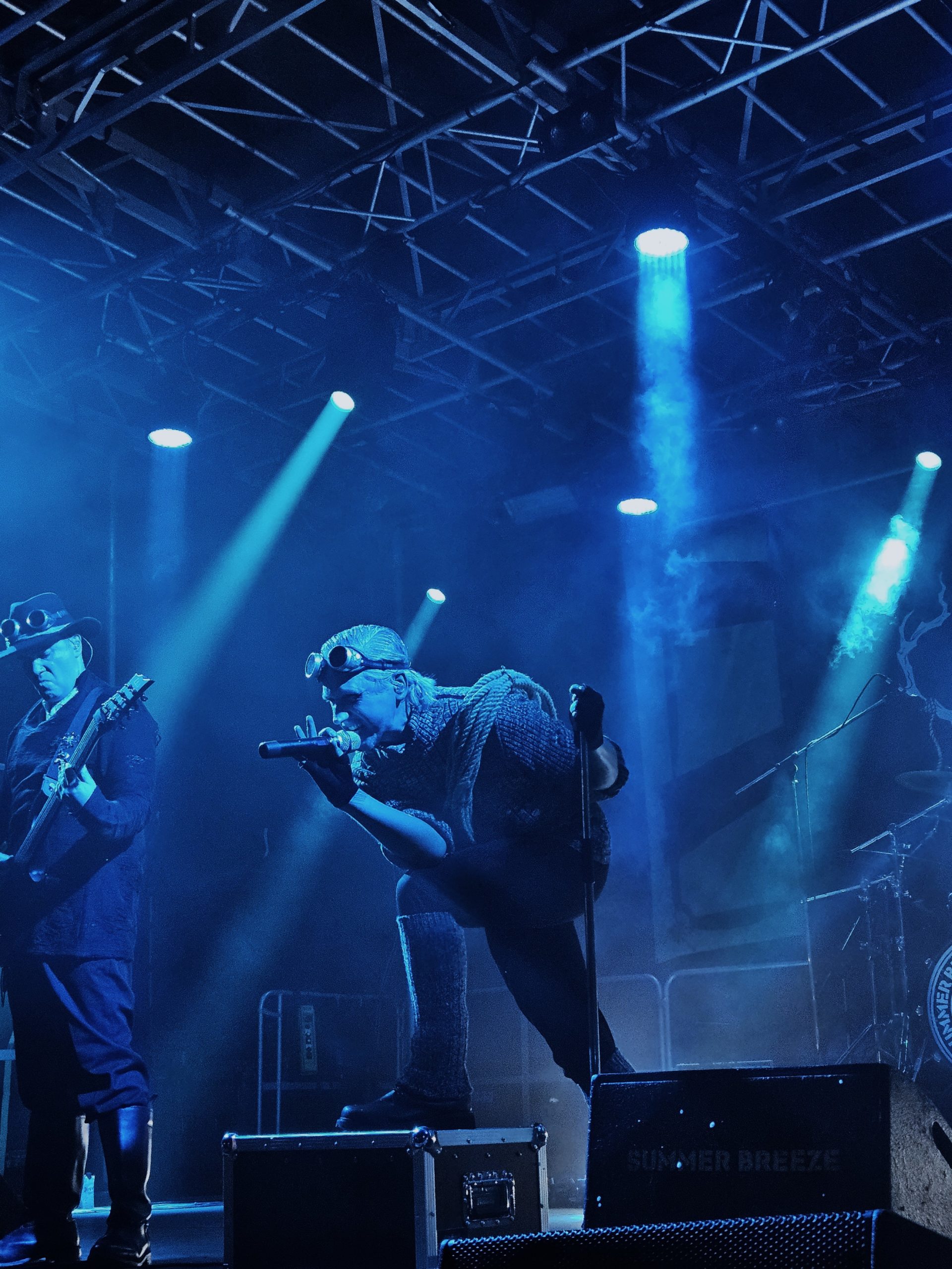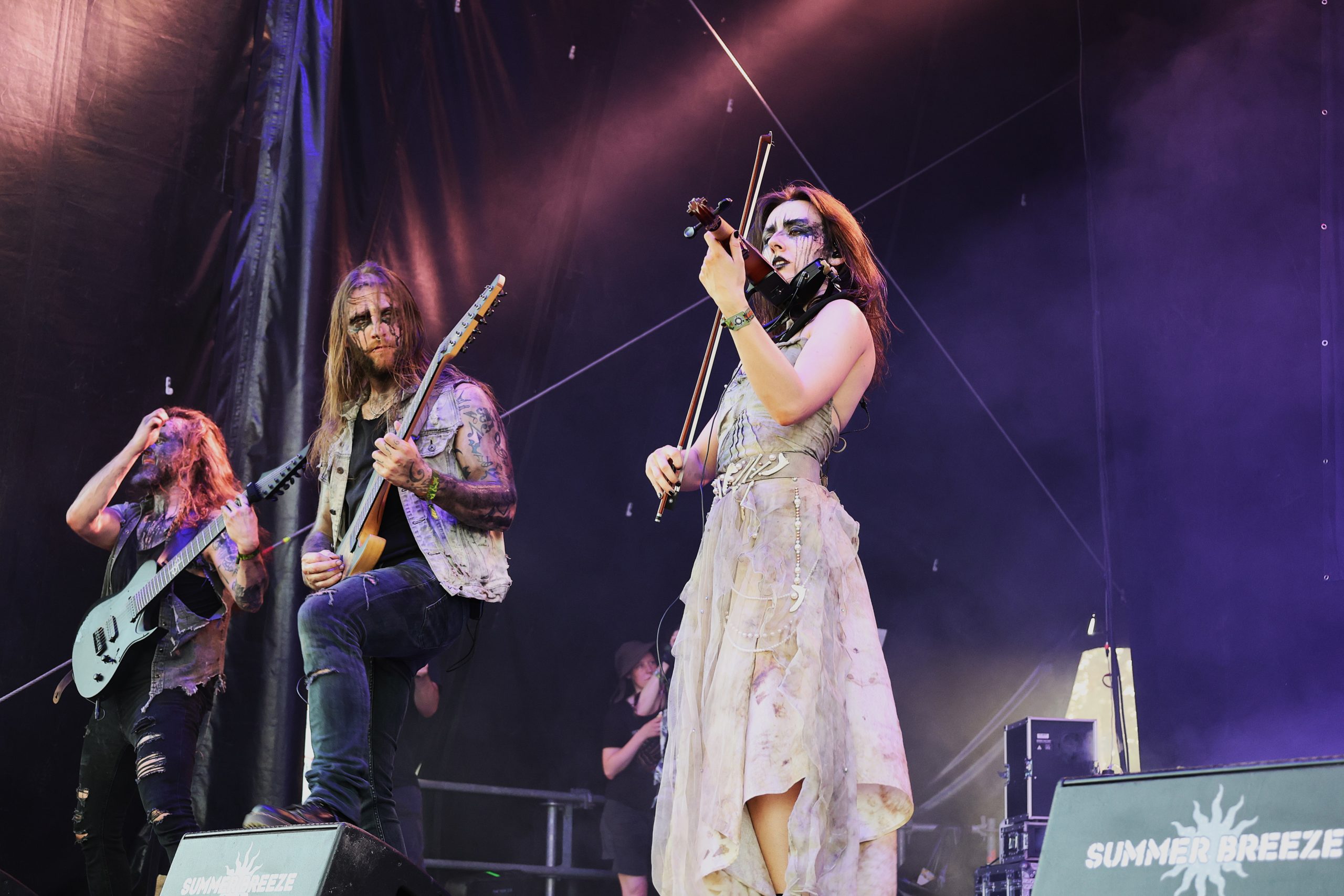 Sur la T-Stage, les américains de Rivers of Nihil nous proposèrent un set vraiment envoûtant, profitant de l’occasion pour jouer de nombreux morceaux de leur dernier album, tels qu’American Death, Dustman, Water & Time ou encore House of Light et son incroyable refrain. Durant celui-ci, les voix claires du guitariste Andy Thomas et du batteur Jared Klein se joignent en chœur dans une harmonie rare. L’autre particularité, c’est que sur certains titres, le groupe est accompagné par le saxophoniste Patrick Corona. Ce savant mélange de refrains catchy, de saxophone et d’instrus progressives donna une dimension ultra planante à ce show. Je les avais déjà vus en 2023 et n’avait pas été totalement conquis, mais leur passage au Summer Breeze 2025 m’a assurément fait changer d’avis.