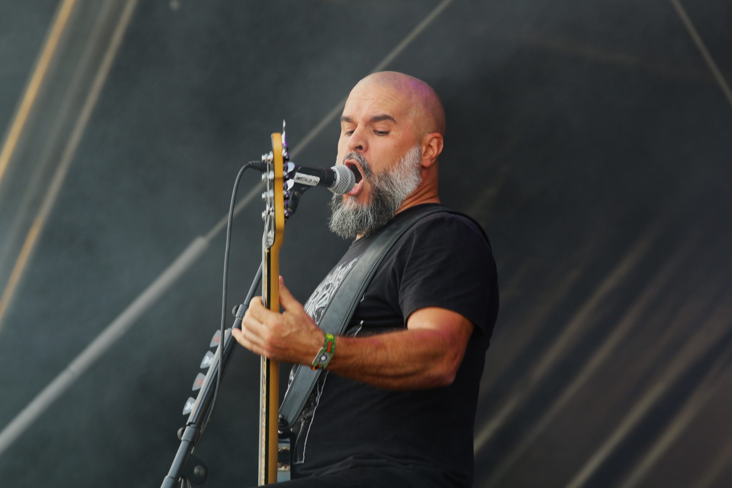 Retour à la violence pure avec Hideous Divinity, les maîtres italiens du brutal/tech death. Les circle pits, que le chanteur demandait incessamment au public, remplirent l’air de la Wera Tool Rebel Stage d’une poussière qui se dissipait difficilement (la scène étant couverte d’une tente). Le jeu du batteur, rapide et précis, est particulièrement remarquable sur des morceaux tels que Chestburst (d’ailleurs inspiré par le film Alien) et The Numinous One. Durant le dernier morceau du set, Mysterium Tremendum, le chanteur, complètement déjanté, se rendit dans le public et finit le concert au milieu au milieu d’un géant circle pit.