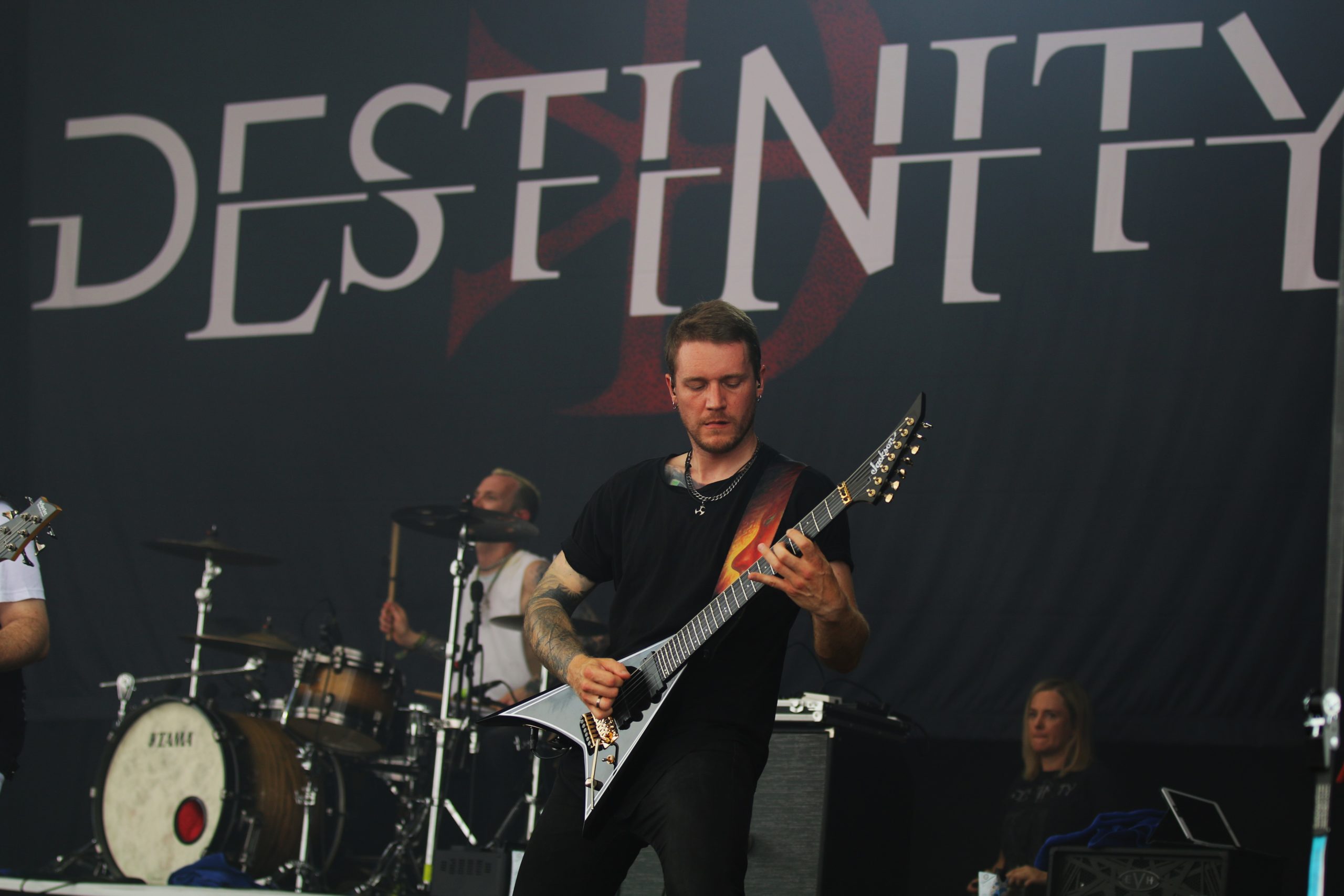 Ensuite, on fit un petit aller-retour dans la zone du festival (la Campsite Circus Stage se trouvant au milieu du camping) pour choper quelque chose à manger et voir un bout du set de Destinity, des Français qui proposent du très bon melodeath. Ayant sorti tout récemment leur dernier opus Ascension, le groupe profita pour jouer de nouveaux morceaux comme Final Fiction et le titre éponyme de l’album. Je tiens également à faire remarquer leurs riffs, mélodiques mais brutaux à la fois, exécutés en live avec une précision de maître.