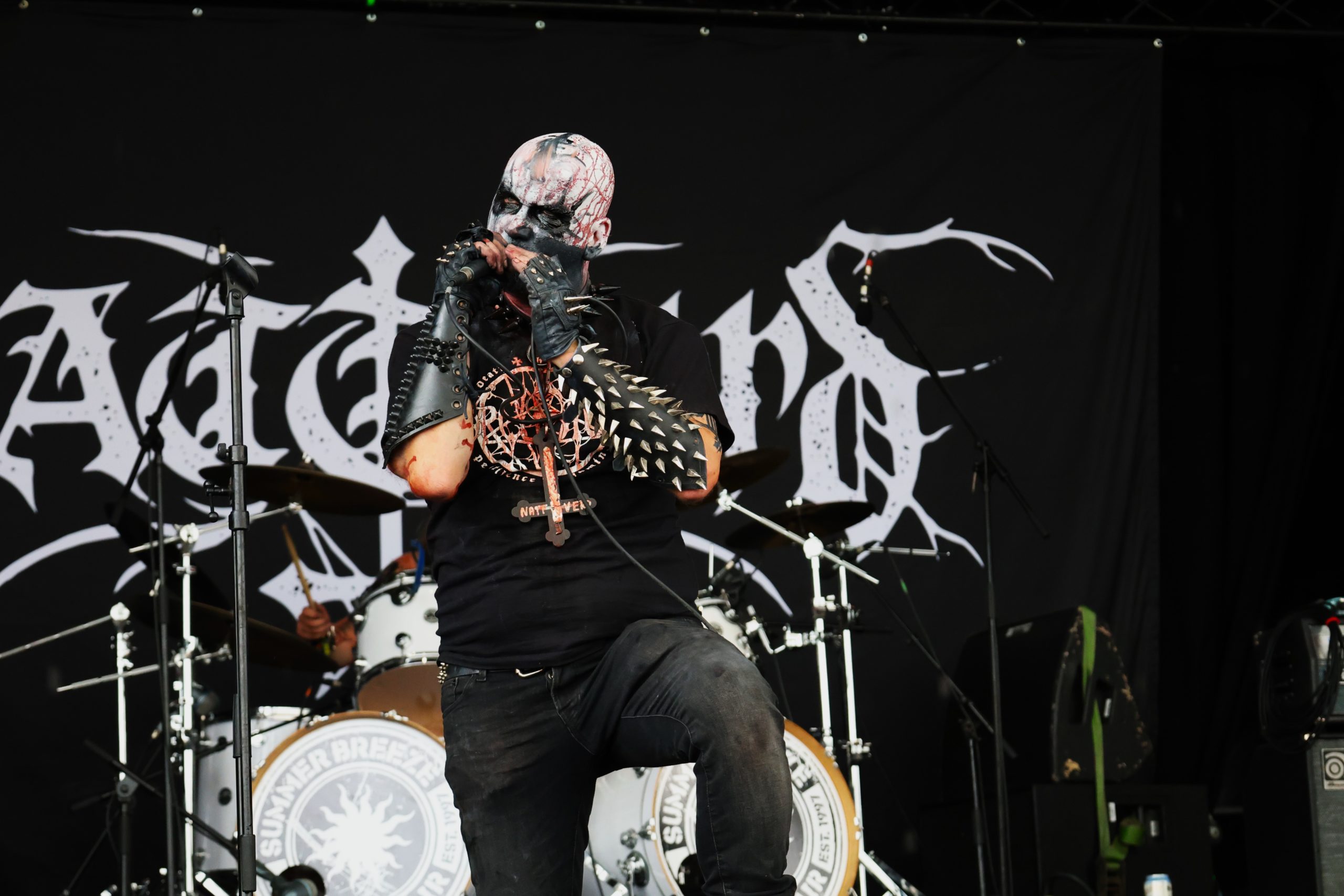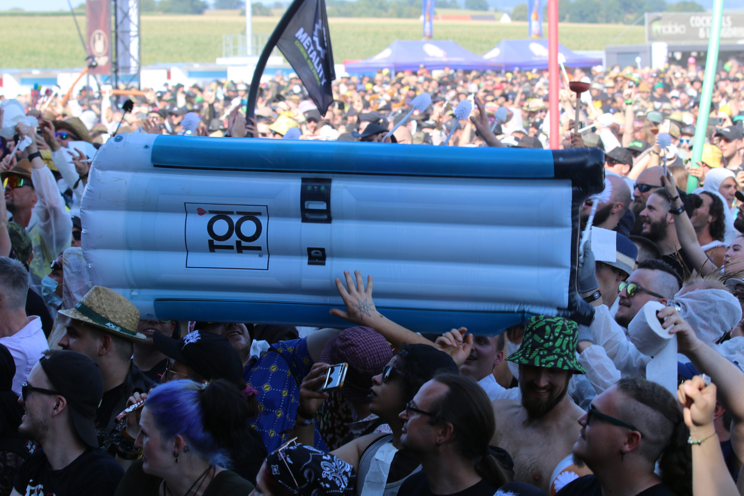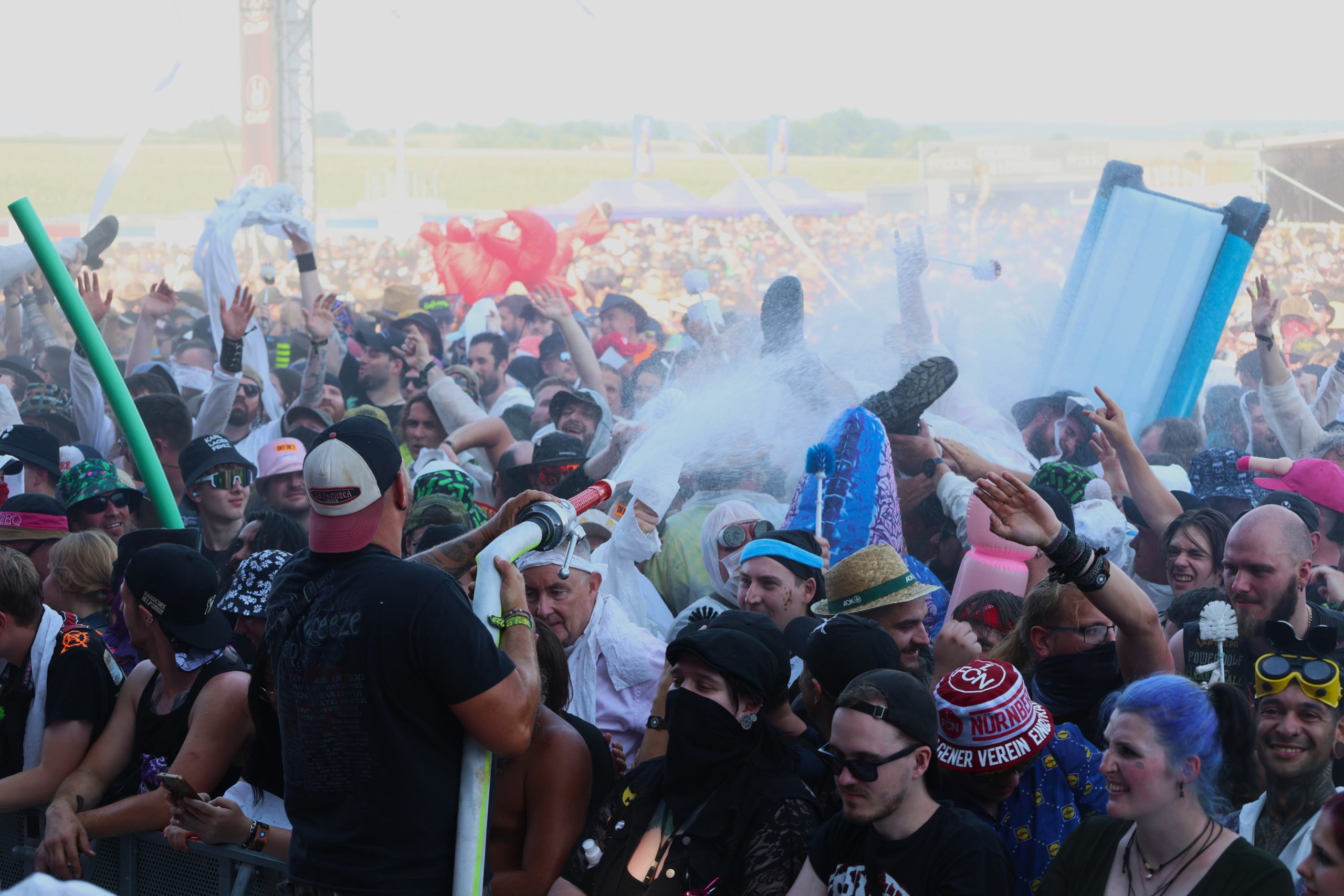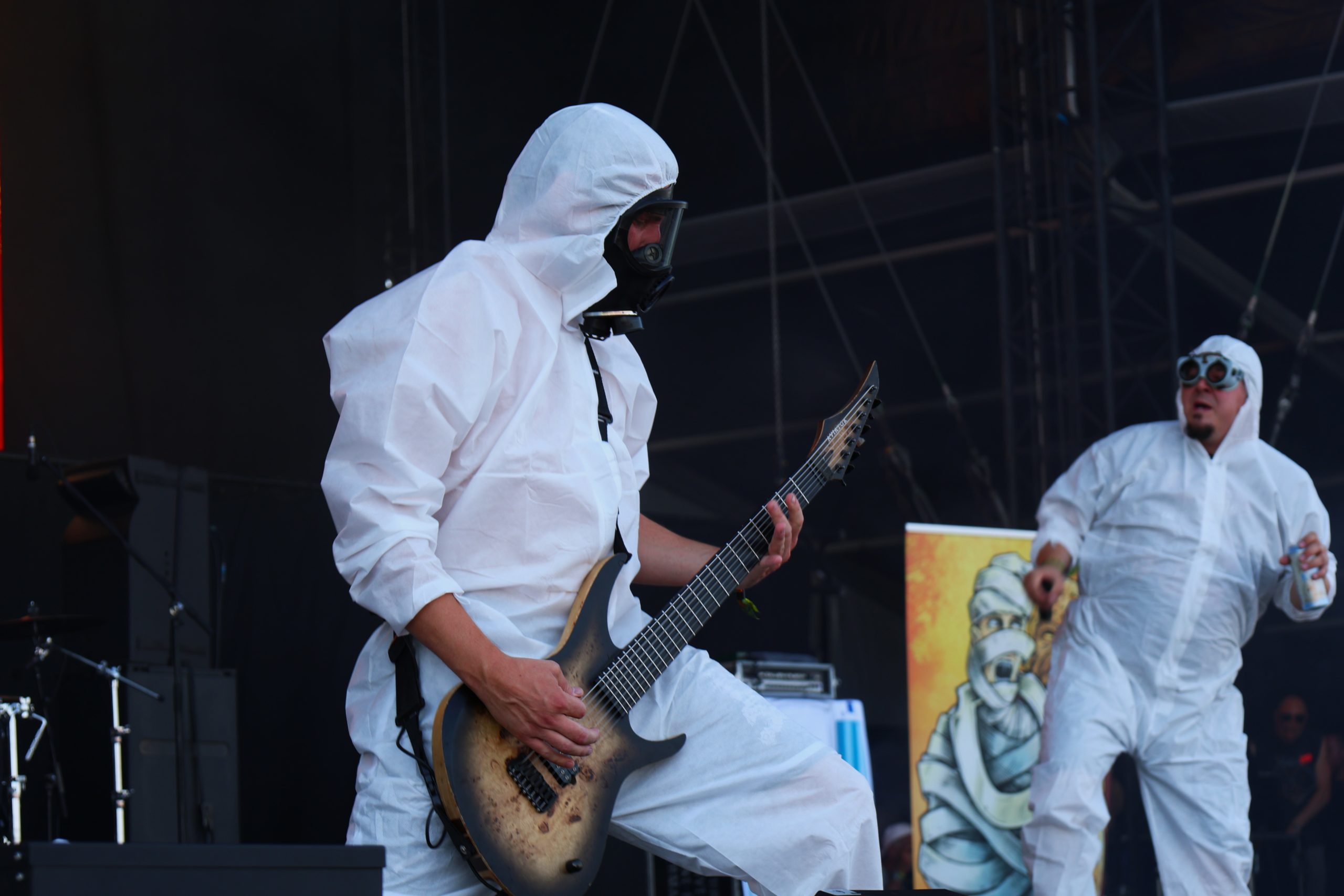 Nous sommes arrivés au camping du festival le mercredi matin. Le temps d’installer le campement, de manger quelque chose et de se reposer un petit peu, le premier concert du festival n’allait pas tarder à commencer. Et honnêtement, j’aurais adoré écrire un paragraphe émouvant sur ce premier concert, racontant la nostalgie et l’excitation qui se mêle en moi, la joie d’être de retour à ce si beau festival, mais je ne pourrai pas : parce que le premier concert, c’était Gutalax. Mais existe-t-il une meilleure manière d’ouvrir un festival de 4 jours qu’avec Gutalax, le groupe de goregrind tchèque dont l’inspiration lyrique se résume aux matières fécales ? Je ne crois pas, mais qu’est-ce que c’était incroyable ! Bien qu’à 16 h de l’après-midi, il fasse déjà une chaleur d’enfer (quasiment 35 degrés), cela n’a pas empêché le public allemand de s’amasser à la Main Stage pour admirer ce premier groupe. Les fans scandaient le nom « GUTALAX » au moins trente minutes avant le début du show. Le moshpit fut déjà extrêmement animé, rythmé par la voix grenouillesque du chanteur, Martin Matoušek. Les fans, dont la majorité sont déguisés comme le groupe, ont apporté avec eux des cargaisons de papier toilette et de brosses WC qu’ils lancent dans le public (ou sur la scène), ou brandissent fièrement. Je crois n’avoir jamais expérimenté un tel champ de bataille de ma vie, je dédie donc une petite pensée à l’équipe de nettoyage du festival. Je crois que ça a été le groupe le plus débile que j’aie jamais vu de ma vie et c’était fabuleux.