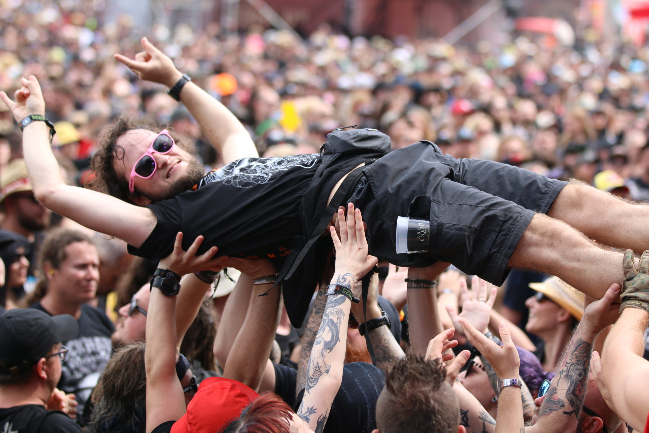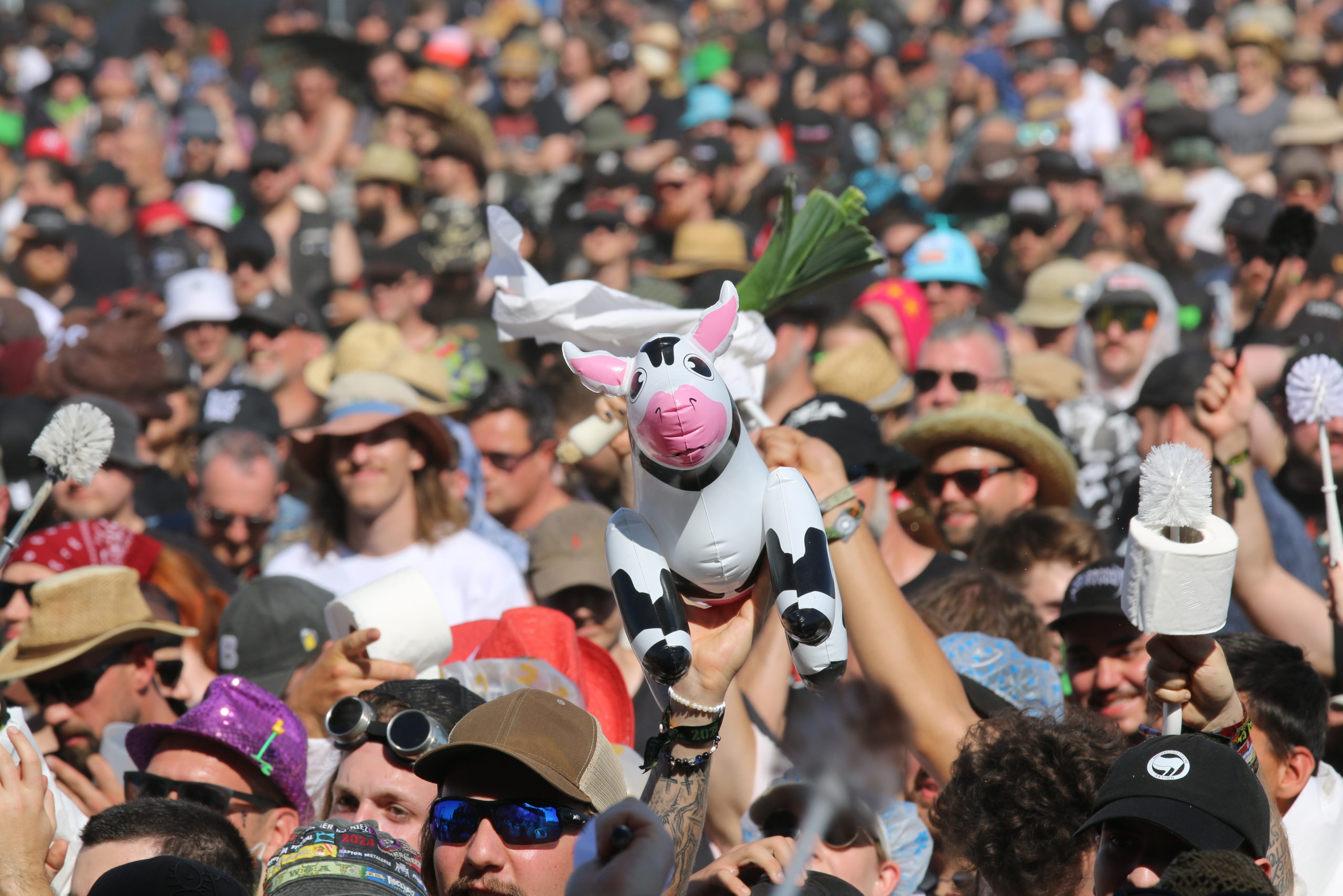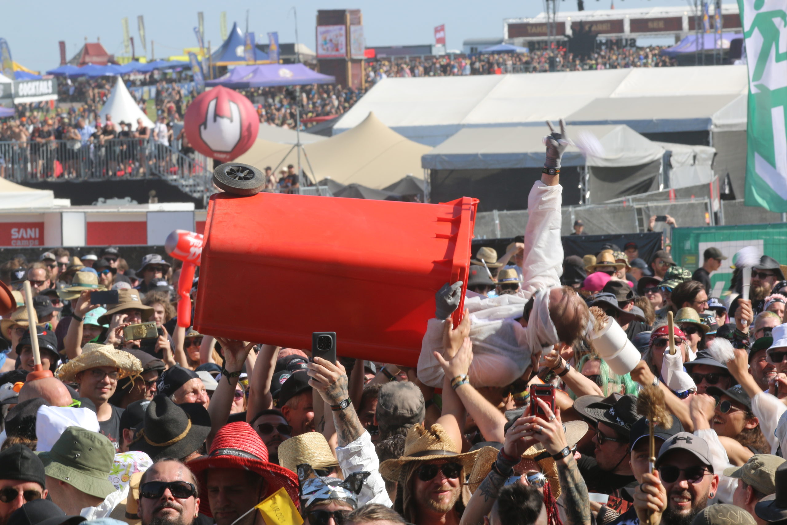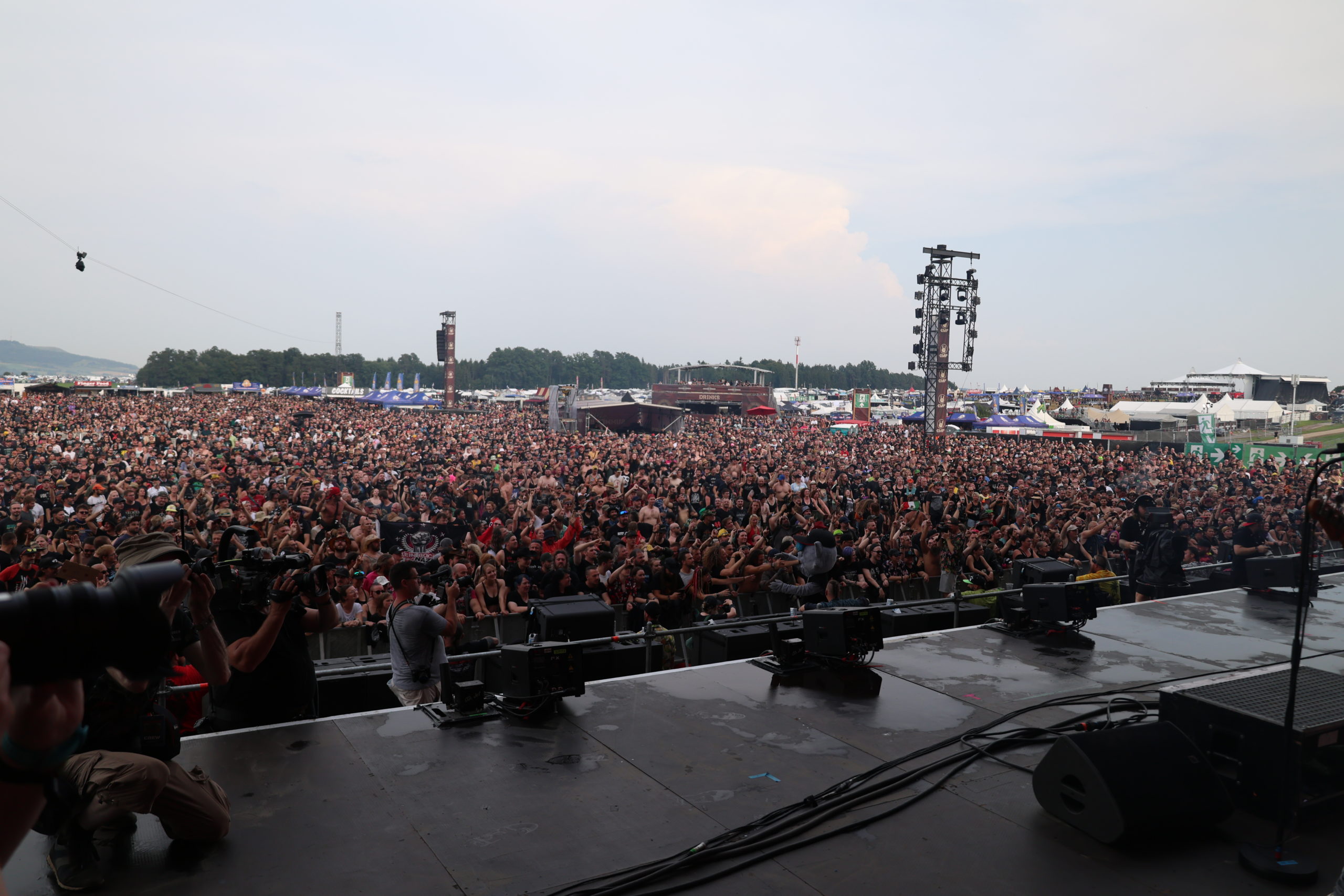 Nous sommes arrivés au camping du festival le mercredi matin. Le temps d’installer le campement, de manger quelque chose et de se reposer un petit peu, le premier concert du festival n’allait pas tarder à commencer. Et honnêtement, j’aurais adoré écrire un paragraphe émouvant sur ce premier concert, racontant la nostalgie et l’excitation qui se mêle en moi, la joie d’être de retour à ce si beau festival, mais je ne pourrai pas : parce que le premier concert, c’était Gutalax. Mais existe-t-il une meilleure manière d’ouvrir un festival de 4 jours qu’avec Gutalax, le groupe de goregrind tchèque dont l’inspiration lyrique se résume aux matières fécales ? Je ne crois pas, mais qu’est-ce que c’était incroyable ! Bien qu’à 16 h de l’après-midi, il fasse déjà une chaleur d’enfer (quasiment 35 degrés), cela n’a pas empêché le public allemand de s’amasser à la Main Stage pour admirer ce premier groupe. Les fans scandaient le nom « GUTALAX » au moins trente minutes avant le début du show. Le moshpit fut déjà extrêmement animé, rythmé par la voix grenouillesque du chanteur, Martin Matoušek. Les fans, dont la majorité sont déguisés comme le groupe, ont apporté avec eux des cargaisons de papier toilette et de brosses WC qu’ils lancent dans le public (ou sur la scène), ou brandissent fièrement. Je crois n’avoir jamais expérimenté un tel champ de bataille de ma vie, je dédie donc une petite pensée à l’équipe de nettoyage du festival. Je crois que ça a été le groupe le plus débile que j’aie jamais vu de ma vie et c’était fabuleux.