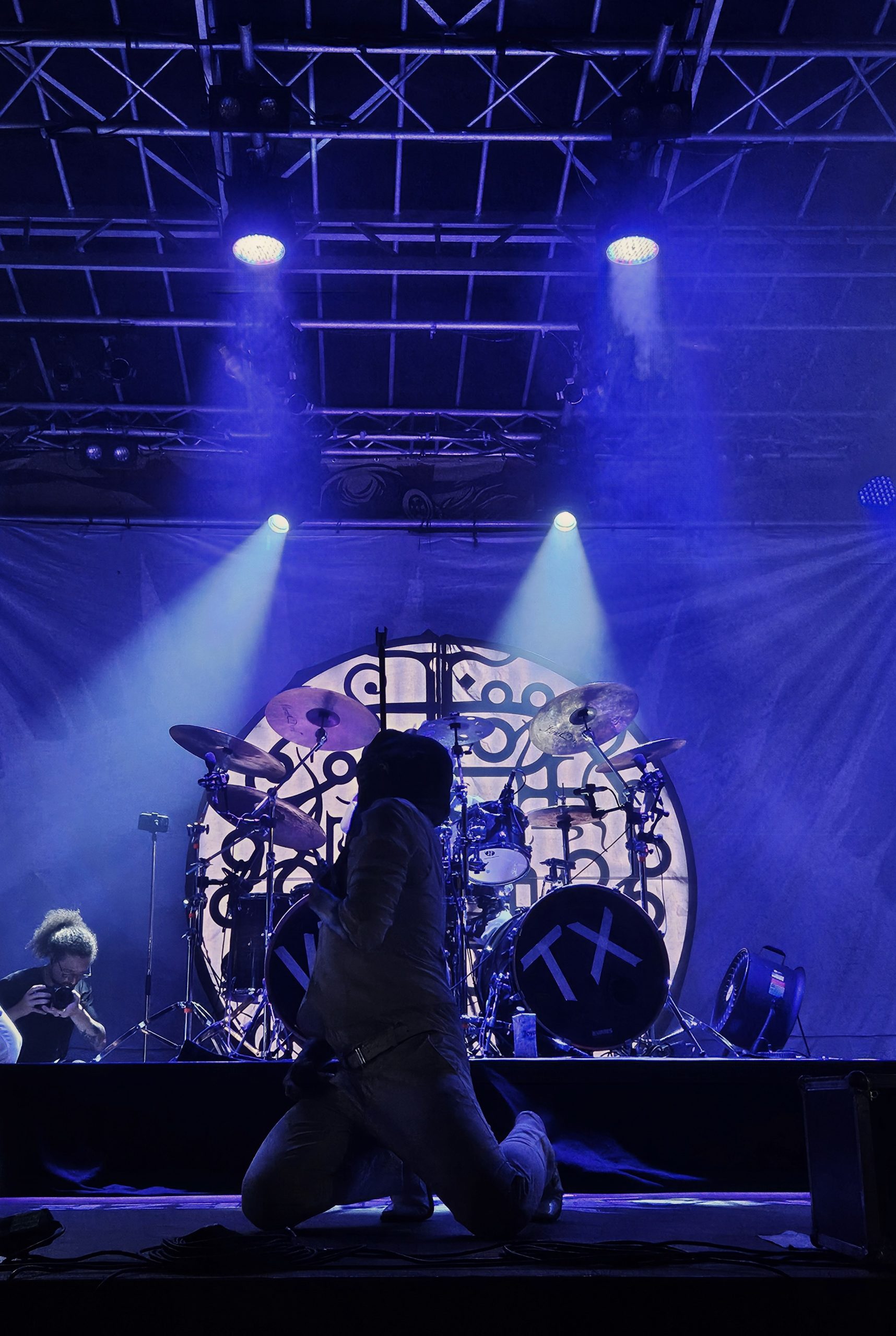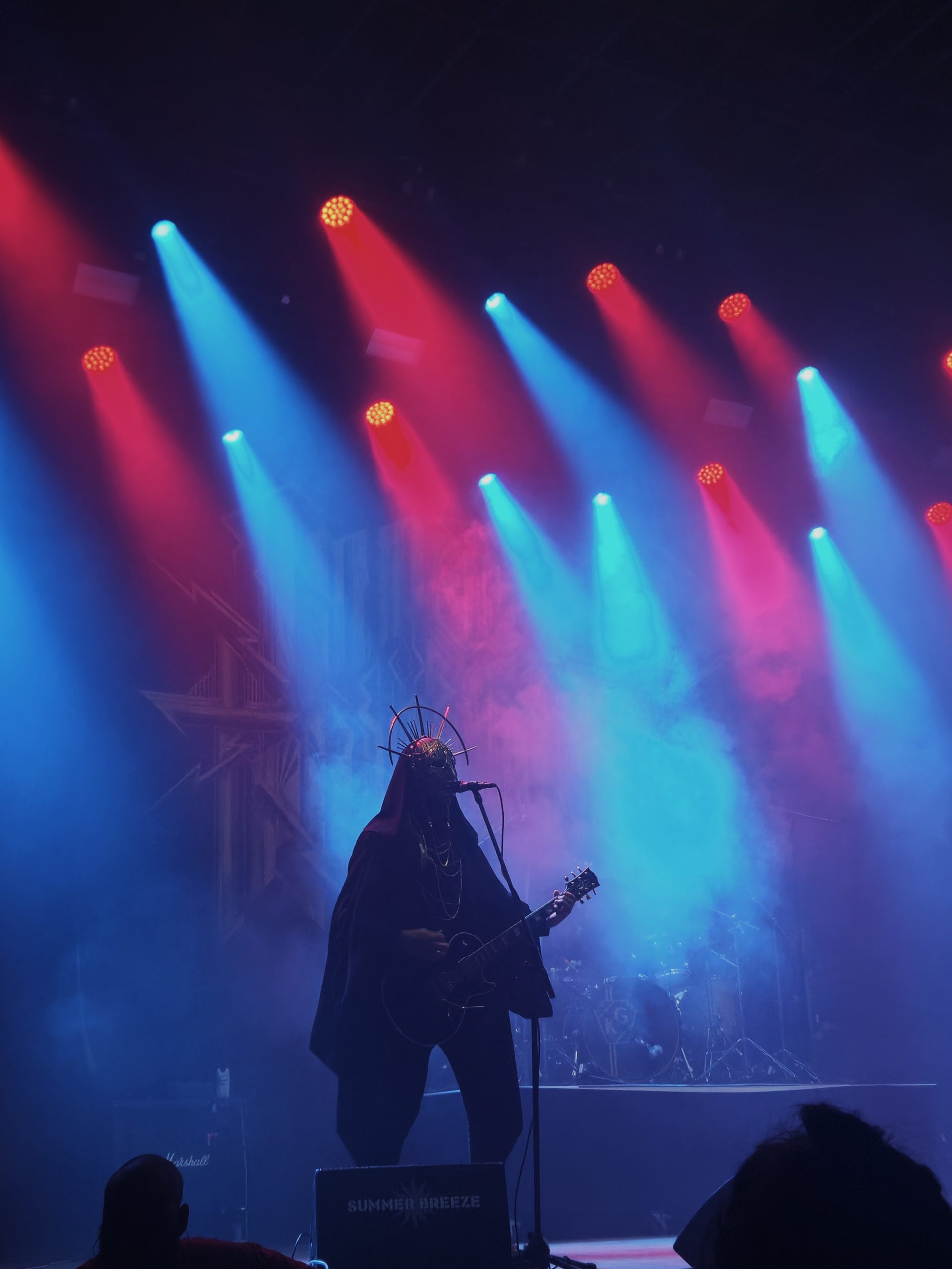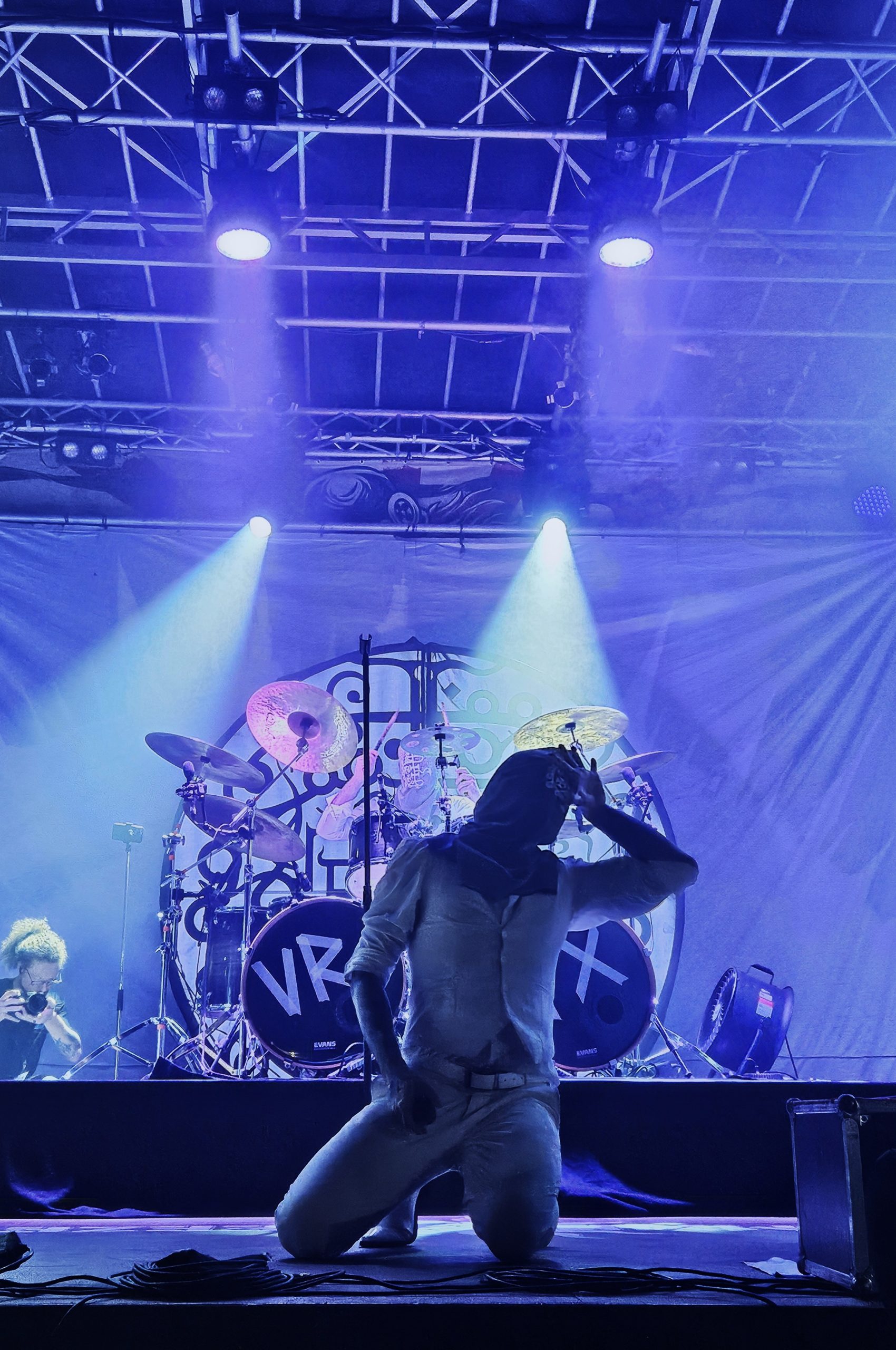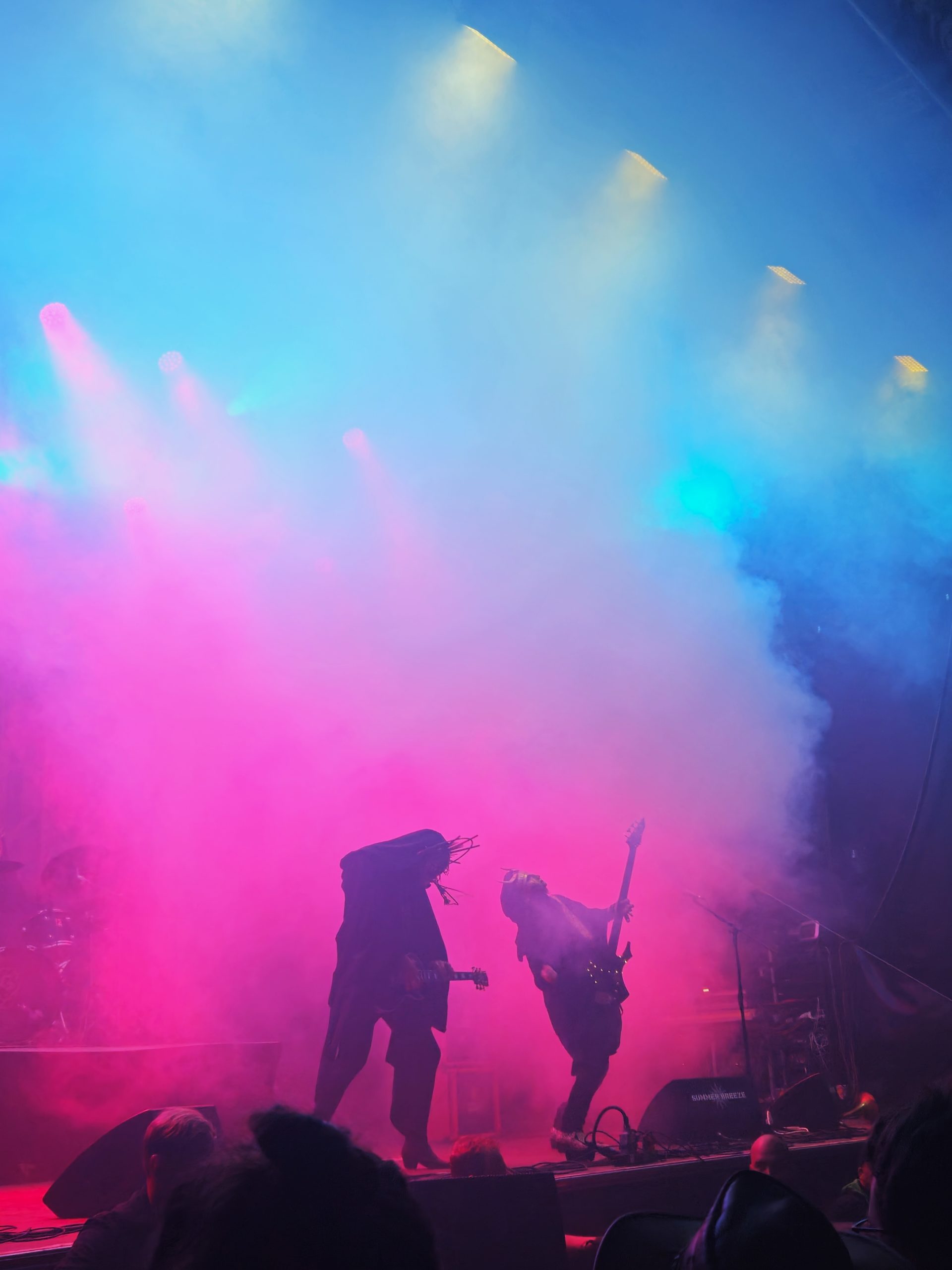 Malheureusement, je me sentis obligé de louper le set de Cytotoxin afin d’être sûr d’avoir la barrière pour le concert de Gaerea. Après quasiment 1h30 d’attente, les Portugais montent enfin sur la T-Stage, et devant un public massif. Contrairement à leur prestation de mercredi en tant que VRTX, les membres du groupe sont cette fois vêtus tout de noir, le visage couvert de leurs habituels masques. Le show s’ouvre sur The Poet’s Ballet, un long morceau qui débute tout tranquillement, avant d’exploser en une frénésie mélancolique. Le talent de Gaerea réside en son habileté à équilibrer la colère, le calme et la tristesse, sur des morceaux qui restent toutefois cohérents et magnifiques. Les musiciens poursuivirent leur prestation en jouant de nombreux morceaux de Coma, le dernier album sorti en 2024 (et qui était d’ailleurs mon album préféré de cette année-là), comme Unknown, Hope Shatters et World Ablaze. Nous avons même eu la chance de voir, pour la toute première fois en live, le nouveau single Submerged. Même s’il change un tout petit peu du style habituel du groupe, le morceau retient une base de post-black mais en y rajoutant des passages plus mélodiques et progressifs qui, en live, font franchement planer. Malheureusement, le set ne dura que 60 minutes et touchait bientôt à sa fin. Après le très beau Wilted Flower, le groupe quitta la scène avant de revenir pour clore le concert avec Laude, devenu depuis 2022 l’hymne du groupe. En bref, je n’ai pas vraiment les mots pour expliquer à quel point c’était incroyable d’enfin voir mon groupe préféré en live. Tout au long du concert, je fus non seulement happé par la musique, mais surtout par l’attitude du chanteur et sa corporalité. Celui-ci se contorsionnait, dansait, déambulait sur la scène d’une manière envoûtante, comme possédé et torturé par ses propres paroles. Ce fut certainement mon set préféré du festival (et possiblement que j’aie jamais vu).