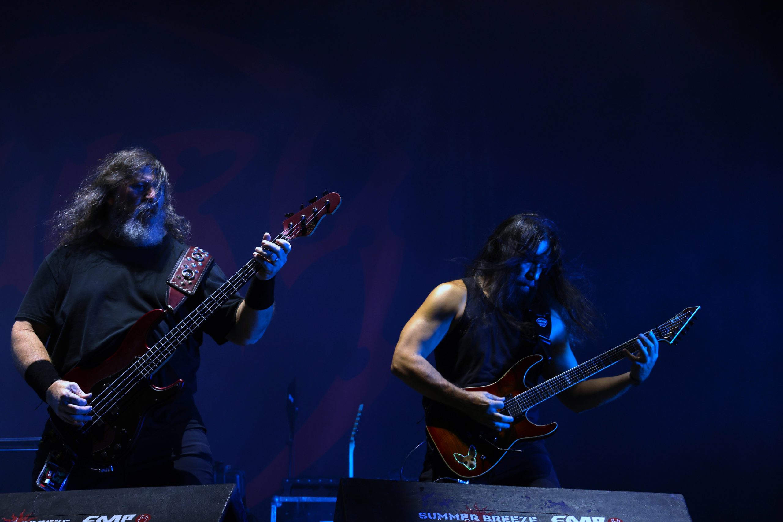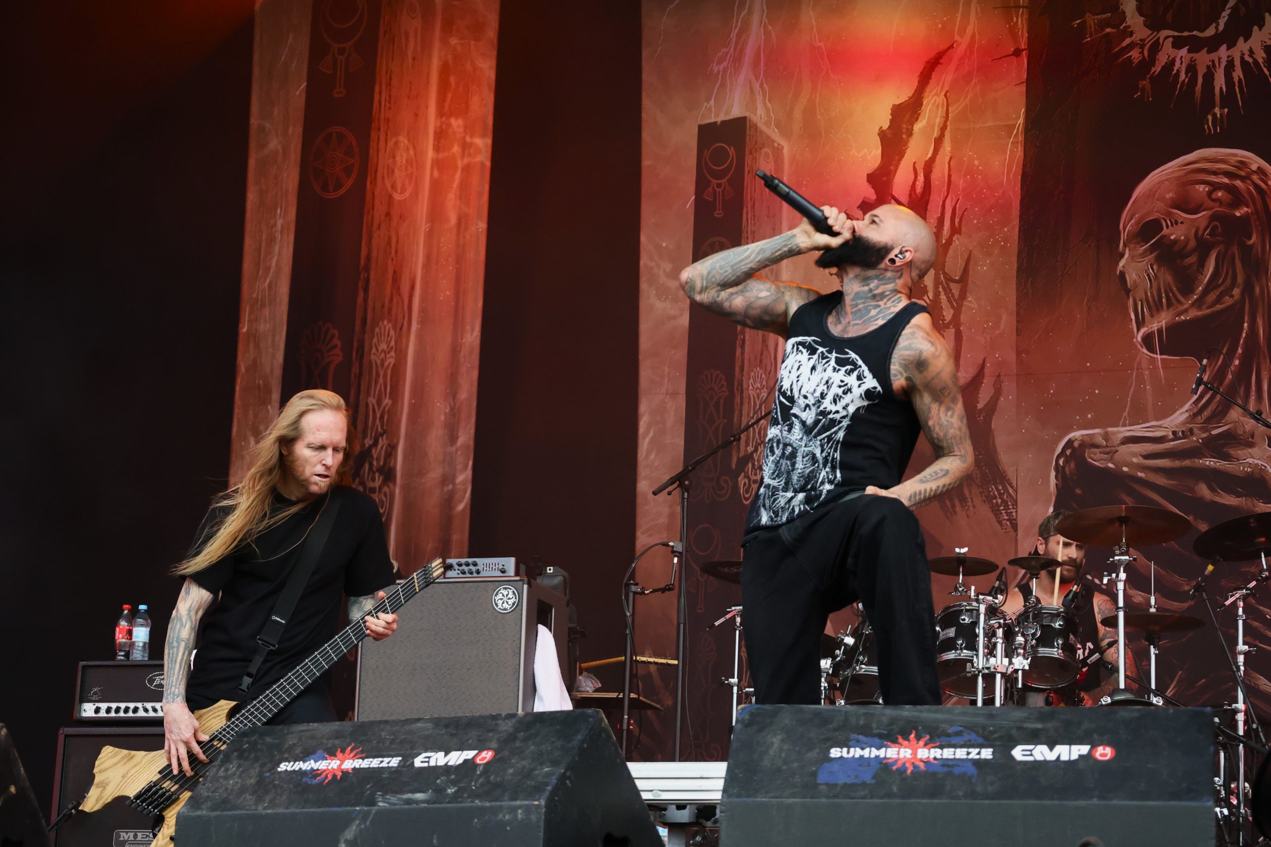 Dès la fin de Within Temptation, je tentai de trouver une place à la barrière pour le headliner de cette seconde journée, j’ai nommé Gojira. Je réussis à être au deuxième rang, c’est mieux que rien, car c’est un groupe qu’il faut voir le plus près possible. La dernière fois que les Français avaient joué au Summer Breeze était en 2006 sur la plus petite scène, et ils sont là en 2025, 19 ans plus tard, en tant que tête d’affiche. Que dire sur ce concert incroyable ? Leur son était immense, le show super précis et les visuels vraiment magnifiques. Je m’attendais à être impressionné par le jeu de Mario Duplantier, et je l’ai bien sûr été, mais je ne pensais pas être autant estomaqué par la voix de son frère Joe. Il arrive autant à délivrer des growls et des screams aigus qu’une voix claire plus mélodique, le tout en jouant des riffs relativement complexes. Pour ce qui est du décor, on a eu droit à des vidéos qui tournaient sur un immense écran au fond de la scène et qui complétaient les morceaux, il y avait également du feu, de la fumée et même d’immense jets d’étincelles. Gojira délivrèrent une setlist très variée, en jouant quelques morceaux plus récents, mais surtout des perles rares issues de certains de leurs albums plus vieux. Les moments forts du show ont été, pour moi, les morceaux From the Sky, Another World, Backbone, L’enfant sauvage ainsi que The Gift of Guilt. Ce morceau, avec ses quasi 2 minutes de tapping à la fin, clôtura ce magnifique set qui fut assurément un de mes préférés du festival.