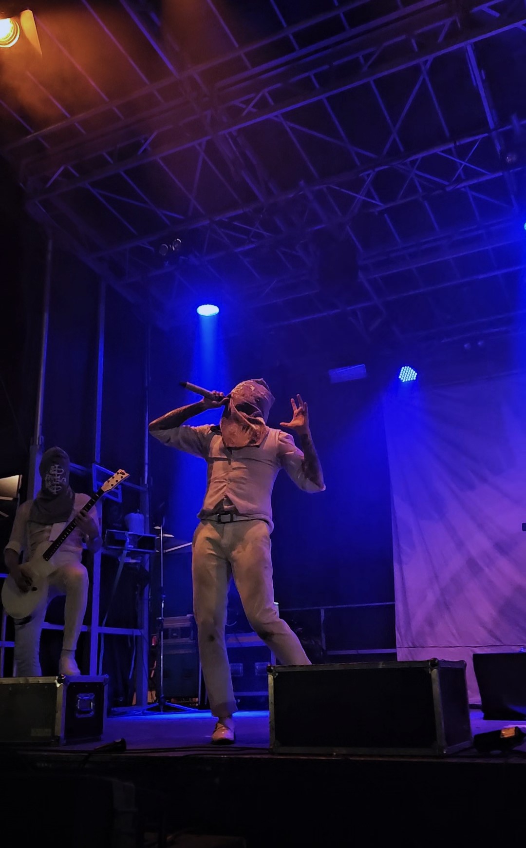 Puis je me rendis sur la Campsite Circus Stage, où VRTX, un groupe inconnu jusqu’à maintenant, devait jouer de 1h à 2h du matin. Sur internet, aucune information n’était disponible, on savait seulement qu’il était composé de 5 membres, jouait du metal extrême et venait des côtes de l’Atlantique Nord. Alors, en amont du festival, j’ai fait mon investigation. Eh bien, après maintes recherches, j’avais trouvé de qui il s’agissait. Au moment où le groupe monte sur scène, le chanteur, masqué, annonça : « We are Gaerea« . J’avais raison ! Vous n’imaginez pas dans quel état je fus, Gaerea étant mon groupe préféré depuis quasiment 2 ans. Les Portugais jouèrent donc un set spécial composé de perles rares et de morceaux qu’ils n’avaient plus joué depuis des années : Santificato, Pray to Your False God, Absent, Null, Urge, Conspiranoia, Void of Numbness et Wilted Flower. C’était magique. Les voir, habillés tout en blanc (ils sont d’habitude en noir), sur une minuscule scène, jouer des morceaux aussi rares fut véritablement une expérience hors du commun.