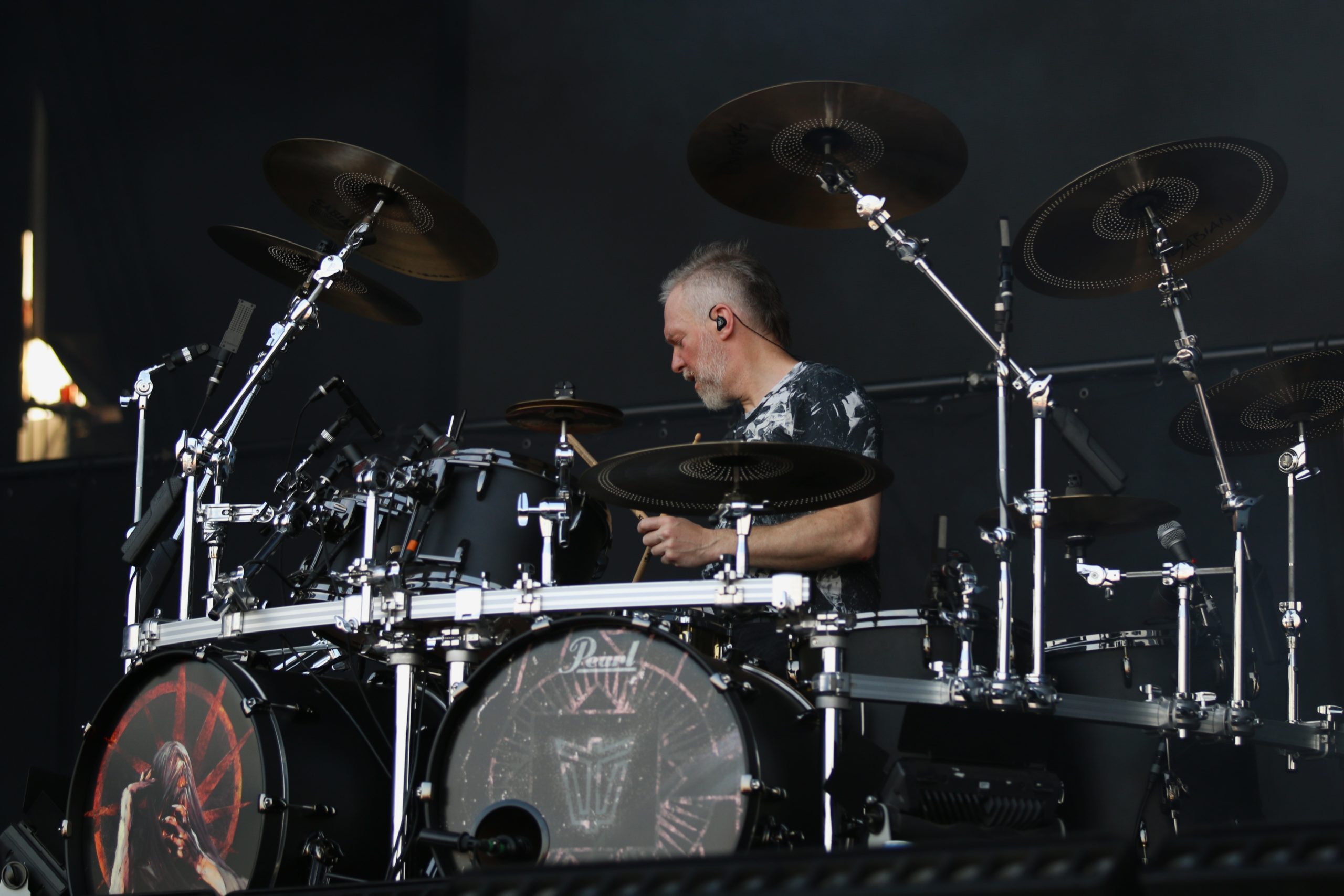 Après ce petit interlude, il était temps pour Kanonenfieber de monter sur la Main Stage. Suite à une montée en popularité stratosphérique notamment due à leur dernier album Die Urkatastrophe, le projet de blackened death orchestré par le talentueux Noise s’est retrouvé sous le feu des projecteurs. Théâtralité, musique mélodique mais puissante à la fois et un concept intéressant (explorant l’histoire de la Première Guerre Mondiale) sont la recette de ce succès. Les Allemands, originaires de non loin de Dinkelsbühl d’ailleurs, sont d’autant plus populaires ici et leur venue grandement attendue depuis un premier passage en 2023. Costumes de soldats, décors rappelant l’horreur des tranchées, pyrotechnie, pétards, fumée, ce fut un show grandiose comme j’en ai rarement vu. Noise, leader et mastermind derrière le groupe, semble fait pour la scène : toutes ses mimiques, ses gestes et sa voix transcrivent une imposante figure de général terriblement froid. En live, ses vocalises sonnent même mieux que sur les versions studio, particulièrement sur les titres Sturmtrupp et Der Maulwurf. Le show se termine sur l’émouvant Ausblutungsschlacht, durant lequel Noise, vêtu d’un masque de crâne et représentant la Mort, réclama un par un la vie de ses camarades. A la fin du morceau, le général se tint droit, silencieux, regardant le public, puis tira sa révérence et quitta la scène.