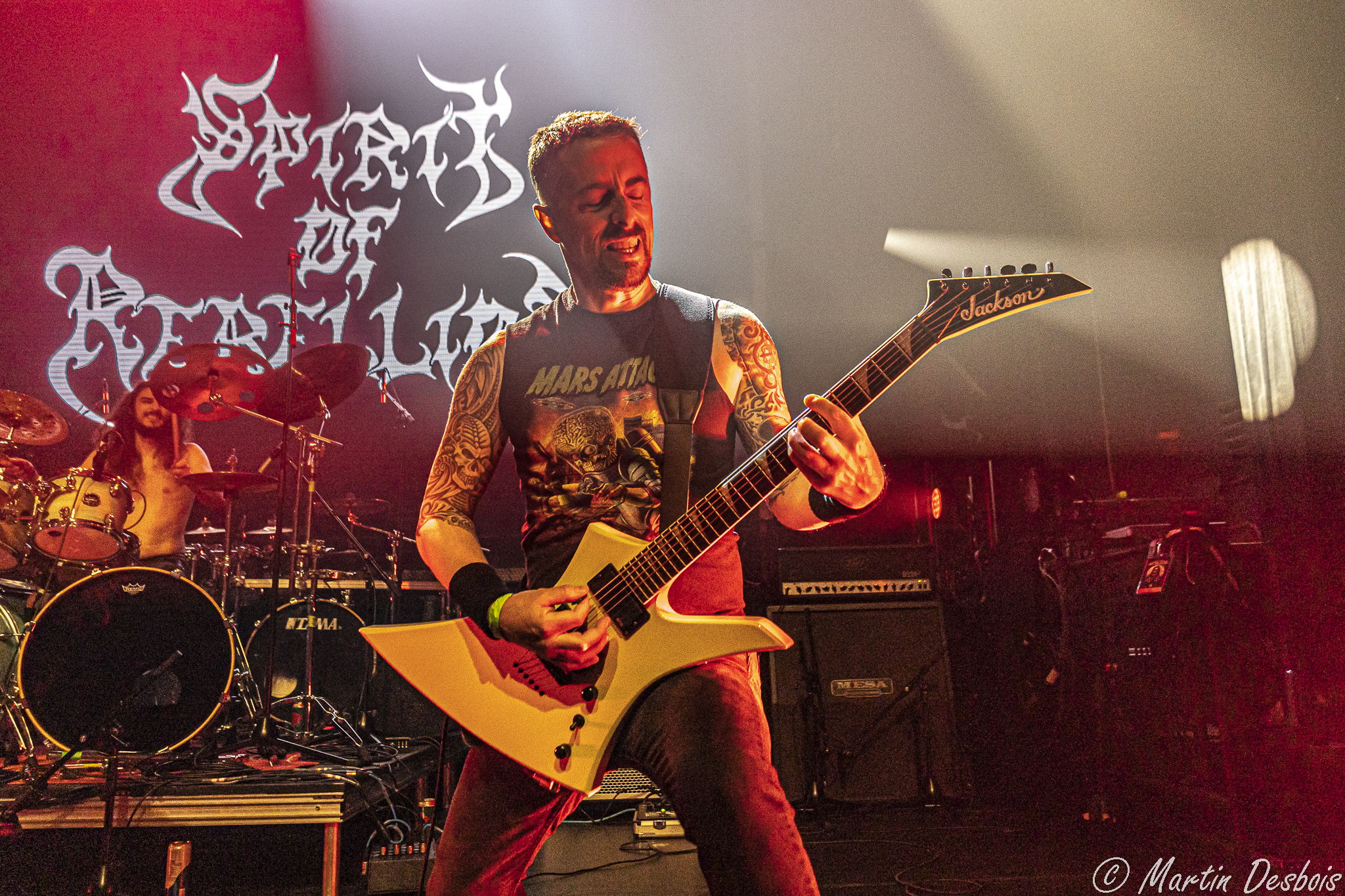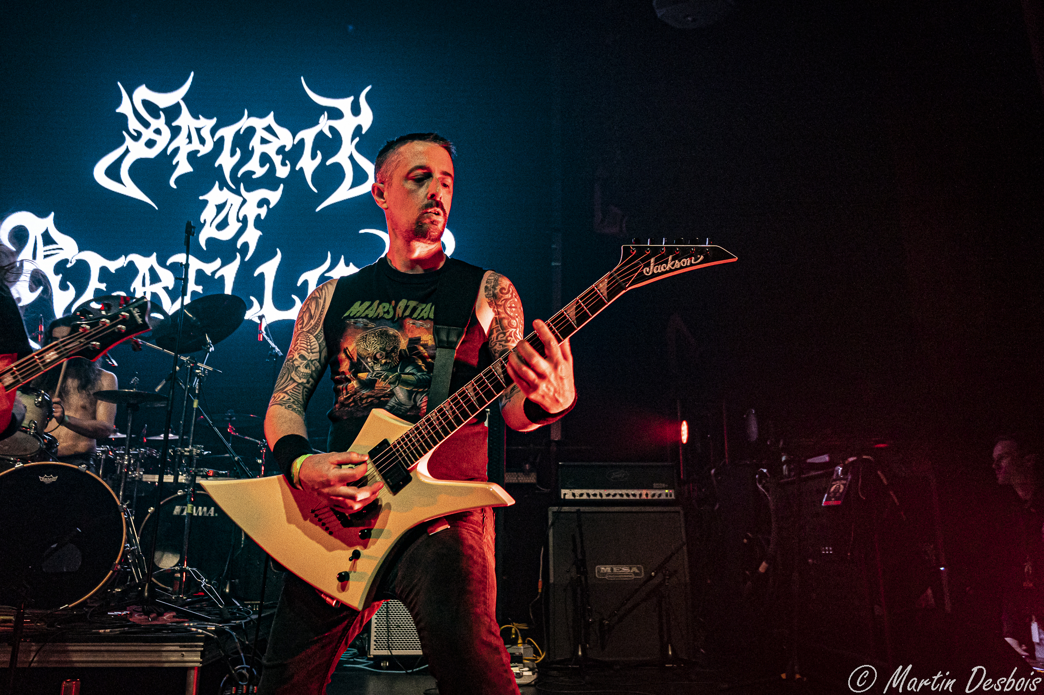 Quel coup d’envoi pour cette deuxième journée ! Spirith of Rebellion était clairement le groupe qu’il fallait pour lancer cette soirée ! Contrairement à hier, dès les premières notes, nous avons eu droit à des pogos et des circle pits. En ce samedi, le public est prêt à en découdre. Le groupe proposant un set de vingt minutes, leur performance a passé en un claquement de doigts. J’aurais pris plus de leur black/death metal livré sur scène !