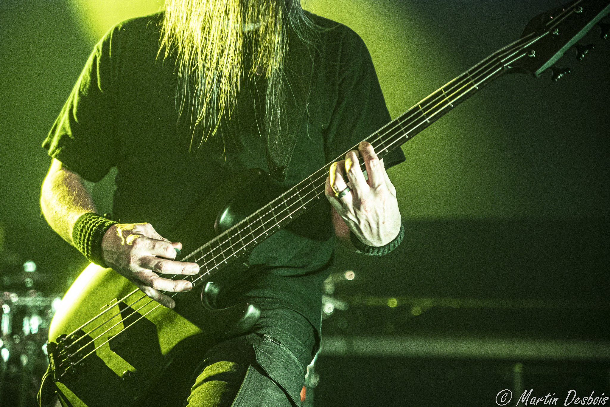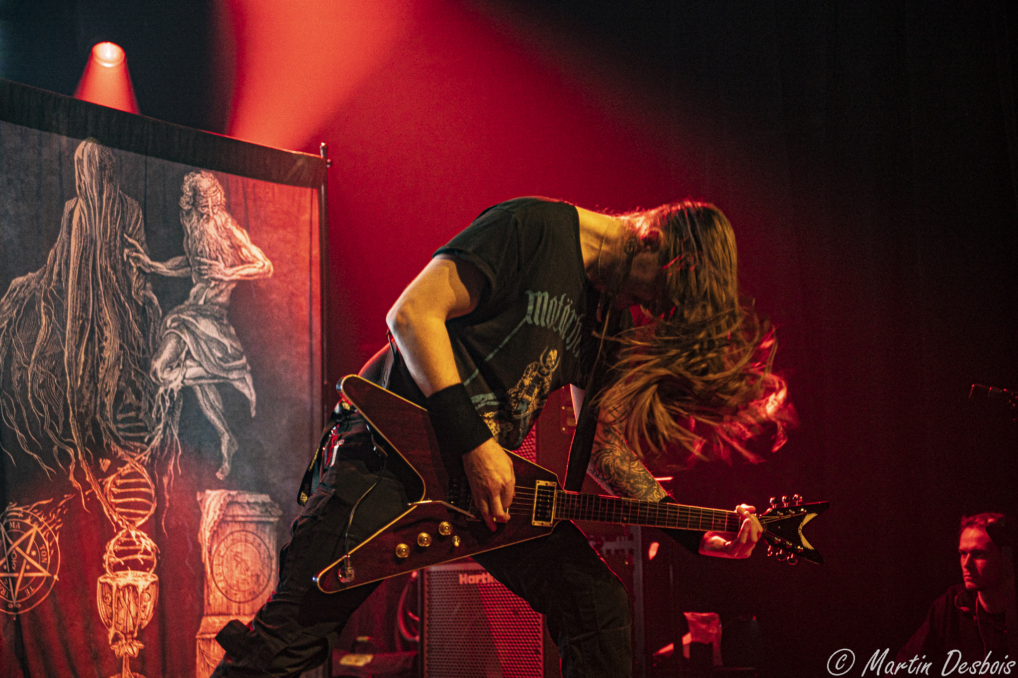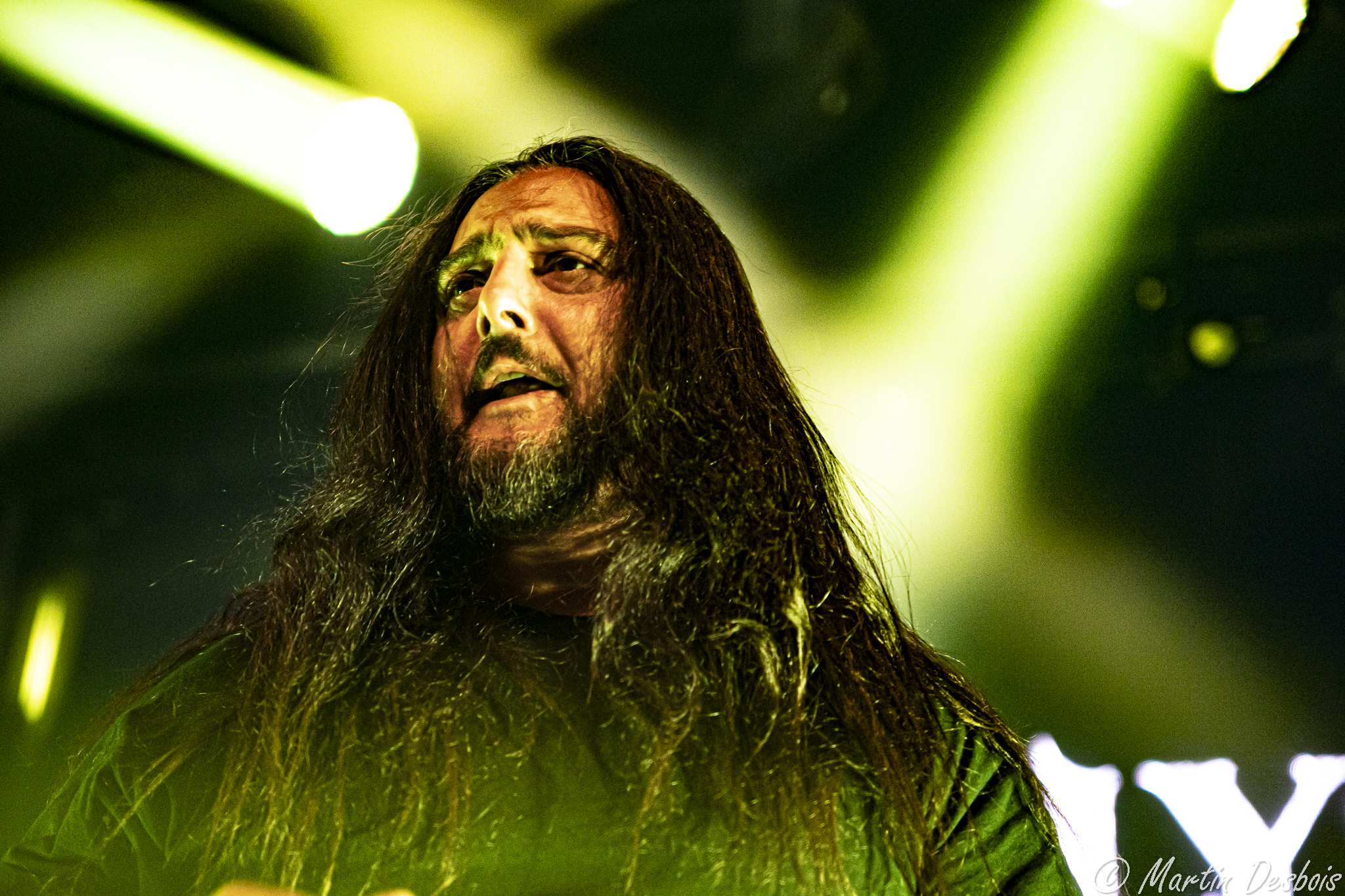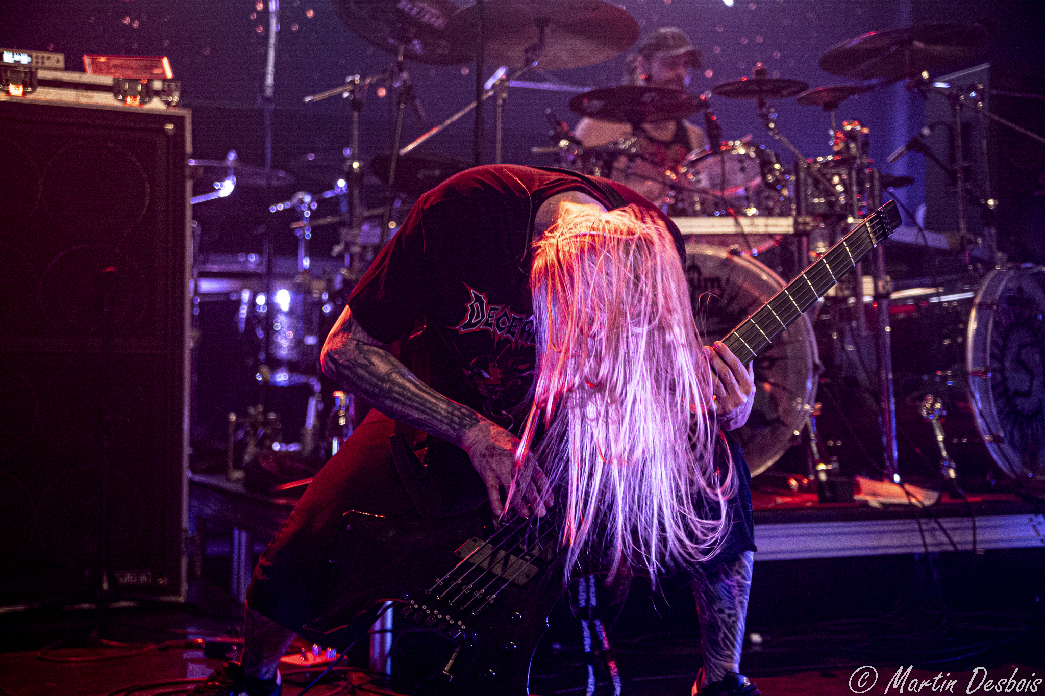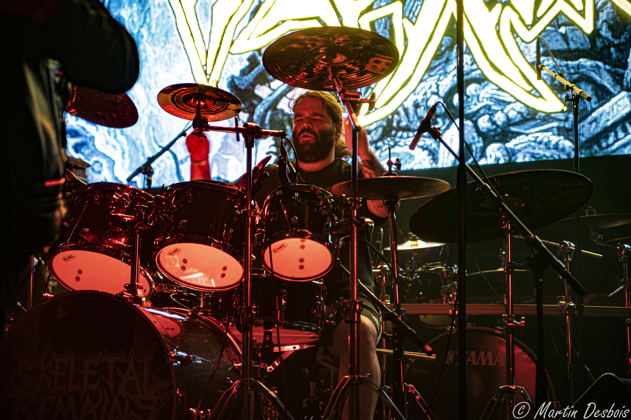 Poursuivons avec le groupe Skeletal Remains, band de death metal également, et nouvelle révélation aussi. Avec des mélodies aux rythmes rapides et typiques du death metal, le groupe m’a bien plu. Avec un set intense du début à la fin, ajoutant quelques solos de guitare ici et là, Skeletal Remains nous a démontré qu’il n’en était pas à son premier concert, et le public s’en donnait à cœur joie, créant non-stop des pogos.