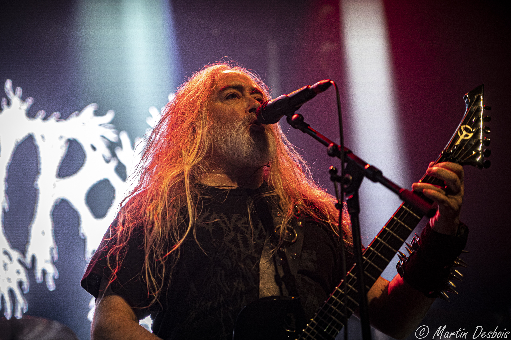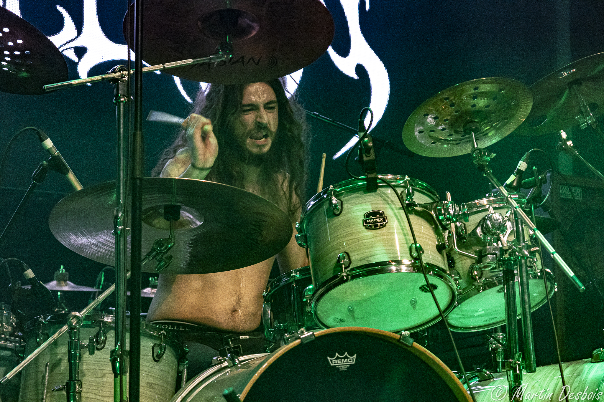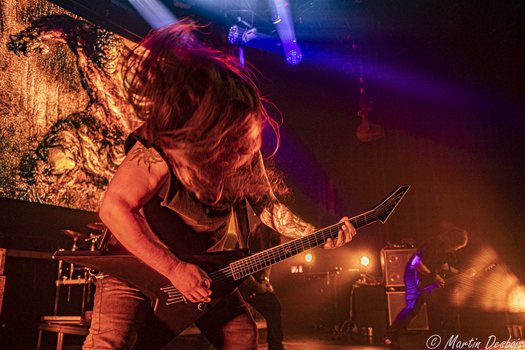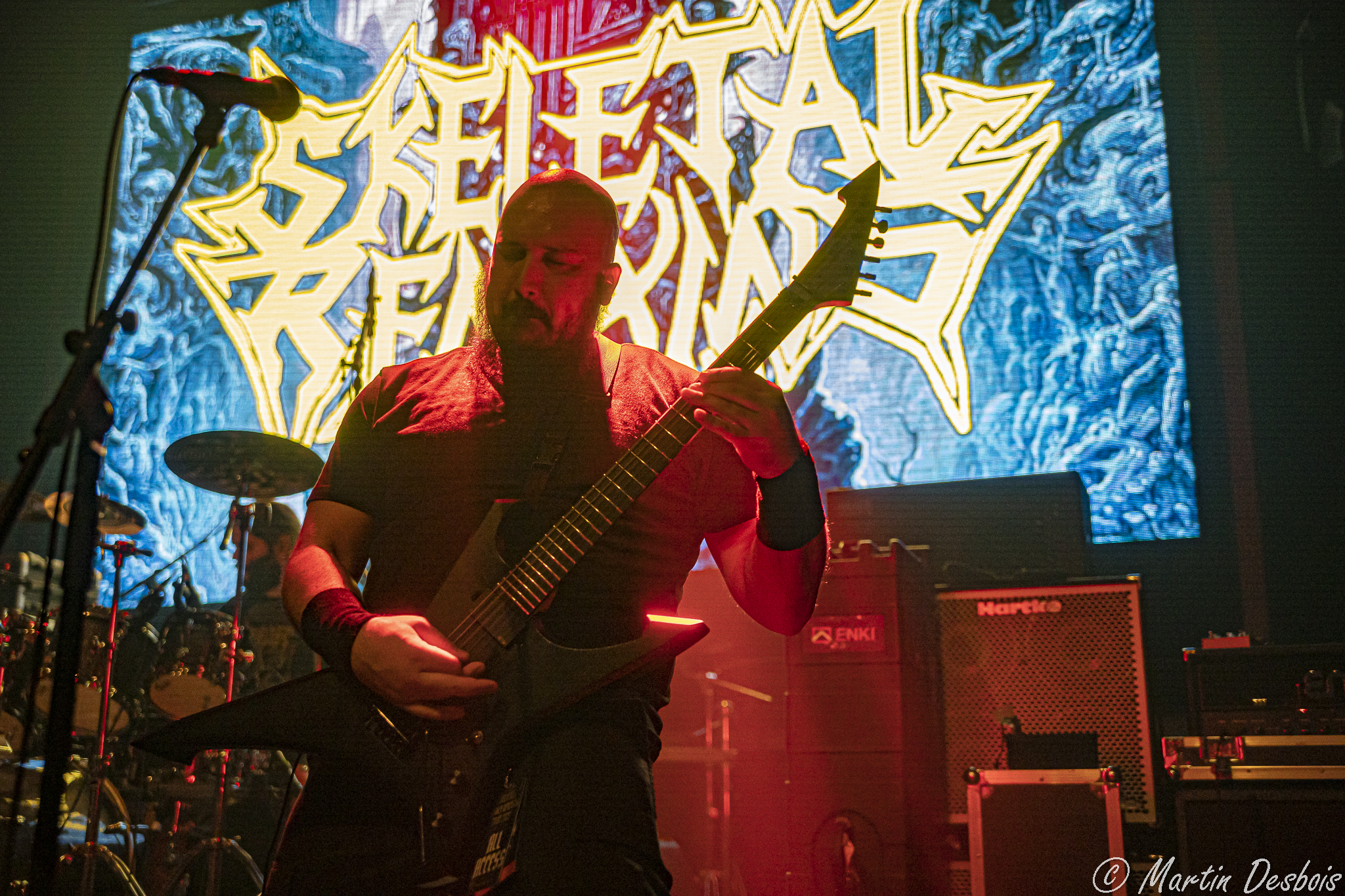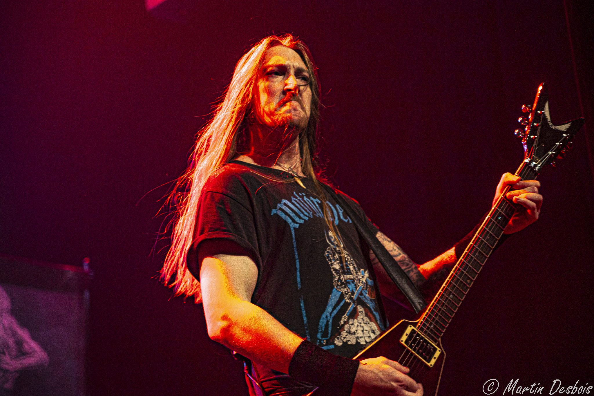 Poursuivons avec le groupe Skeletal Remains, band de death metal également, et nouvelle révélation aussi. Avec des mélodies aux rythmes rapides et typiques du death metal, le groupe m’a bien plu. Avec un set intense du début à la fin, ajoutant quelques solos de guitare ici et là, Skeletal Remains nous a démontré qu’il n’en était pas à son premier concert, et le public s’en donnait à cœur joie, créant non-stop des pogos.