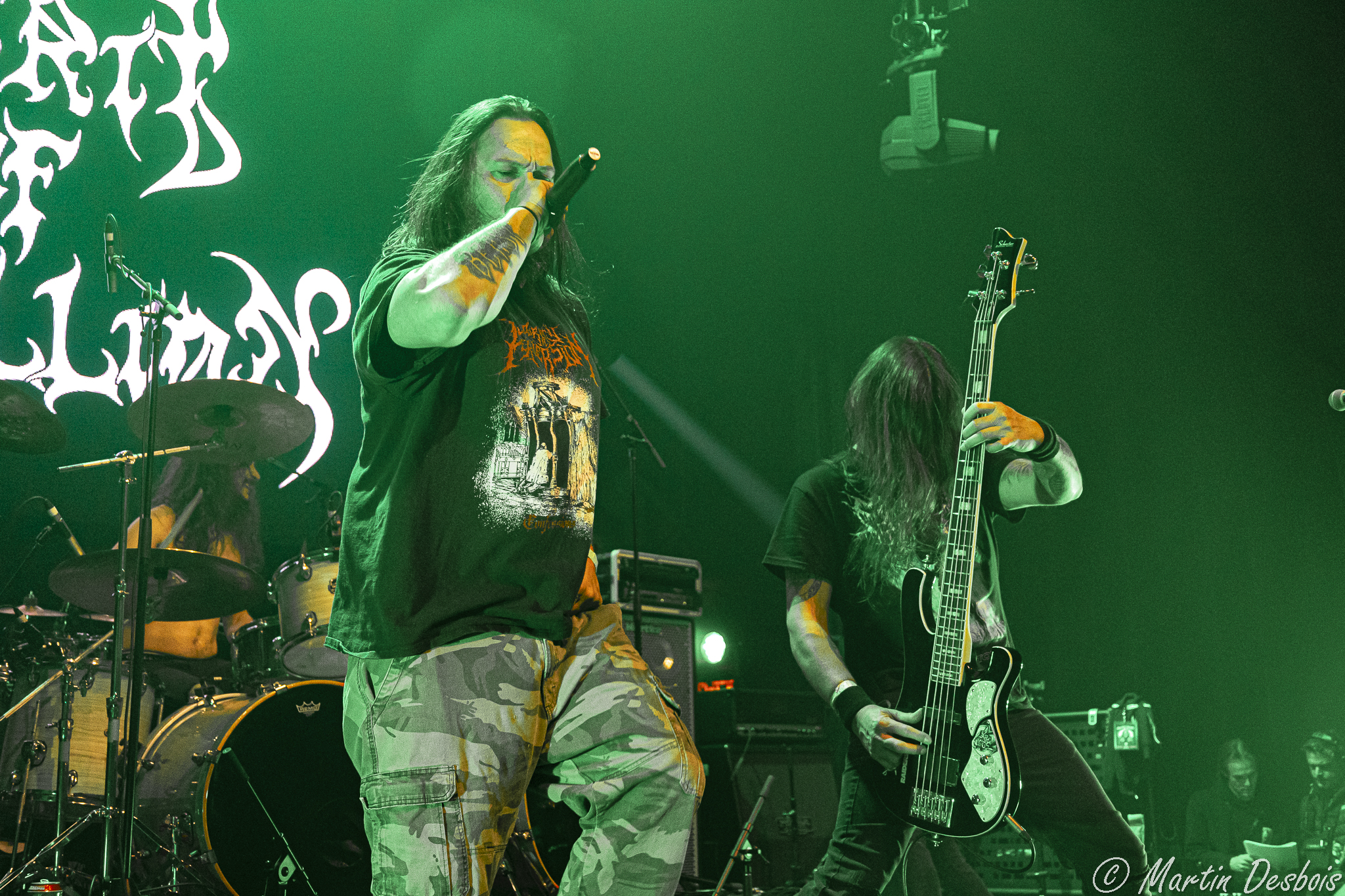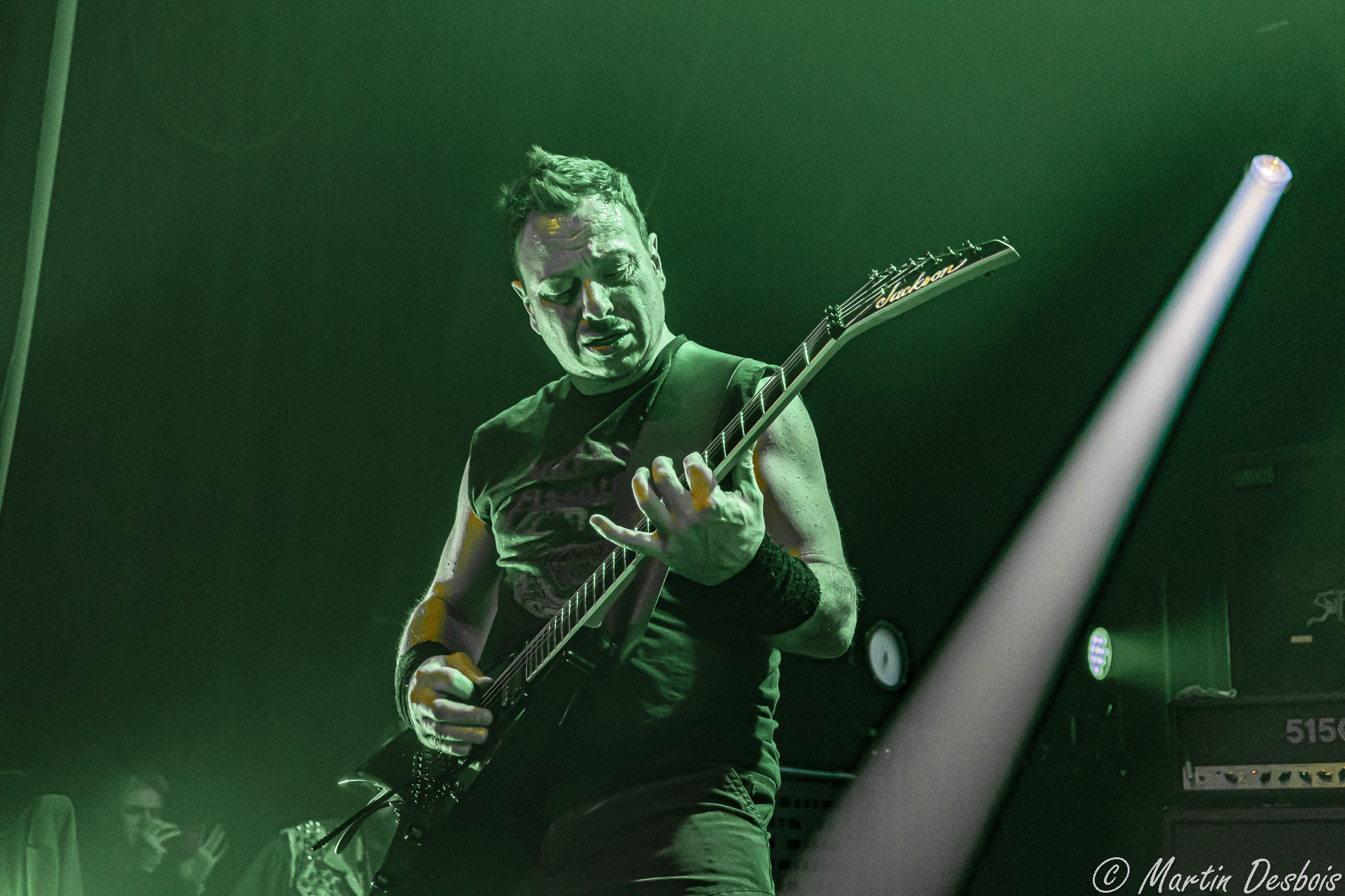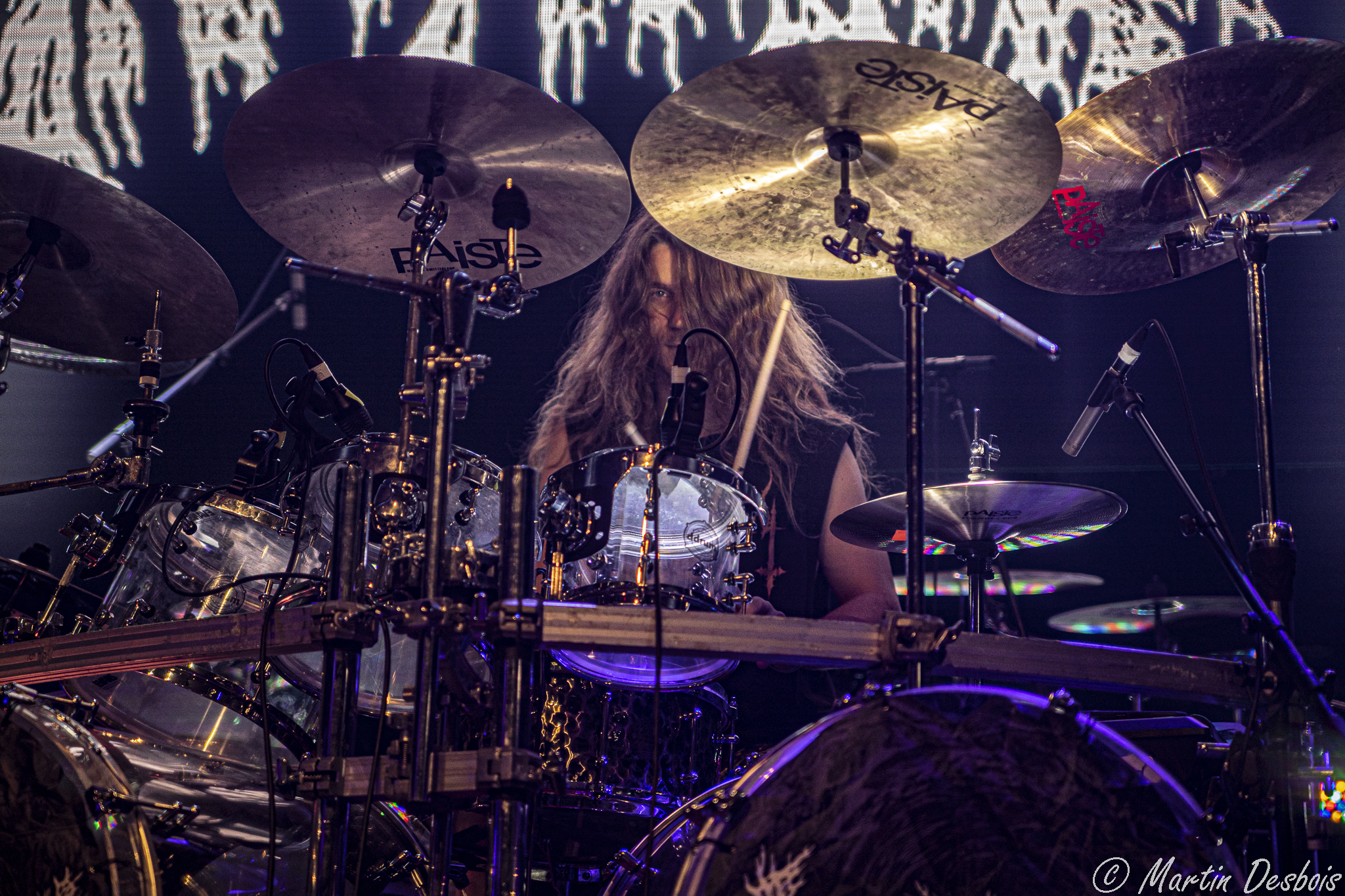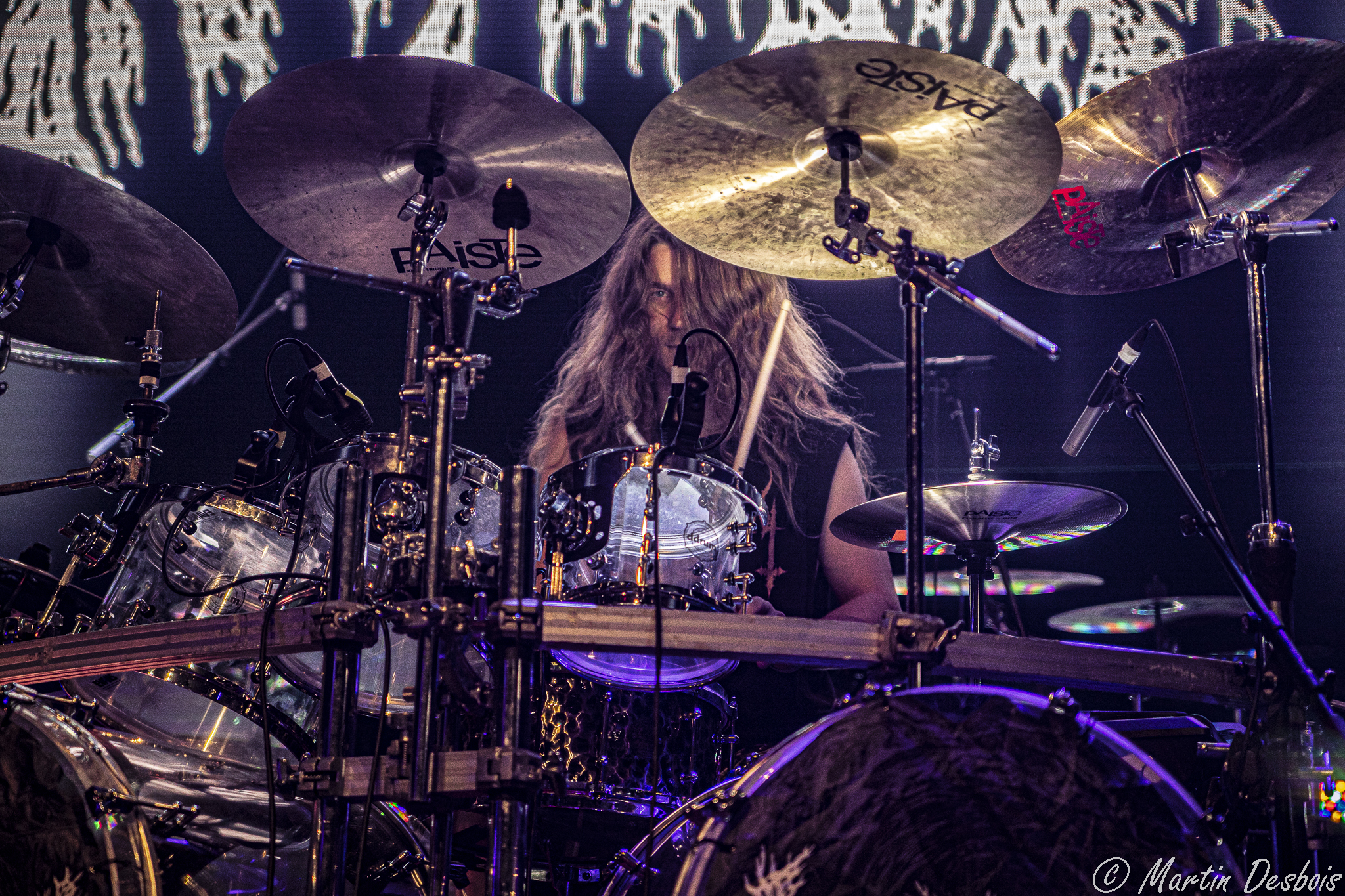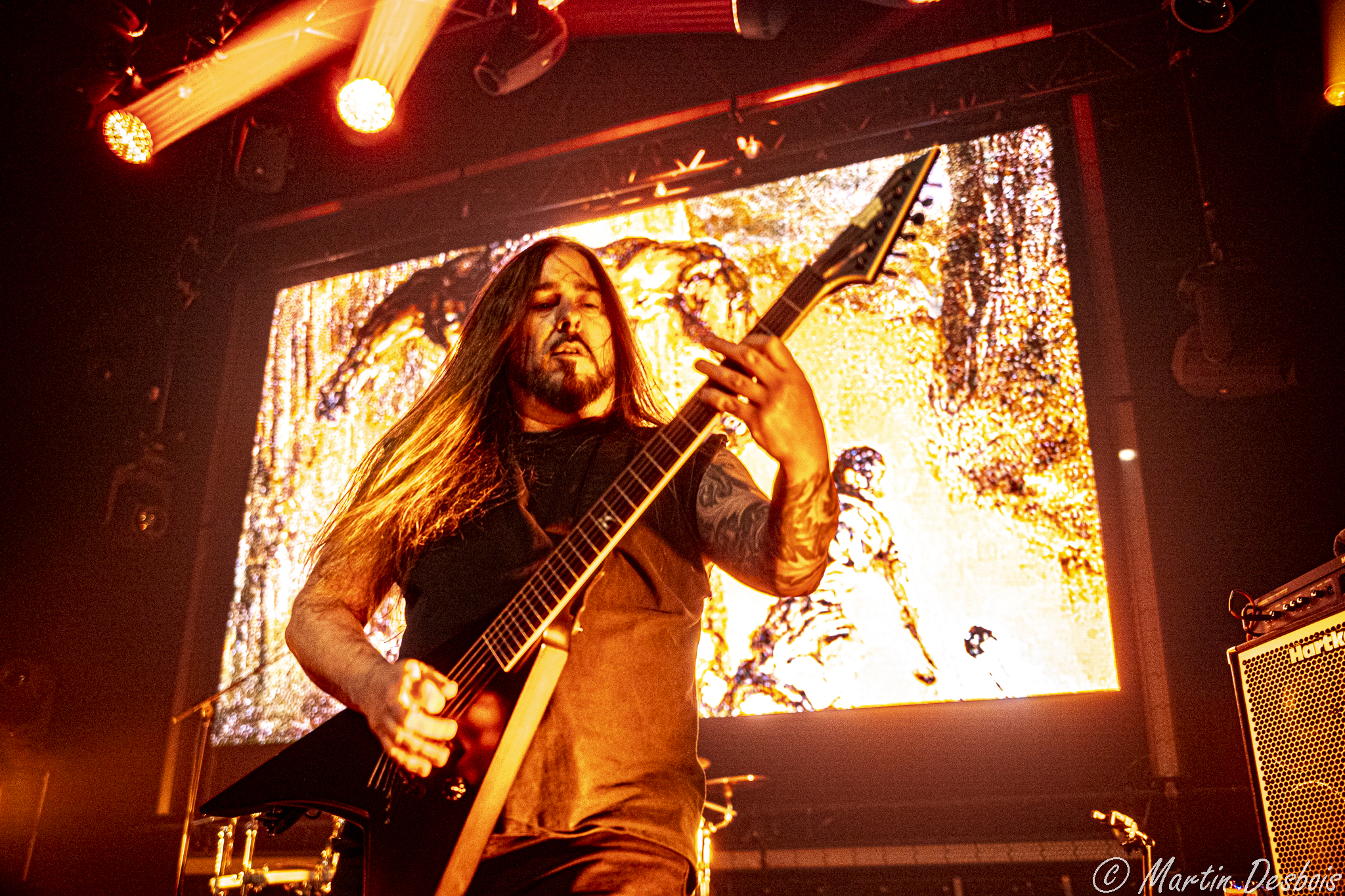 Poursuivons avec le groupe Skeletal Remains, band de death metal également, et nouvelle révélation aussi. Avec des mélodies aux rythmes rapides et typiques du death metal, le groupe m’a bien plu. Avec un set intense du début à la fin, ajoutant quelques solos de guitare ici et là, Skeletal Remains nous a démontré qu’il n’en était pas à son premier concert, et le public s’en donnait à cœur joie, créant non-stop des pogos.