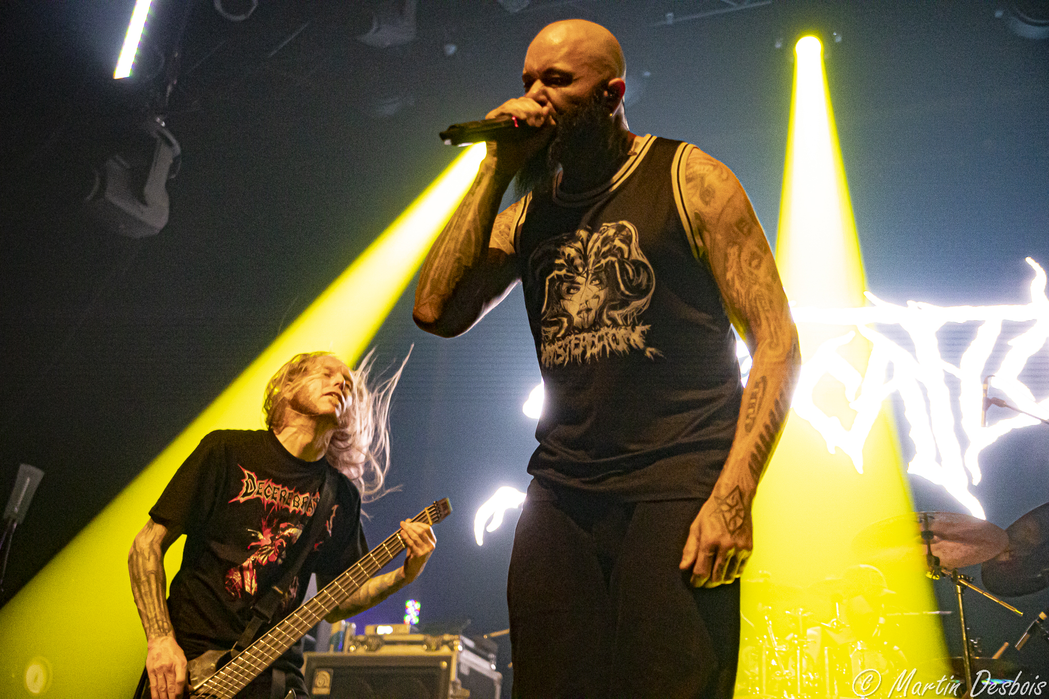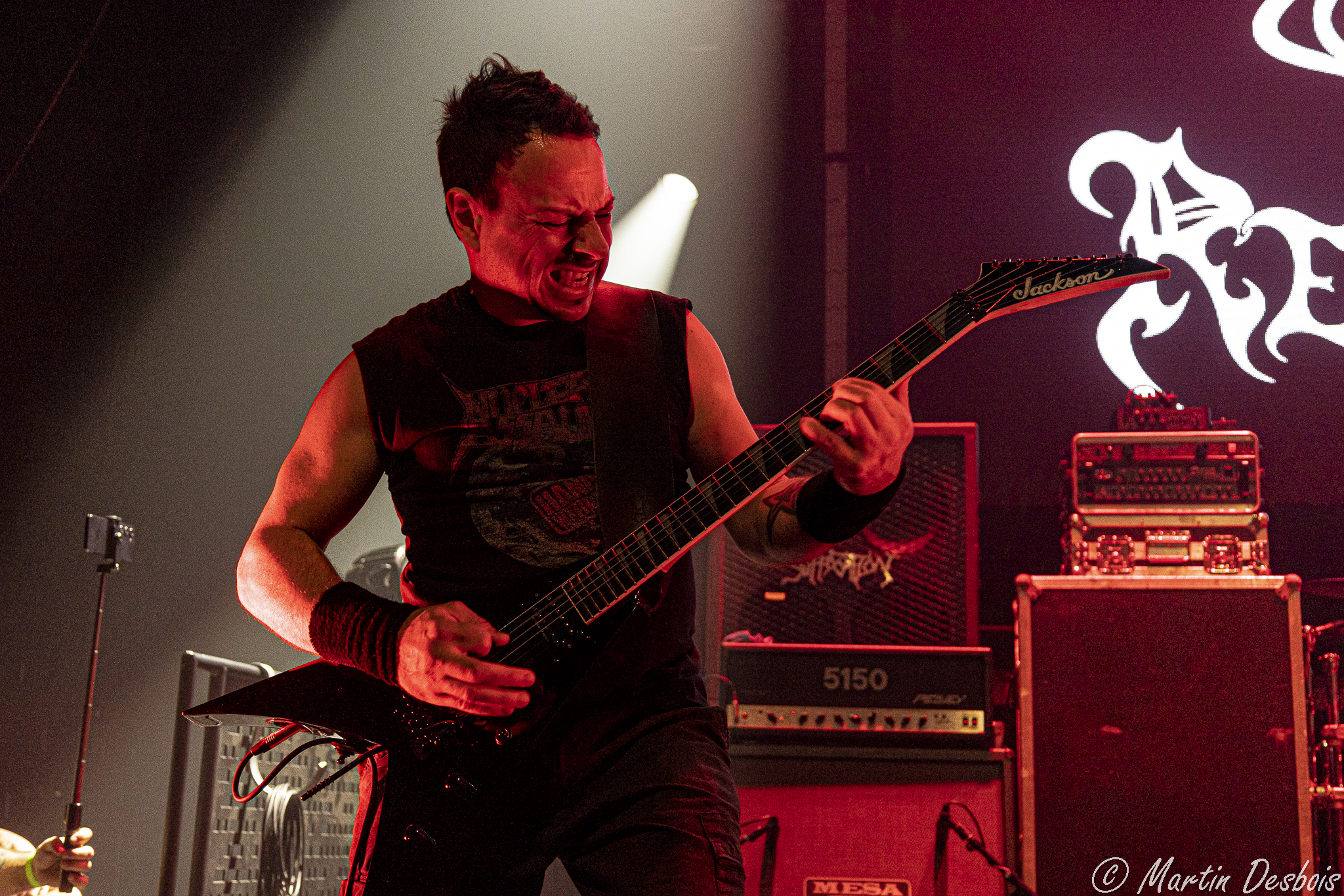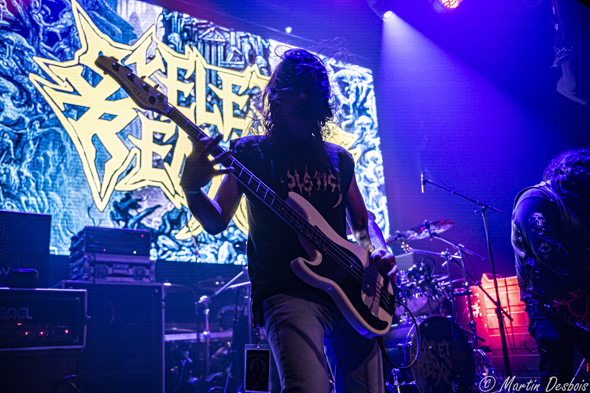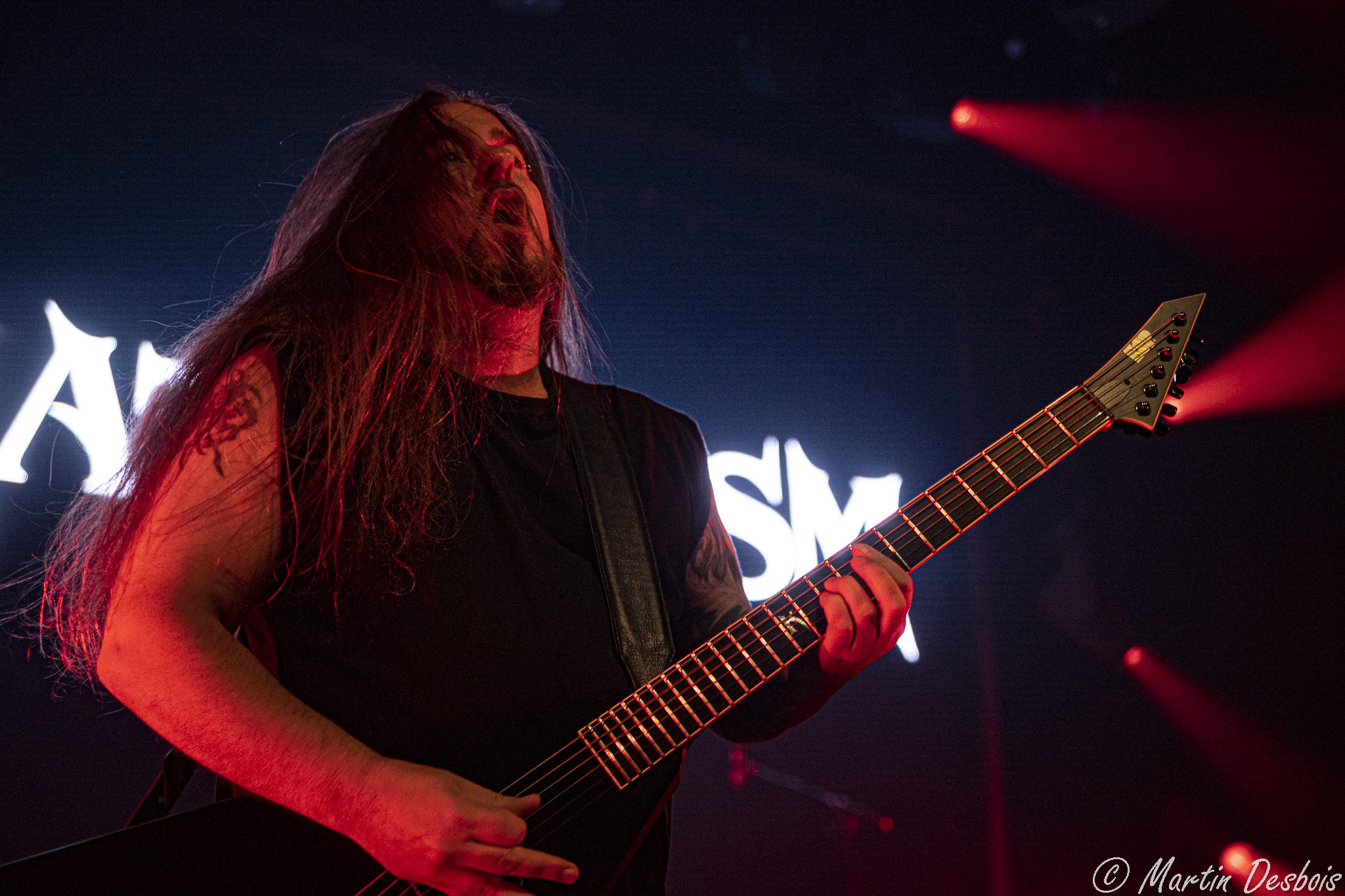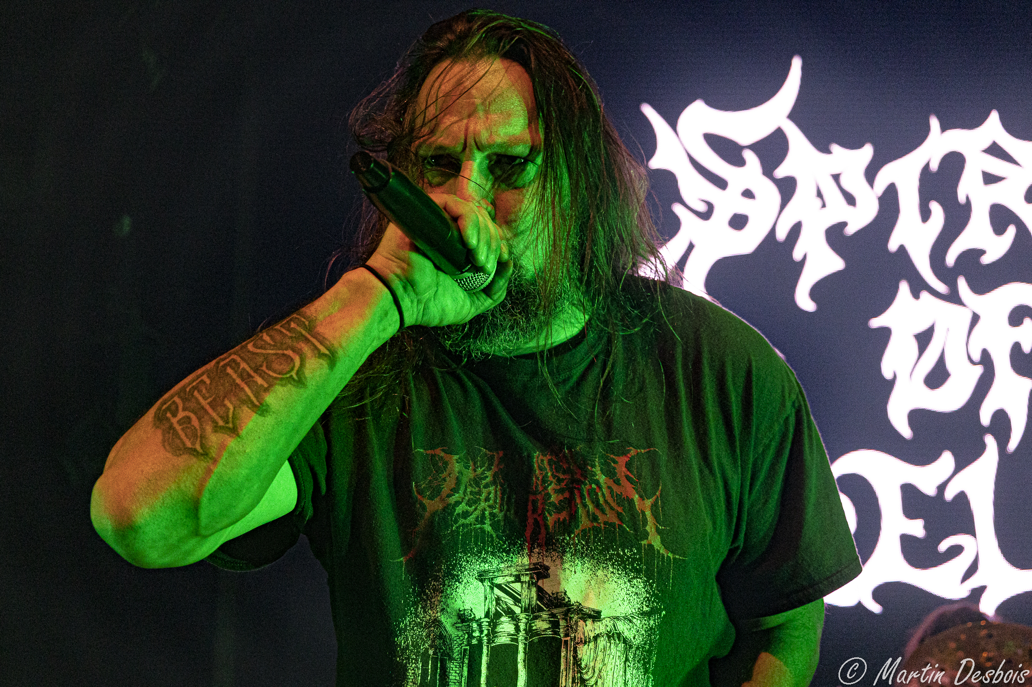 Poursuivons avec le groupe Skeletal Remains, band de death metal également, et nouvelle révélation aussi. Avec des mélodies aux rythmes rapides et typiques du death metal, le groupe m’a bien plu. Avec un set intense du début à la fin, ajoutant quelques solos de guitare ici et là, Skeletal Remains nous a démontré qu’il n’en était pas à son premier concert, et le public s’en donnait à cœur joie, créant non-stop des pogos.