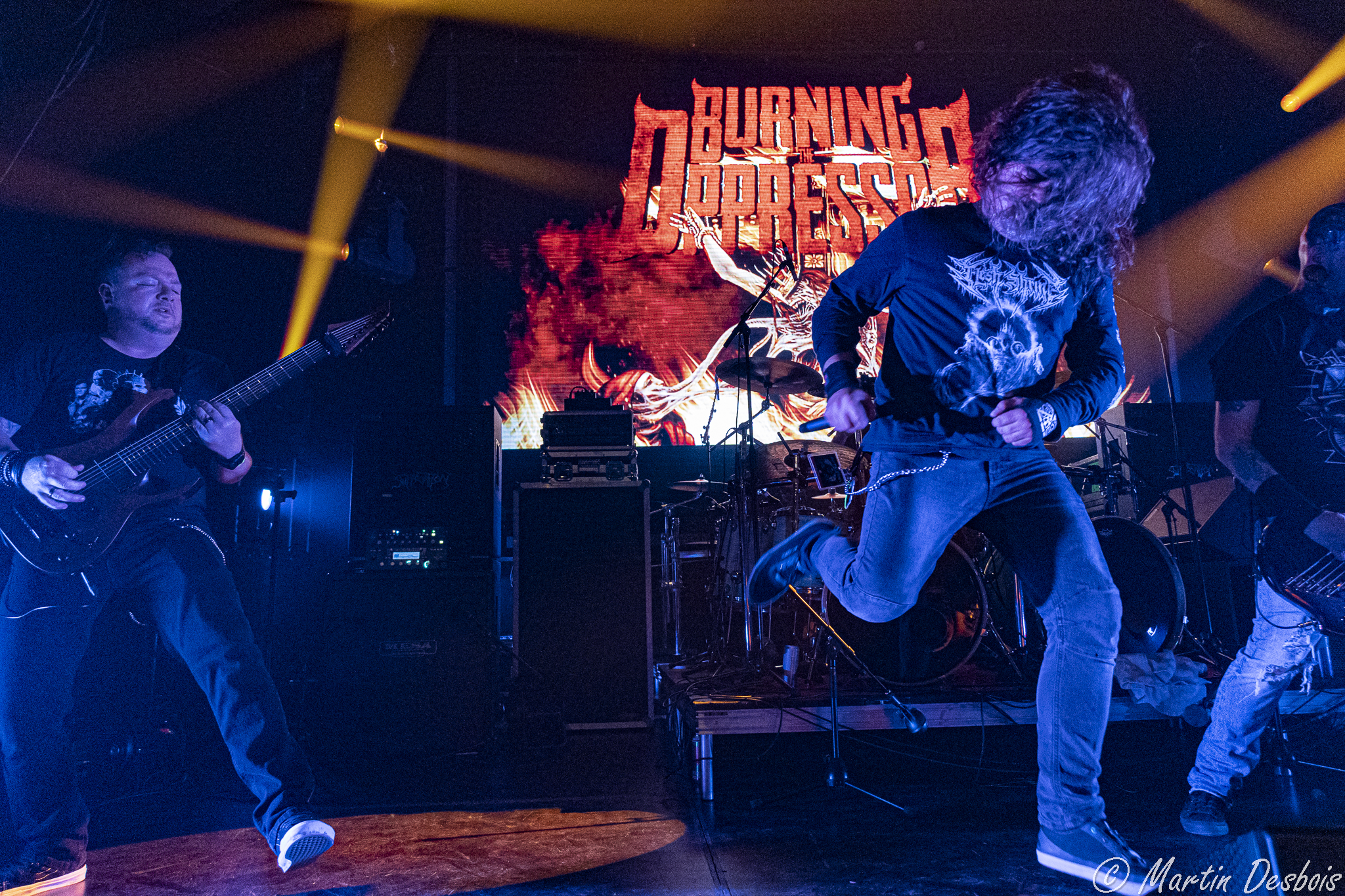 Pour avoir vu à plusieurs reprises les musiciens du deuxième groupe, je dois dire qu’ils ont monté le niveau pour ce soir. Ils ont enflammé la salle et les planches. Les festivaliers étaient prêts à bouger, après le premier set. Mixant le death metal et le deathcore, le son de Burning the Oppressor est unique. Je ne les avais pas vus sur scène depuis un moment et ils m’ont agréablement surprise, offrant un show à la mesure du Trois-Rivières Metalfest.
