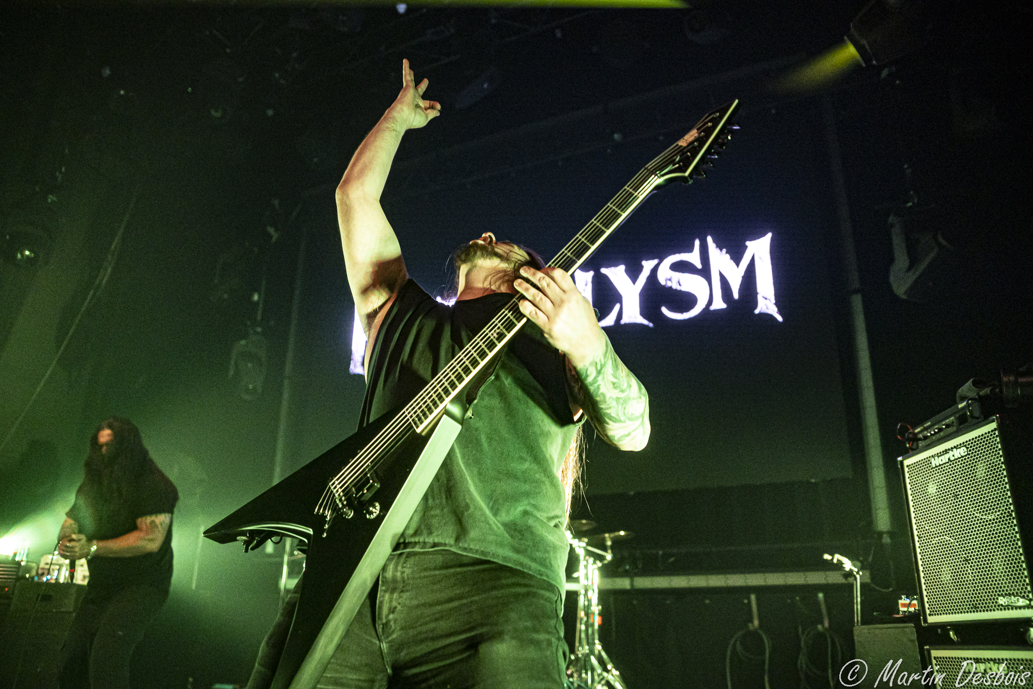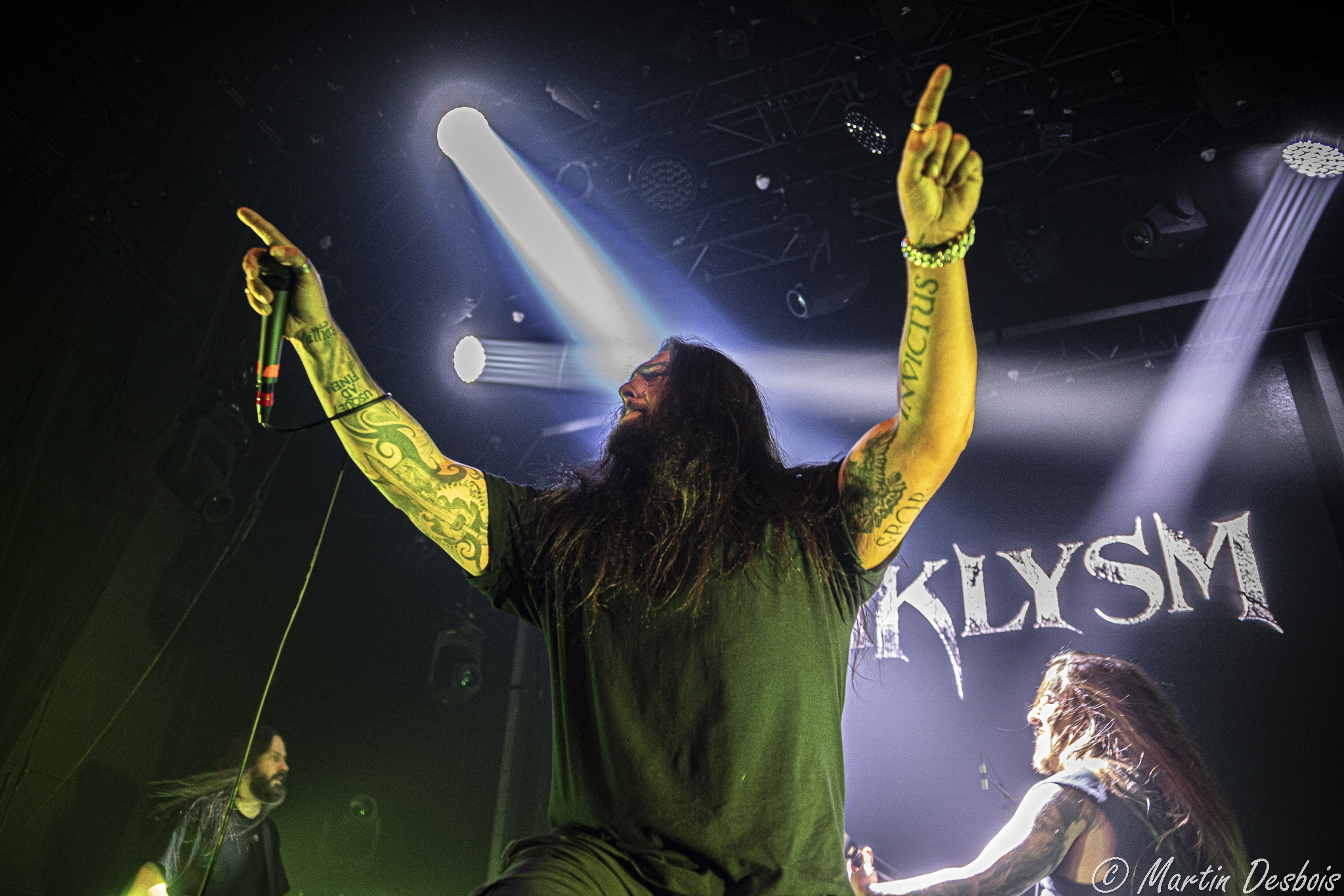 Accueillons pour finir les gars de Montréal, notre band local qui a traversé l’océan, Kataklysm ! Avec leur death metal mélangé avec du melodic death metal, ils montrent pourquoi ce sont eux qui ferment la soirée ! Leur set fut démentiel. Les fans étaient déchaînés, les pogos de plus en plus intenses pour le bonheur des musiciens. Réel monstre sur scène, le chanteur donne une performance montrant l’étendue de ses talents. Marchant d’un bout à l’autre de la scène, interagissant avec le public, il connaît très bien son rôle de meneur. L’expérience Kataklysm est simplement folle. Pour moi, ce fut une première et cela ne sera pas la dernière !
