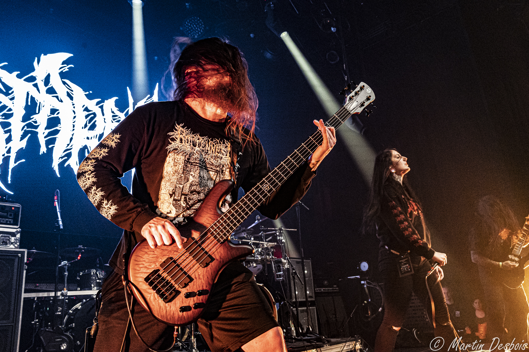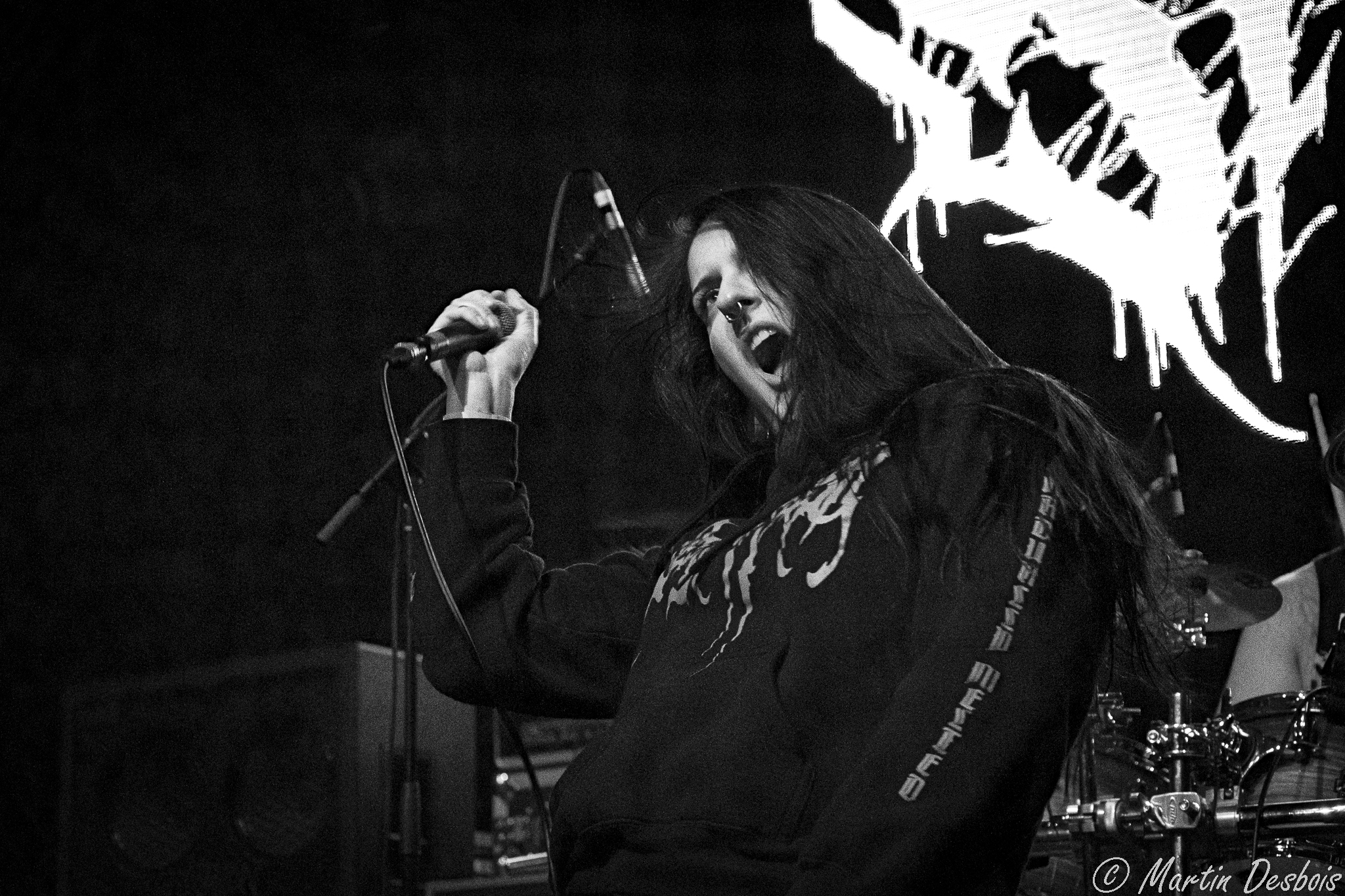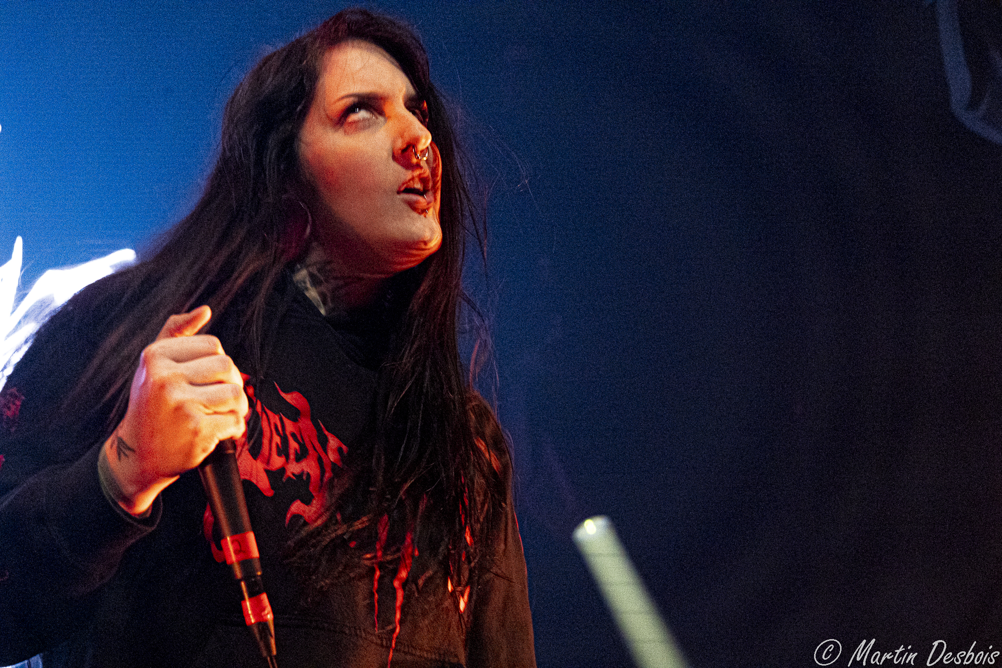 Stabbing était un groupe inconnu pour moi, jusqu’à les voir monter sur scène, en cette soirée. Quel coup de cœur ! Ils nous offrent un brutal death metal amené avec une chanteuse dont la performance est tout simplement magistrale. Son attitude sur scène a tout éclipsé. Elle regarde le public, avec une attitude tellement forte sur les planches qu’elle donne envie même à la plus petite des spectatrices d’être aussi forte qu’elle. Honnêtement, elle m’a impressionnée.