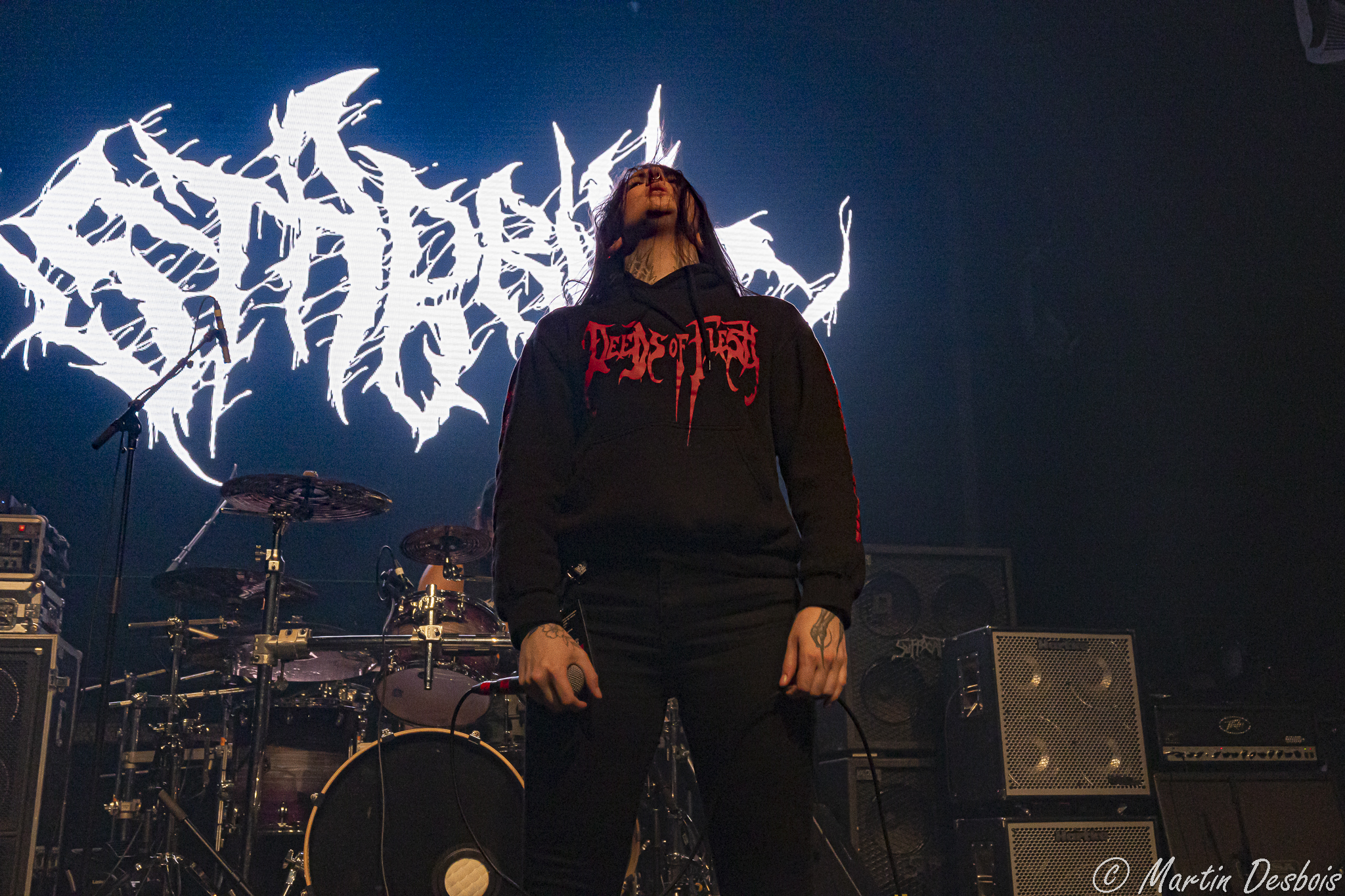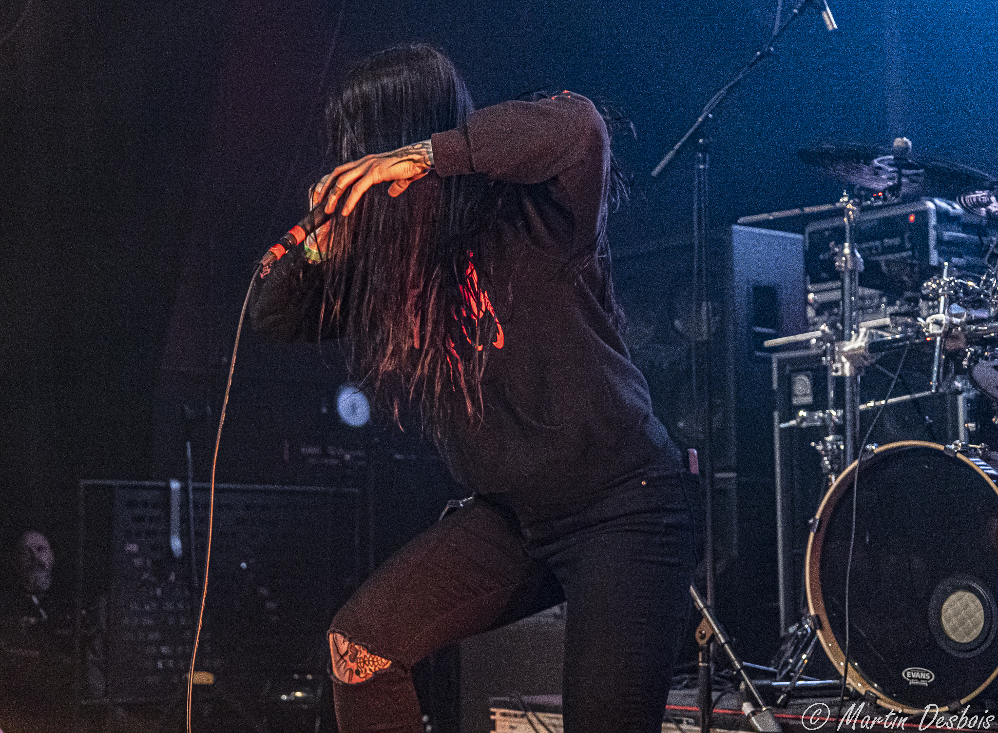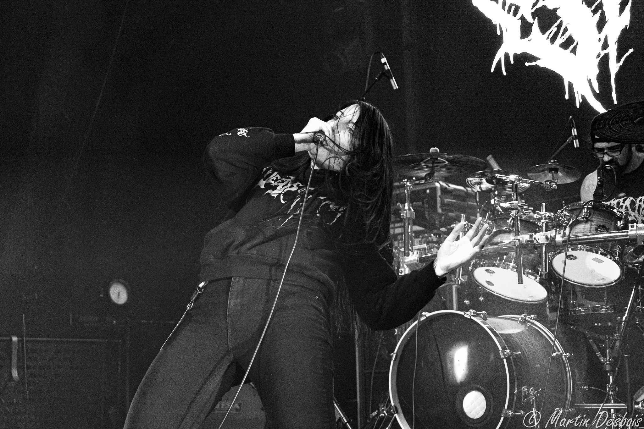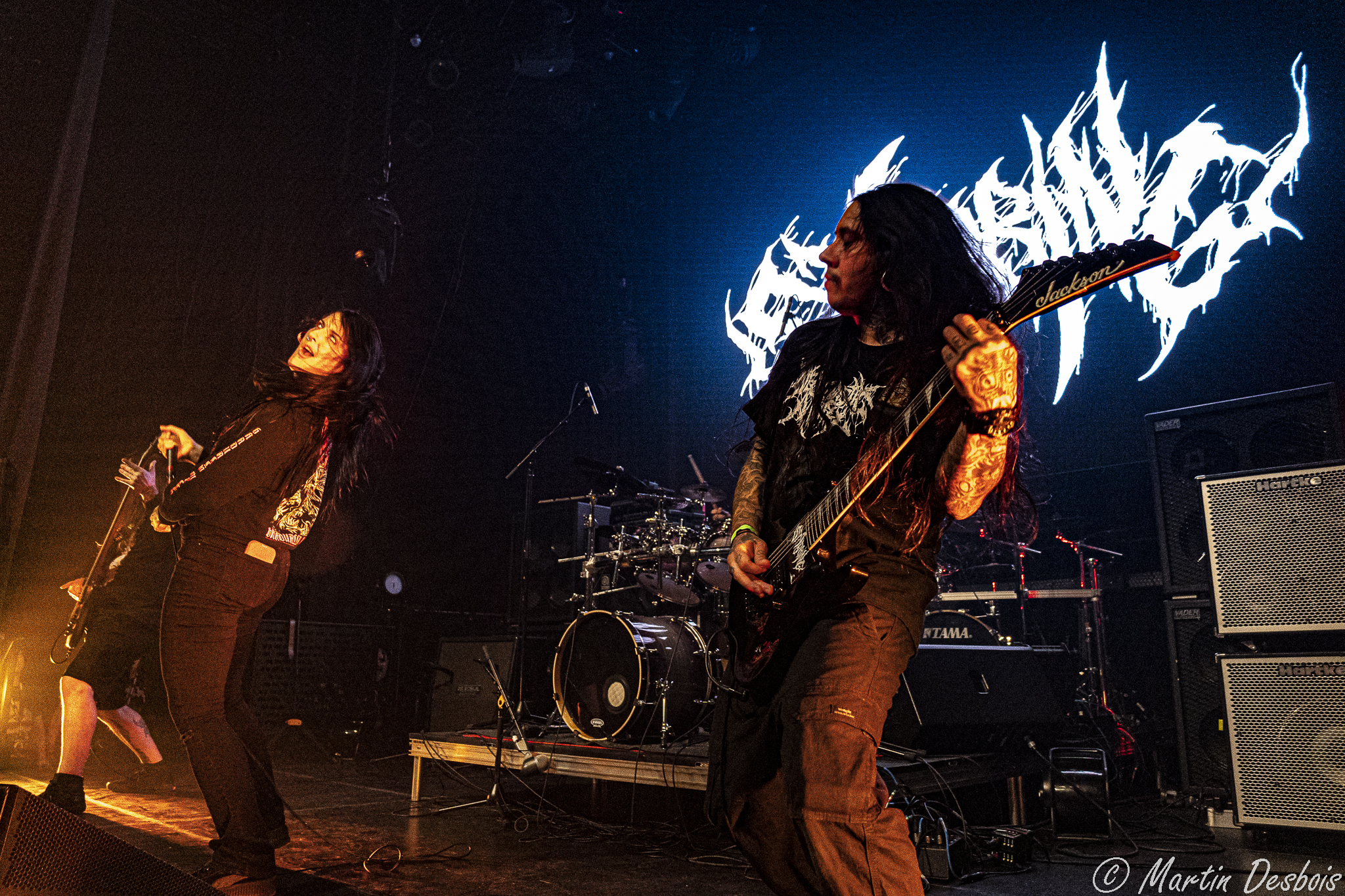 Stabbing était un groupe inconnu pour moi, jusqu’à les voir monter sur scène, en cette soirée. Quel coup de cœur ! Ils nous offrent un brutal death metal amené avec une chanteuse dont la performance est tout simplement magistrale. Son attitude sur scène a tout éclipsé. Elle regarde le public, avec une attitude tellement forte sur les planches qu’elle donne envie même à la plus petite des spectatrices d’être aussi forte qu’elle. Honnêtement, elle m’a impressionnée.