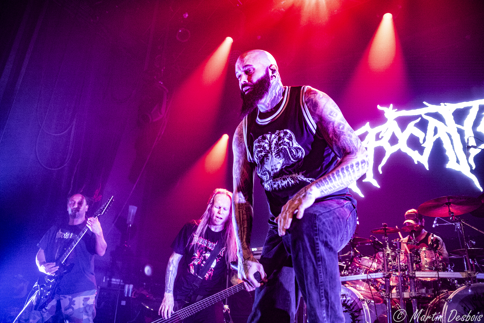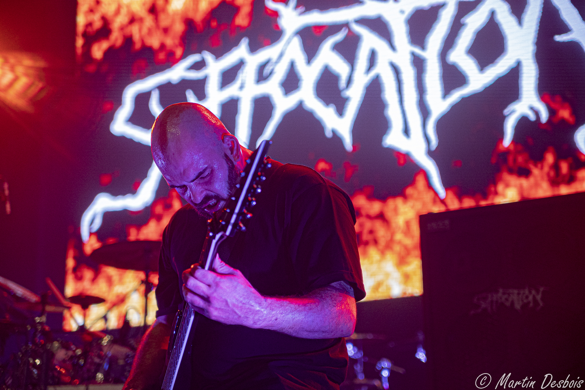 Qui ne connaît pas les avant-derniers à se produire sur scène ? Voici donc les vétérans du brutal technical death metal : Suffocation. Quelle joie immense de voir ce groupe dans ma ville natale. Leur performance fut à couper le souffle. Si vous avez l’occasion d’aller les voir en concert, je vous recommande fortement de profiter de cette chance ! Du début à la fin de leur performance, on voit que nous avons affaire à des pros. Que ce soit leur attitude puissante sur scène, la rythmique rapide et les solos, tout était parfait.